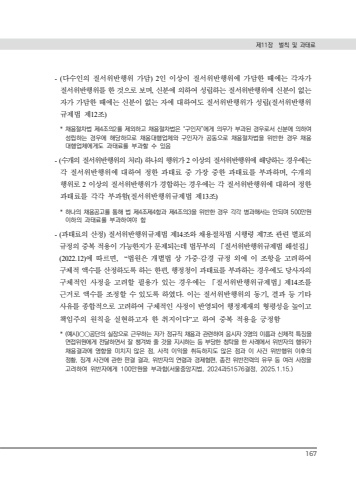 %uc81c11%uc7a5%ubc8c%uce59%ubc0f%uacfc%ud0dc%ub8cc167-(%ub2e4%uc218%uc778%uc758%uc9c8%uc11c%uc704%ubc18%ud589%uc704%uac00%ub2f4)2%uc778%uc774%uc0c1%uc774%uc9c8%uc11c%uc704%ubc18%ud589%uc704%uc5d0%uac00%ub2f4%ud55c%ub54c%uc5d0%ub294%uac01%uc790%uac00%uc9c8%uc11c%uc704%ubc18%ud589%uc704%ub97c%ud55c%uac83%uc73c%ub85c%ubcf4%uba70,%uc2e0%ubd84%uc5d0%uc758%ud558%uc5ec%uc131%ub9bd%ud558%ub294%uc9c8%uc11c%uc704%ubc18%ud589%uc704%uc5d0%uc2e0%ubd84%uc774%uc5c6%ub294%uc790%uac00%uac00%ub2f4%ud55c%ub54c%uc5d0%ub294%uc2e0%ubd84%uc774%uc5c6%ub294%uc790%uc5d0%ub300%ud558%uc5ec%ub3c4%uc9c8%uc11c%uc704%ubc18%ud589%uc704%uac00%uc131%ub9bd(%uc9c8%uc11c%uc704%ubc18%ud589%uc704%uaddc%uc81c%ubc95%uc81c12%uc870)*%ucc44%uc6a9%uc808%ucc28%ubc95%uc81c4%uc870%uc7582%ub97c%uc81c%uc678%ud558%uace0%ucc44%uc6a9%uc808%ucc28%ubc95%uc740%u201c%uad6c%uc778%uc790%u201d%uc5d0%uac8c%uc758%ubb34%uac00%ubd80%uacfc%ub41c%uacbd%uc6b0%ub85c%uc11c%uc2e0%ubd84%uc5d0%uc758%ud558%uc5ec%uc131%ub9bd%ud558%ub294%uacbd%uc6b0%uc5d0%ud574%ub2f9%ud558%ubbc0%ub85c%ucc44%uc6a9%ub300%ud589%uc5c5%uccb4%uc640%uad6c%uc778%uc790%uac00%uacf5%ub3d9%uc73c%ub85c%ucc44%uc6a9%uc808%ucc28%ubc95%uc744%uc704%ubc18%ud55c%uacbd%uc6b0%ucc44%uc6a9%ub300%ud589%uc5c5%uccb4%uc5d0%uac8c%ub3c4%uacfc%ud0dc%ub8cc%ub97c%ubd80%uacfc%ud560%uc218%uc788%uc74c-(%uc218%uac1c%uc758%uc9c8%uc11c%uc704%ubc18%ud589%uc704%uc758%ucc98%ub9ac)%ud558%ub098%uc758%ud589%uc704%uac002%uc774%uc0c1%uc758%uc9c8%uc11c%uc704%ubc18%ud589%uc704%uc5d0%ud574%ub2f9%ud558%ub294%uacbd%uc6b0%uc5d0%ub294%uac01%uc9c8%uc11c%uc704%ubc18%ud589%uc704%uc5d0%ub300%ud558%uc5ec%uc815%ud55c%uacfc%ud0dc%ub8cc%uc911%uac00%uc7a5%uc911%ud55c%uacfc%ud0dc%ub8cc%ub97c%ubd80%uacfc%ud558%uba70,%uc218%uac1c%uc758%ud589%uc704%ub85c2%uc774%uc0c1%uc758%uc9c8%uc11c%uc704%ubc18%ud589%uc704%uac00%uacbd%ud569%ud558%ub294%uacbd%uc6b0%uc5d0%ub294%uac01%uc9c8%uc11c%uc704%ubc18%ud589%uc704%uc5d0%ub300%ud558%uc5ec%uc815%ud55c%uacfc%ud0dc%ub8cc%ub97c%uac01%uac01%ubd80%uacfc%ud568(%uc9c8%uc11c%uc704%ubc18%ud589%uc704%uaddc%uc81c%ubc95%uc81c13%uc870)*%ud558%ub098%uc758%ucc44%uc6a9%uacf5%uace0%ub97c%ud1b5%ud574%ubc95%uc81c4%uc870%uc81c4%ud56d%uacfc%uc81c4%uc870%uc7583%uc744%uc704%ubc18%ud55c%uacbd%uc6b0%uac01%uac01%ubcd1%uacfc%ud574%uc11c%ub294%uc548%ub418%uba70500%ub9cc%uc6d0%uc774%ud558%uc758%uacfc%ud0dc%ub8cc%ub97c%ubd80%uacfc%ud558%uc5ec%uc57c%ud568-(%uacfc%ud0dc%ub8cc%uc758%uc0b0%uc815)%uc9c8%uc11c%uc704%ubc18%ud589%uc704%uaddc%uc81c%ubc95%uc81c14%uc870%uc640%ucc44%uc6a9%uc808%ucc28%ubc95%uc2dc%ud589%ub839%uc81c7%uc870%uad00%ub828%ubcc4%ud45c%uc758%uaddc%uc815%uc758%uc911%ubcf5%uc801%uc6a9%uc774%uac00%ub2a5%ud55c%uc9c0%uac00%ubb38%uc81c%ub418%ub294%ub370%ubc95%ubb34%ubd80%uc758%u300c%uc9c8%uc11c%uc704%ubc18%ud589%uc704%uaddc%uc81c%ubc95%ud574%uc124%uc9d1%u300d(2022.12)%uc5d0%ub530%ub974%uba74,%u201c%ubc95%uc6d0%uc740%uac1c%ubcc4%ubc95%uc0c1%uac00%uc911%u00b7%uac10%uacbd%uaddc%uc815%uc678%uc5d0%uc774%uc870%ud56d%uc744%uace0%ub824%ud558%uc5ec%uad6c%uccb4%uc801%uc561%uc218%ub97c%uc0b0%uc815%ud558%ub3c4%ub85d%ud558%ub294%ud55c%ud3b8,%ud589%uc815%uccad%uc774%uacfc%ud0dc%ub8cc%ub97c%ubd80%uacfc%ud558%ub294%uacbd%uc6b0%uc5d0%ub3c4%ub2f9%uc0ac%uc790%uc758%uad6c%uccb4%uc801%uc778%uc0ac%uc815%uc744%uace0%ub824%ud560%ud544%uc6a9%uac00%uc788%ub294%uacbd%uc6b0%uc5d0%ub294%u300c%uc9c8%uc11c%uc704%ubc18%ud589%uc704%uaddc%uc81c%ubc95%u300d%uc81c14%uc870%ub97c%uadfc%uac70%ub85c%uc561%uc218%ub97c%uc870%uc815%ud560%uc218%uc788%ub3c4%ub85d%ud558%uc600%ub2e4.%uc774%ub294%uc9c8%uc11c%uc704%ubc18%ud589%uc704%uc758%ub3d9%uae30,%uacb0%uacfc%ub4f1%uae30%ud0c0%uc0ac%uc720%ub97c%uc885%ud569%uc801%uc73c%ub85c%uace0%ub824%ud558%uc5ec%uad6c%uccb4%uc801%uc778%uc0ac%uc815%uc774%ubc18%uc601%ub418%uc5b4%ud589%uc815%uc81c%uc7ac%uc758%ud615%ud3c9%uc131%uc744%ub192%uc774%uace0%ucc45%uc784%uc8fc%uc758%uc6d0%uce59%uc744%uc2e4%ud604%ud558%uace0%uc790%ud55c%ucde8%uc9c0%uc774%ub2e4%u201d%uace0%ud558%uc5ec%uc911%ubcf5%uc801%uc6a9%uc744%uae0d%uc815%ud568*(%uc608%uc2dc)%u25cb%u25cb%uacf5%ub2e8%uc758%uc2e4%uc7a5%uc73c%ub85c%uadfc%ubb34%ud558%ub294%uc790%uac00%uc815%uaddc%uc9c1%ucc44%uc6a9%uacfc%uad00%ub828%ud558%uc5ec%uc751%uc2dc%uc7903%uba85%uc758%uc774%ub984%uacfc%uc2e0%uccb4%uc801%ud2b9%uc9d5%uc744%uba74%uc811%uc704%uc6d0%uc5d0%uac8c%uc804%ub2ec%ud558%uba74%uc11c%uc798%ucc59%uaca8%ubd10%uc904%uac83%uc744%uc9c0%uc2dc%ud558%ub294%ub4f1%ubd80%ub2f9%ud55c%uccad%ud0c1%uc744%ud55c%uc0ac%ub840%uc5d0%uc11c%uc704%ubc18%uc790%uc758%ud589%uc704%uac00%ucc44%uc6a9%uacb0%uacfc%uc5d0%uc601%ud5a5%uc744%ubbf8%uce58%uc9c0%uc54a%uc740%uc810,%uc0ac%uc801%uc774%uc775%uc744%ucde8%ub4dd%ud558%uc9c0%ub3c4%uc54a%uc740%uc810%uacfc%uc774%uc0ac%uac74%uc704%ubc18%ud589%uc704%uc774%ud6c4%uc758%uc815%ud669,%uc9d5%uacc4%uc0ac%uac74%uc5d0%uad00%ud55c%ud310%uacb0%uacb0%uacfc,%uc704%ubc18%uc790%uc758%uc5f0%ub839%uacfc%uacbd%uc81c%ud615%ud3b8,%uc885%uc804%uc704%ubc18%uc804%ub825%uc758%uc720%ubb34%ub4f1%uc5ec%ub7ec%uc0ac%uc815%uc744%uace0%ub824%ud558%uc5ec%uc704%ubc18%uc790%uc5d0%uac8c100%ub9cc%uc6d0%uc744%ubd80%uacfc%ud568(%uc11c%uc6b8%uc911%uc559%uc9c0%ubc95,2024%uacfc51576%uacb0%uc815,2025.1.15.)