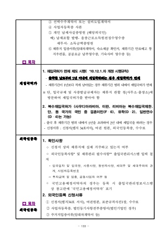 - 133 %uf000%ubaa9%ucc28%u2462%uc120%ubc15%uc218%uc8fc%uacc4%uc57d%uc11c %ub610%ub294 %uc124%ube44%ub3c4%uc785%uacc4%uc57d%uc11c%u2463%uc0ac%uc5c5%uc790%ub4f1%ub85d%uc99d %uc0ac%ubcf8%u2464%uac1c%uc778 %ub0a9%uc138%uc0ac%uc2e4%uc99d%uba85%uc6d0(%ud574%ub2f9%uc678%uad6d%uc778)%uc608)%ub0a9%uc138%uc870%ud569 %ubc1c%ud589-%uc744%uc885%uadfc%ub85c%uc18c%ub4dd%uc6d0%ucc9c%uc9d5%uc218%uc601%uc218%uc99d%uc138%ubb34%uc11c-%uc18c%ub4dd%uae08%uc561%uc99d%uba85%uc6d0 %u2465%uccb4%ub958%uc9c0 %uc785%uc99d%uc11c%ub958(%uc784%ub300%ucc28%uacc4%uc57d%uc11c,%uc219%uc18c%uc81c%uacf5 %ud655%uc778%uc11c,%uccb4%ub958%uae30%uac04 %ub9cc%ub8cc%uc608%uace0%ud1b5%uc9c0%uc6b0%ud3b8%ubb3c,%uacf5%uacf5%uc694%uae08 %ub0a9%ubd80%uc601%uc218%uc99d,%uae30%uc219%uc0ac%ube44 %uc601%uc218%uc99d %ub4f1)%uc7ac%uc785%uad6d%ud5c8%uac001. %uc7ac%uc785%uad6d%ud5c8%uac00 %uba74%uc81c %uc81c%ub3c4 %uc2dc%ud589(%u201810.12.1.%uc790 %uac1c%uc815 %uc2dc%ud589%uaddc%uce59)-%ucd9c%uad6d%ud55c %ub0a0%ub85c%ubd80%ud130 1%ub144 %uc774%ub0b4%uc5d0 %uc7ac%uc785%uad6d%ud558%ub824%ub294%uacbd%uc6b0 %uc7ac%uc785%uad6d%ud5c8%uac00 %uba74%uc81c-%uccb4%ub958%uae30%uac04%uc774 1%ub144%ubcf4%ub2e4 %uc801%uac8c %ub0a8%uc544%uc788%ub294 %uacbd%uc6b0 %uccb4%ub958%uae30%uac04 %ubc94%uc704 %ub0b4%uc5d0%uc11c %uc7ac%uc785%uad6d%ud5c8%uac00 %uba74%uc81c%u203b%ub2e8,%uc785%uad6d%uaddc%uc81c %ubc0f %uc0ac%uc99d%ubc1c%uae09%uaddc%uc81c%uc790%ub294 %uccb4%ub958%uc9c0 %uad00%ud560 %uccad(%uc0ac%ubb34%uc18c%u00b7%ucd9c%uc7a5%uc18c)%uc5d0 %ubc29%ubb38%ud558%uc5ec %uc7ac%uc785%uad6d%ud5c8%uac00%ub97c %ubc1b%uc544%uc57c %ud5682. %ubcf5%uc218%uc7ac%uc785%uad6d%ud5c8%uac00 (%uc0ac%uc6b0%ub514%uc544%ub77c%ube44%uc544, %uc774%ub780, %ub9ac%ube44%uc544%ub294 %ubcf5%uc218%uc7ac%uc785%uad6d%uc81c%ud55c. %ub2e8, %ub3d9 %uad6d%uac00%uc758 %uad6d%ubbfc %uc911 %uacb0%ud63c%uc774%ubbfc(F%u00ad6), %uc720%ud559(D%u00ad2), %uc77c%ubc18%uc5f0%uc218(D%u00ad4)%ub294 %uac00%ub2a5)%ucd9c%uad6d %ud6c4 %uccb4%ub958%uae30%uac04 %ubc94%uc704 %ub0b4%uc5d0%uc11c %ub144%uc744 %ucd08%uacfc%ud558%uc5ec %ub144 %ub0b4%uc5d0 %uc7ac%uc785%uad6d%uc744 %ud558%ub824%ub294 %uacbd%uc6b0-%uc2e0%uccad%uc11c%ub958 :%uc2e0%uccad%uc11c(%ubcc4%uc9c0 34%ud638%uc11c%uc2dd),%uc5ec%uad8c %uc6d0%ubcf8,%uc678%uad6d%uc778%ub4f1%ub85d%uc99d,%uc218%uc218%ub8cc%uf000%ubaa9%ucc28%uc678%uad6d%uc778%ub4f1%ub85d1. %ud655%uc778%uc0ac%ud56d%u25e6%uc2e0%uccad%uc11c %uc0c1%uc758 %uccb4%ub958%uc9c0%uc5d0 %uc2e4%uc81c %uac70%uc8fc%ud558%uace0 %uc788%ub294%uc9c0 %uc5ec%ubd80%u25e6%uc678%uad6d%uc778%ub4f1%ub85d%uc0ac%ud56d*%ubc0f %uccb4%ub958%uad00%ub9ac %ud544%uc218%uc0ac%ud56d**%ucd9c%uc785%uad6d%uad00%ub9ac%uc2dc%uc2a4%ud15c %uc785%ub825 %ucca0%uc800*%uc785%uad6d%uc77c%uc790%ubc0f%uc785%uad6d%ud56d,%uc0ac%uc99d%uc0ac%ud56d,%ub3d9%ubc18%uc790%uc0ac%ud56d,%uc138%ub300%uc8fc%ubc0f%uc138%ub300%uc8fc%uc640%uc758%uad00%uacc4,%uc0ac%uc5c5%uc790%ub4f1%ub85d%ubc88%ud638**%ud22c%uc790%uae08%uc561%ubc0f%uc5c5%uc885,%uacf5%ub3d9%uc0ac%uc5c5%uc790%uc5ec%ubd80%ub4f1%u25e6%uad6d%ubbfc%uace0%uc6a9%uc608%uc815%uc11c%uc57d%uc790%uc758 %uacbd%uc6b0%ub294 %ub4f1%ub85d %uc2dc %ucd9c%uc785%uad6d%uad00%ub9ac%uc815%ubcf4%uc2dc%uc2a4%ud15c %uc0c1 %ucc38%uace0%ub780%uc5d0%u2018%uad6d%ubbfc%uace0%uc6a9%uc608%uc815%uc11c%uc57d%uc790%u2019%ud45c%uae302. %uc678%uad6d%uc778%ub4f1%ub85d %uc2e0%uccad%uc11c%ub958%u2460%uc2e0%uccad%uc11c(%ubcc4%uc9c034%ud638 %uc11c%uc2dd),%uc5ec%uad8c%uc6d0%ubcf8,%ud45c%uc900%uaddc%uaca9%uc0ac%uc9c41%uc7a5,%uc218%uc218%ub8cc %u2461%uc0ac%uc5c5%uc790%ub4f1%ub85d%uc99d,%ubc95%uc778%ub4f1%uae30%uc0ac%ud56d%uc804%ubd80%uc99d%uba85%uc11c(%ubc95%uc778%uae30%uc5c5%uc778 %uacbd%uc6b0)%u2462%uc8fc%uac70%uc9c0%uc785%uc99d%uc11c%ub958(%uc784%ub300%ucc28%uacc4%uc57d%uc11c %ub4f1)
