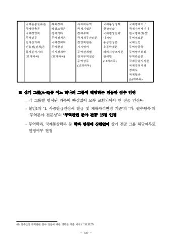 - 137 %u203b%uc0c1%uae30 %uadf8%ub8f9(A~E)%uc911 %uc5b4%ub290 %ud558%ub098%uc758 %uadf8%ub8f9%uc5d0 %ud574%ub2f9%ud558%ub294 %uc804%uacf5%ub9cc %uc810%uc218 %uc778%uc815-%uac01 %uadf8%ub8f9%ubcc4 %uba85%uc2dc%ub41c %uacfc%ubaa9%uc774 %ube60%uc9d0%uc5c6%uc774 %ubaa8%ub450 %ud3ec%ud568%ub418%uc5b4%uc57c %ub9cc %uc804%uacf5 %uc778%uc81544)-%ubd99%uc7841%uc758 %u20181.%uc0ac%uc99d%ubc1c%uae09%uc778%uc815%uc11c %ubc1c%uae09 %ubc0f %uccb4%ub958%uc790%uaca9%ubcc0%uacbd %uae30%uc900%u2019%uc758 %u2018%uac00.%ud544%uc218%ud56d%ubaa9%u2019%uc758 %u2018%ubb34%uc5ed%ubd84%uc57c %uc804%ubb38%uc131%u2019%uc758 %u2018%ubb34%uc5ed%uad00%ub828 %ubd84%uc57c %uc804%uacf5%u201915%uc810 %uc778%uc815%ubb34%uc5ed%ud559%uacfc%uad6d%uc81c%ud1b5%uc0c1%ud559%uacfc %ub4f1 %ud559%uacfc %uba85%uce6d%uc5d0 %uc0c1%uad00%uc5c6%uc774%uc0c1%uae30 %uc804%uacf5 %uadf8%ub8f9 %ud574%ub2f9%uc5ec%ubd80%ub85c%uc778%uc815%uc5ec%ubd80 %uacb0%uc81544)%uc810%uc218%uc778%uc815 %ubb34%uc5ed%uad00%ub828 %ubd84%uc57c %uc804%uacf5%uc5d0 %ub300%ud55c %uba85%ud655%ud55c %uae30%uc900 %uc81c%uc2dc (%u201816.10.27)%uad6d%uc81c%uc6b4%uc1a1%ubb3c%ub958%ub860%uad6d%uc81c%uae08%uc735%ub860%uad6d%uc81c%uacbd%uc601%ud559%ubb34%uc5ed%uc2e4%ubb34%uc804%uc790%uc0c1%uac70%ub798%uc2e0%uc6a9%uc7a5(%uacb0%uc81c)%ub860%ud1b5%uacc4%ubd84%uc11d%uae30%ud0c0(11%uac1c%uacfc%ubaa9)%ud574%uc678%uacbd%uc81c%ud574%uc0c1%ubcf4%ud5d8%ub860%uacbd%uc81c%uae30%ud0c0%ubb34%uc5ed%uc815%ucc45%ub860%uad6d%uc81c%uacbd%uc81c%ud559%ubb34%uc5ed%ud658%uacbd%ubbf8%uc2dc%uacbd%uc81c%ud559(11%uac1c%uacfc%ubaa9)%uc0ac%uc774%ubc84%ubb34%uc5ed%uad6d%uc81c%uae30%uc5c5%ub860%uacbd%uc81c%uc218%ud559%uad6d%uc81c%uc7ac%ubb34%uad00%ub9ac%ub860%uacbd%uc601%ud559%uc6d0%ub860%uc2dc%uc0ac%uc601%uc5b4%ubb34%uc5ed%uad00%uacc4%ubc95%uc804%uc790%ubb34%uc5ed%uc2e4%uc2b5%ubb34%uc5ed%uc0c1%ubb34(13%uac1c%uacfc%ubaa9)%uad6d%uc81c%ud1b5%uc0c1%uc815%ucc45%ud604%uc7a5%uc2e4%uc2b5%uad6d%uc81c%uacbd%uc601%uc804%ub7b5%ub514%uc9c0%ud138%ud1b5%uc0c1%ud611%uc0c1%ub860%uc720%ud1b5%ud559%uac1c%ub860%ud574%uc678%uc2dc%uc7a5%uc870%uc0ac%ub860%uad00%uc138%ubc95(12%uac1c%uacfc%ubaa9)%uad6d%uc81c%uacbd%uc81c%uae30%uad6c%uad6d%uc81c%uc9c0%uc5ed%uc138%ubbf8%ub098%ud55c%uad6d%uacbd%uc81c(%ud1b5%uc0c1)%ubb34%uc5ed%uc815%ubcf4%ub860%uad6d%uc81c%uc0b0%uc5c5%ubb34%uc5ed%uc0c1%ud488%ud559%ubb34%uc5ed%uc601%uc5b4%ud68c%ud654%ubb34%uc5ed%uad00%uc2b5%ub860%uad6d%uc81c%uae08%uc735%uc2dc%uc7a5%ub860%uad6d%uc81c%uacbd%uc601%uc0ac%ub840%uacbd%uc81c%uc0ac%uad6d%uc81c%ud611%uc0c1(16%uac1c%uacfc%ubaa9)