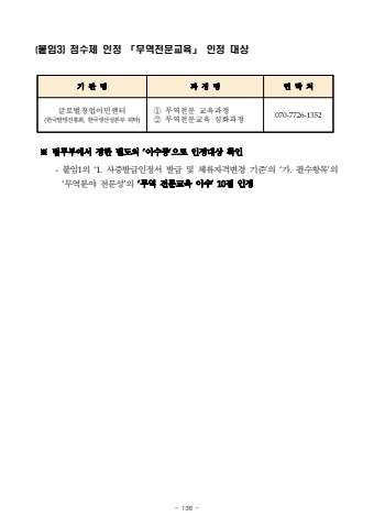 - 138 (%ubd99%uc7843) %uc810%uc218%uc81c %uc778%uc815 %u300c%ubb34%uc5ed%uc804%ubb38%uad50%uc721%u300d %uc778%uc815 %ub300%uc0c1%u203b%ubc95%ubb34%ubd80%uc5d0%uc11c %uc815%ud55c %ubcc4%ub3c4%uc758 %u2018%uc774%uc218%uc99d%u2019%uc73c%ub85c %uc778%uc815%ub300%uc0c1 %ud655%uc778-%ubd99%uc7841%uc758 %u20181.%uc0ac%uc99d%ubc1c%uae09%uc778%uc815%uc11c %ubc1c%uae09 %ubc0f %uccb4%ub958%uc790%uaca9%ubcc0%uacbd %uae30%uc900%u2019%uc758 %u2018%uac00.%ud544%uc218%ud56d%ubaa9%u2019%uc758 %u2018%ubb34%uc5ed%ubd84%uc57c %uc804%ubb38%uc131%u2019%uc758 %u2018%ubb34%uc5ed %uc804%ubb38%uad50%uc721 %uc774%uc218%u201910%uc810 %uc778%uc815%uae30 %uad00 %uba85%uacfc %uc815 %uba85%uc5f0 %ub77d %ucc98%uae00%ub85c%ubc8c%ucc3d%uc5c5%uc774%ubbfc%uc13c%ud130(%ud55c%uad6d%ubc1c%uba85%uc9c4%ud765%ud68c,%ud55c%uad6d%uc0dd%uc0b0%uc131%ubcf8%ubd80 %uc704%ud0c1)%u2460 %ubb34%uc5ed%uc804%ubb38 %uad50%uc721%uacfc%uc815%u2461 %ubb34%uc5ed%uc804%ubb38%uad50%uc721 %uc2ec%ud654%uacfc%uc815070-7726-1352
