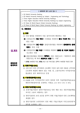 - 144 %uf000%ubaa9%ucc28%uccb4%ub958%uc790%uaca9%ubcc0%uacbd%ud5c8%uac00%u3010 %uc138%uacc4%ub300%ud559 %ud3c9%uac00 %uc21c%uc704 %ucc38%uace0 %u3011%u2460 QS World University Ranking%u2461 QS World University Ranking by Subject : Engineering and Technology%u2462 Times Higher Education World University Rankings %u2463 Times Higher Education World University Rankings by subject engineering%u2464 US News & World Report Global University Rankings%u2465 US News & World Report Global University Rankings by subject engineering%ub098. %uc81c%ud55c%ub300%uc0c11)%uacf5%ud1b5%u274d %uad6d%ub0b4 %ubc95%ub839%uc744 %uc704%ubc18%ud558%uc5ec %ub2e4%uc74c %uacb0%uaca9%uc0ac%uc720%uc5d0 %ud574%ub2f9%ud558%ub294 %uc0ac%ub78c%u2776 %uc2e0%uccad%uc77c%ub85c%ubd80%ud130 5%ub144 %uc774%ub0b4%uc5d0 %uad6d%ub0b4%ubc95%uc744 %uc704%ubc18%ud558%uc5ec %uae08%uace0 %uc774%uc0c1%uc758 %ud615%uc744 %uc120%uace0%ubc1b%uc740 %uc0ac%ub78c%u278b %uc2e0%uccad%uc77c%ub85c%ubd80%ud130 5%ub144 %uc774%ub0b4%uc5d0 %ucd9c%uc785%uad6d%uad00%ub9ac%ubc95%uc744 %uc704%ubc18%ud558%uc5ec %uac15%uc81c%ud1f4%uac70%ub098 %ucd9c%uad6d%uba85%ub839%uc744 %ubc1b%uc740 %uc0ac%ub78c%u278c %uc2e0%uccad%uc77c%ub85c%ubd80%ud130 3%ub144 %uc774%ub0b4%uc5d0 %uad6d%ub0b4%ubc95%uc744 %uc704%ubc18%ud558%uc5ec 300%ub9cc %uc6d0 %uc774%uc0c1%uc758 %ubc8c%uae08%ud615%uc744%uc120%uace0%ubc1b%uc740 %uc0ac%ub78c%u278d %ucd9c%uc785%uad6d%uad00%ub9ac%ubc95%uc744 %uc704%ubc18%ud558%uc5ec %ubc94%uce59%uae08%uc744 %ubc1b%uc740 %uc0ac%ub78c%uc73c%ub85c%uc11c %u300c%uccb4%ub958%ud5c8%uac00 %uc81c%ud55c%ud1b5%ud569%uae30%uc900%u300d%uc5d0 %ub530%ub77c %uccb4%ub958%ud5c8%uac00 %uc81c%ud55c%ub418%ub294 %uc0ac%ub78c** (%ucd08%ubc94)500%ub9cc%uc6d0 %uc774%uc0c1, (%uc7ac%ubc94)%ucd5c%uadfc 3%ub144 %uc774%ub0b4 %ud569%uc0b0 %uae08%uc561%uc774 700%ub9cc%uc6d0 %uc774%uc0c1%uc778 %uacbd%uc6b02)%uc77c%ubc18%uad6c%uc9c1(D-10-1)%u274d %uc2e0%uccad %ub2f9%uc2dc %uc774%uc804 %uadfc%ubb34%ucc98%uc640%uc758 %uadfc%ub85c%uacc4%uc57d %uae30%uac04%uc774 %ub0a8%uc544 %uc788%uc5b4 %uc0c8%ub85c%uc6b4 %uadfc%ubb34%ucc98%uc640%uadfc%ub85c%uacc4%uc57d %uccb4%uacb0%uc5d0 %uc81c%ud55c%uc774 %uc788%ub294 %uc0ac%ub78c.%ub2e8,%uace0%uc6a9%uc8fc%ub85c%ubd80%ud130 %uc774%uc801%ub3d9%uc758%uc11c%ub97c%ubc1c%uae09%ubc1b%uc740 %uacbd%uc6b0 %uc608%uc678%uc801%uc73c%ub85c %uc778%uc8153)%uae30%uc220%ucc3d%uc5c5%uc900%ube44(D-10-2)%u274dOASIS%uad50%uc721 %uc774%uc218%uc77c%ub85c%ubd80%ud130 3%ub144%uc774 %uacbd%uacfc%ub41c %uc774%ud6c4%uae30%uc220%ucc3d%uc5c5%uc900%ube44(D-10-2)%uccb4%ub958%uc790%uaca9%ubcc0%uacbd%ud5c8%uac00%ub97c %uc2e0%uccad%ud558%ub294 %uc0ac%ub78c(%ub2e8,%uad50%uc721 %uc7ac%uc774%uc218 %uc911%uc778 %uc790 %uc81c%uc678)4)%ucca8%ub2e8%uae30%uc220%uc778%ud134(D-10-3)%u274d%ucd08%uccad%uae30%uc5c5(%uae30%uad00)%uc774 %uc77c%ubc18%uad6c%uc9c1(D-10-1)%uc778%ud134 %ucc44%uc6a9 %ub610%ub294 %uc804%ubb38%uc9c1%uc885(E%uacc4%uc5f4)%uc678%uad6d%uc778 %uace0%uc6a9%uc774 %uc81c%ud55c%ub418%ub294 %uacbd%uc6b0%u274d%ucca8%ub2e8%uae30%uc220%uc778%ud134 %ucd08%uccad %uc694%uac74%uc744 %uac16%ucd94%uc9c0 %ubabb%ud55c %uae30%uc5c5(%uae30%uad00)%uacfc %uc778%ud134 %uadfc%ub85c%uacc4%uc57d%uc744 %uccb4%uacb0%ud55c %uacbd%uc6b0%u274d%ucca8%ub2e8%uae30%uc220%uc778%ud134 %ucd08%uccad%uc778%uc6d0%uc774 %uc778%ud134 %uc608%uc815 %uae30%uc5c5(%uae30%uad00)%uc758 %uad6d%ubbfc%uace0%uc6a9%uc778%uc6d0*%uc758 20%%ub97c %ucd08%uacfc%ud558%ub294 %uacbd%uc6b0
