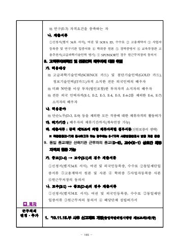 - 165 %uf000%uc5f0%uad6c(E-3)%uc790%uaca9%uc694%uac74%uc744 %ucda9%uc871%ud558%ub294 %uc790 %ub098.%uc81c%ucd9c%uc11c%ub958 %u2460%uc2e0%uccad%uc11c(%ubcc4%uc9c0 34%ud638 %uc11c%uc2dd),%uc5ec%uad8c %ubc0f SOFAID,%uc218%uc218%ub8cc %u2461%uace0%uc6a9%uacc4%uc57d%uc11c %u2462%uc0ac%uc5c5%uc790%ub4f1%ub85d%uc99d %ubc0f %uc5f0%uad6c%uae30%uad00 %uc785%uc99d%uc11c%ub958 %u2463%ud559%uc704%uc99d %uc6d0%ubcf8 %u2464%uacbd%ub825%uc99d%uba85%uc11c %u2465%uad50%uc721%ubd80%uc7a5%uad00 %uace0%uc6a9%ucd94%ucc9c%uc11c(%uace0%uae09%uacfc%ud559%uae30%uc220%uc778%ub825 %uba85%uae30)%u2466SPONSOR%uc778 %uacbd%uc6b0 %uc6d0%uadfc%ubb34%ucc98%uc7a5%uc758 %ub3d9%uc758%uc11c8. %uace0%uc561%ud22c%uc790%uc678%uad6d%uc778 %ubc0f %uc804%ubb38%uc778%ub825 %ubc30%uc6b0%uc790%uc5d0 %ub300%ud55c %ucde8%uc5c5%uac00.%ud5c8%uc6a9%ub300%uc0c1%uace0%uae09%uacfc%ud559%uae30%uc220%uc778%ub825(SCIENCE%uce74%ub4dc)%ubc0f %ucca8%ub2e8%uae30%uc220%uc778%ub825(GOLD%uce74%ub4dc),%uc815%ubcf4%uae30%uc220%uc778%ub825(IT%uce74%ub4dc)%uc790%uaca9 %uc18c%uc9c0%ud55c %uc804%ubb38 %uc678%uad6d%uc778%ub825%uc758 %ubc30%uc6b0%uc790 %ubbf8%ud654 50%ub9cc%ubd88 %uc774%uc0c1 %ud22c%uc790(%ubc95%uc778%ud3ec%ud568)%ud55c %ud22c%uc790%uc790%uaca9 %uc18c%uc9c0%uc790%uc758 %ubc30%uc6b0%uc790%uc804%ubb38 %uc678%uad6d %uc778%ub825%uc790%uaca9(E-1,E-2,E-3,E-4,E-5,E-6-2%ub97c %uc81c%uc678%ud55c E-6,E-7)%uc18c%uc9c0%uc790%uc758 %ubc30%uc6b0%uc790%ub098.%ud5c8%uc6a9%ubd84%uc57c%ub2e8%uc21c%ub178%ubb34(D-3,E-9)%ub4f1%uc744%uc81c%uc678%ud55c %ubaa8%ub4e0 %uc9c1%uc885%uc5d0 %ub300%ud55c %uccb4%ub958%uc790%uaca9%uc678 %ud65c%ub3d9%ud5c8%uac00%ub2e4.%ud5c8%uac00%uae30%uac04 :%ubc30%uc6b0%uc790%uc758 %uccb4%ub958%uae30%uac04%uae4c%uc9c0(%uacc4%uc18d%uc5f0%uc7a5 %uac00%ub2a5)%ub77c.%uc81c%ucd9c%uc11c%ub958 :%uaddc%uce59 %uc81c76%uc870%uc5d0 %uc758%ud55c %uccb4%ub958%uc790%uaca9%ubcc4 %ucca8%ubd80%uc11c%ub958(%uc2e0%uc6d0%ubcf4%uc99d%uc11c %uc0dd%ub7b5)%u203b %ud2b9%uc815%ud65c%ub3d9(E-7)%uc5d0 %uc885%uc0ac%ud558%uace0%uc790 %ud558%ub294 %uacbd%uc6b0%uc5d0%ub294 E-7%uc790%uaca9 %uc0ac%uc99d%ubc1c%uae09%uc778%uc815%uc11c %ubc1c%uae09 %uc9c0%uce68 %uc900%uc6a99.%ub3d9%uc77c %uc885%uad50%uc7ac%ub2e8 %uc0b0%ud558%uae30%uad00 %uadfc%ubb34%uc790%uc758 %uc885%uad50(D-6), %uad50%uc218(E-1) %uc0c1%ud638%uac04 %uccb4%ub958%uc790%uaca9%uc678 %ud65c%ub3d9 %uac00%ub2a5 %uac00.%uc885%uad50(D-6)%u2192%uad50%uc218(E-1)%uc758 %uacbd%uc6b0 %uc81c%ucd9c%uc11c%ub958%u2460%uc2e0%uccad%uc11c(%ubcc4%uc9c034%ud638 %uc11c%uc2dd).%uc5ec%uad8c %ubc0f %uc678%uad6d%uc778%ub4f1%ub85d%uc99d,%uc218%uc218%ub8cc %u2461%ub3d9%uc77c%uc7ac%ub2e8%uc785%uc99d%uc11c%ub958 %u2462%uace0%uc6a9%uacc4%uc57d%uc11c %uc6d0%ubcf8 %ubc0f %uc0ac%ubcf8 %u2463%ud559%uc704%uc99d %u2464%uc0ac%uc5c5%uc790%ub4f1%ub85d%uc99d %uc0ac%ubcf8 %u2465%uc6d0%uadfc%ubb34%ucc98%uc7a5%uc758 %ub3d9%uc758%uc11c%ub098.%uad50%uc218(E-1)%u2192%uc885%uad50(D-6)%uc758 %uacbd%uc6b0 %uc81c%ucd9c%uc11c%ub958%u2460%uc2e0%uccad%uc11c(%ubcc4%uc9c034%ud638 %uc11c%uc2dd).%uc5ec%uad8c %ubc0f %uc678%uad6d%uc778%ub4f1%ub85d%uc99d,%uc218%uc218%ub8cc %u2461%ub3d9%uc77c%uc7ac%ub2e8%uc785%uc99d%uc11c%ub958 %u2462%uc6d0%uadfc%ubb34%ucc98%uc758 %ub3d9%uc758%uc11c %u2463%ud574%ub2f9%ub2e8%uccb4 %uc124%ub9bd%ud5c8%uac00%uc11c%uadfc%ubb34%ucc98%uc758%ubcc0%uacbd%u2024%ucd94%uac001.%u201810.11.15.%ubd80 %uc0ac%ud6c4 %uc2e0%uace0%uc81c%ub85c %uac1c%uc815(%ucd9c%uc785%uad6d%uad00%ub9ac%ubc95%uc2dc%ud589%ub839 %uc81c26%uc870%uc7582%uc81c1%ud56d)