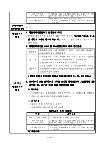 - 182 %ud574%uc678%uc6b0%uc218%ub300%ud559%uc11d%uc0ac%ud559%uc704%uc18c%uc9c0%uc790%u2460TIMES%u8a8c%uc120%uc815%uc138%uacc4200%ub300%ub300%ud559%ub610%ub294%u2461QS%uc138%uacc4%uc21c%uc704500%uc704%uc774%ub0b4%ud574%uc678%uc6b0%uc218%ub300%ud559%uc878%uc5c5%uc11d%uc0ac%ud559%uc704%uc18c%uc9c0%uc790%uc6b0%uc218%ud559%uc220%ub17c%ubb38%uc800%uc790SCIE,A&HCI,SCI,SSCI%ub4f1%uc7ac%ub17c%ubb38%uc800%uc790**%uc8fc%uc800%uc790,%uacf5%uc800%uc790(%uc81c2%uc800%uc790%uc774%ud558),%uad50%uc2e0%uc800%uc790%ub85c%ud655%uc778%ub418%ub294%uacbd%uc6b0%uc778%uc8151%ud68c%uc5d0%ubd80%uc5ec%ud560%uc218%uc788%ub294%uccb4%ub958%uae30%uac04%uc0c1%ud55c5%ub144%uccb4%ub958%uc790%uaca9%uc678%ud65c%ub3d9%uf000%uccb4%ub958%uc790%uaca9%uc678%ud65c%ub3d91. %uccb4%ub958%uc790%uaca9%uc678%ud65c%ub3d9%ud5c8%uac00 %uba74%uc81c%ubc94%uc704 %ud655%ub300%uc6d0%ub798%uc758 %uccb4%ub958%ubaa9%uc801%uc744 %uce68%ud574%ud558%uc9c0 %uc54a%uc740 %ubc94%uc704 %ub0b4%uc5d0%uc11c %uc815%uaddc%uad50%uc721%uae30%uad00(%ucd08%u2027%uc911%u2027%uace0 %ubc0f %ub300%ud559)%uc758 %uad50%uc721%uc744 %ubc1b%uace0%uc790 %ud558%ub294 %ub54c%ub294 %uccb4%ub958%uae30%uac04 %ubc94%uc704 %ub0b4%uc5d0%uc11c %ubcc4%ub3c4%uc758 %ud5c8%uac00 %uc808%ucc28 %ubd88%uc6942. %uc678%uad6d%uc778%ud22c%uc790%uae30%uc5c5 CEO %ub4f1 %uc6b0%uc218%uc804%ubb38%uc778%ub825%uc758 %ub300%ud559 %uac15%uc5f0%ud65c%ub3d9%ud65c%ub3d9%ubc94%uc704%ub300%ud559%uc5d0%uc11c 90%uc77c %uc774%ub0b4 %uac15%uc758%ud65c%ub3d9%uc744 %ud558%ub824%ub294 %uc790%uc5d0 %ub300%ud55c %ub2e8%uae30%ucde8%uc5c5(C-4-5)%uc790%uaca9%uc73c%ub85c%uc758 %uc790%uaca9%uc678 %ud65c%ub3d9%ub300 %uc0c1%u2460%ud22c%uc790%uc790 %ub4f1(D-7,D-8,D-9)%uc758 %uc790%uaca9 %uc18c%uc9c0%uc790 %uc911 %uad6d%ub0b4%uae30%uc5c5(%ud22c%uc790%uae30%uc5c5%ud3ec%ud568)%uc5d0%uc11c %uc0c1%uadfc%uc774%uc0ac %uc774%uc0c1%uc758 %uc9c1%uc73c%ub85c %uadfc%ubb34%ud558%ub294 %uc790%u2461%uc804%ubb38%uc778%ub825(E-1,E-3~E-5,E-7)%uc790%uaca9%uc18c%uc9c0%uc790%uc81c%ucd9c%uc11c%ub958%u2460%uc2e0%uccad%uc11c(%ubcc4%uc9c0 34%ud638 %uc11c%uc2dd),%uc5ec%uad8c %ubc0f %uc678%uad6d%uc778%ub4f1%ub85d%uc99d,%uc218%uc218%ub8cc%u2461%ucd1d(%ud559)%uc7a5%uc758 %ucd94%ucc9c%uc11c %u2462%uace0%uc720%ubc88%ud638%uc99d(%uc0ac%uc5c5%uc790%ub4f1%ub85d%uc99d)%uc0ac%ubcf8 %u2463%uace0%uc6a9%uacc4%uc57d%uc11c%u2464%uc6d0%uadfc%ubb34%ucc98%uc7a5%uc758 %ub3d9%uc758%uc11c%u203b 90%uc77c%uc744 %ucd08%uacfc%ud558%uc5ec %uc815%uae30%uc801%uc73c%ub85c %ub300%ud559%uc5d0%uc11c %uac15%uc758%ud65c%ub3d9%uc744 %ud558%uace0%uc790 %ud558%ub294 %uc790%ub294 %ubcf8%ubd80 %uc2b9%uc778%uc0c1%uc2e03. %uad50%uc218(E-1) %ub610%ub294 %uc5f0%uad6c(E-3) %uc790%uaca9%uc744 %uc18c%uc9c0%ud55c %uc678%uad6d%uace0%uae09%uacfc%ud559 %uae30%uc220%uc778%ub825%uc5d0 %ub300%ud55c %uad50%uc218(E-1), %uc5f0%uad6c(E-3)%uac04 %uc0c1%ud638 %uccb4%ub958%uc790%uaca9%uc678 %ud65c%ub3d9%uac00.%ud5c8%uac00%ub300%uc0c1%u25e6%uc804%ubb38%ub300%ud559%uc774%uc0c1%uc758 %uad50%uc721%uae30%uad00%uc774%ub098 %uc815%ubd80%ucd9c%uc5f0%uc5f0%uad6c%uc18c,%uad6d%u2024%uacf5%ub9bd%uc5f0%uad6c%uc18c,%uae30%uc5c5%ubd80%uc124%uc5f0%uad6c%uc18c %ub4f1 %uc774%uacf5%uacc4 %uc5f0%uad6c%uae30%uad00%uc5d0 %uadfc%ubb34%ud558%uace0%uc790 %ud558%ub294 %uc790%ub098.%uc790%uaca9%uae30%uc900%u25e6%u2460%ubc15%uc0ac %ud559%uc704 %uc18c%uc9c0%uc790(%ucde8%ub4dd %uc608%uc815%uc790)%u25e6%u2461%uc11d%uc0ac %ud559%uc704 %uc18c%uc9c0%uc790%ub85c%uc11c 3%ub144 %uc774%uc0c1 %uacbd%ub825%uc790%ub2e4.%uc81c%ucd9c%uc11c%ub958%uad6c%ubd84%uc138%ubd80%ub0b4%uc6a9%uad6d%ub0b4%uc11d%uc0ac%ud559%uc704%uc18c%uc9c0%uc790%uad6d%ub0b4%ub300%ud559%uc744%uc878%uc5c5%ud55c%uc11d%uc0ac%ud559%uc704%uc18c%uc9c0%uc790%ud574%uc678%uc6b0%uc218%ub300%ud559%uc11d%uc0ac%ud559%uc704%uc18c%uc9c0%uc790%u2460TIMES%u8a8c%uc120%uc815%uc138%uacc4200%ub300%ub300%ud559%ub610%ub294%u2461QS%uc138%uacc4%uc21c%uc704500%uc704%uc774%ub0b4%ud574%uc678%uc6b0%uc218%ub300%ud559%uc878%uc5c5%uc11d%uc0ac%ud559%uc704%uc18c%uc9c0%uc790%uc6b0%uc218%ud559%uc220%ub17c%ubb38%uc800%uc790SCIE,A&HCI,SCI,SSCI%ub4f1%uc7ac%ub17c%ubb38%uc800%uc790**%uc8fc%uc800%uc790,%uacf5%uc800%uc790(%uc81c2%uc800%uc790%uc774%ud558),%uad50%uc2e0%uc800%uc790%ub85c%ud655%uc778%ub418%ub294%uacbd%uc6b0%uc778%uc815%u3010%uacbd%ub825%uc694%uac74%uba74%uc81c%ub300%uc0c1%uc790%u3011