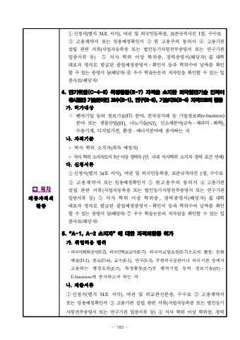 - 183 %uf000%uccb4%ub958%uc790%uaca9%uc678%ud65c%ub3d9%u2460%uc2e0%uccad%uc11c(%ubcc4%uc9c0 34%ud638 %uc11c%uc2dd),%uc5ec%uad8c %ubc0f %uc678%uad6d%uc778%ub4f1%ub85d%uc99d,%ud45c%uc900%uaddc%uaca9%uc0ac%uc9c4 1%uc7a5,%uc218%uc218%ub8cc%u2461%uace0%uc6a9%uacc4%uc57d%uc11c %ub610%ub294 %uc784%uc6a9%uc608%uc815%ud655%uc778%uc11c%u2462%uc6d0 %uace0%uc6a9%uc8fc%uc758 %ub3d9%uc758%uc11c %u2463%uace0%uc6a9%uae30%uad00 %uc124%ub9bd %uad00%ub828 %uc11c%ub958(%uc0ac%uc5c5%uc790%ub4f1%ub85d%uc99d %ub610%ub294 %ubc95%uc778%ub4f1%uae30%uc0ac%ud56d%uc804%ubd80%uc99d%uba85%uc11c %ub610%ub294%uc5f0%uad6c%uae30%uad00 %uc785%uc99d%uc11c%ub958 %ub4f1)%u2464%uc11d%uc0ac %ud559%uc704 %uc774%uc0c1 %ud559%uc704%uc99d,%uacbd%ub825%uc99d%uba85%uc11c(%ud574%ub2f9%uc790)%u2785 %ub300%ud559 %ub300%ud45c%uc790 %uba85%uc758%ub85c %ubc1c%uae09%ub41c %uc878%uc5c5%uc608%uc815%uc99d%uba85%uc11c%u00b7%ud655%uc778%uc11c %ub4f1%uacfc %ud559%uc704%uc218%uc5ec %ub0a0%uc9dc%ub97c %ud655%uc778%ud560 %uc218%uc788%ub294%uc99d%uba85%uc11c%ub4f1(%ud574%ub2f9%uc790)%u2465 %uc6b0%uc218 %ud559%uc220%ub17c%ubb38%uc758 %uc800%uc790%uc784%uc744 %ud655%uc778%ud560 %uc218 %uc788%ub294 %uc785%uc99d%uc790%ub8cc(%ud574%ub2f9%uc790) 4.%ub2e8%uae30%ucde8%uc5c5(C-4-5) %ud2b9%uc815%ud65c%ub3d9(E-7) %uc790%uaca9%uc744 %uc18c%uc9c0%ud55c %uc678%uad6d%ucca8%ub2e8%uae30%uc220 %uc778%ub825%uc774 %uc720%uc0ac%ucca8%ub2e8 %uae30%uc220%ubd84%uc57c%uc778 %uad50%uc218(E-1), %uc5f0%uad6c(E-3), %uae30%uc220%uc9c0%ub3c4(E-4) %uc790%uaca9%uc73c%ub85c%uc758 %ud65c%ub3d9%uac00.%ud5c8%uac00%ub300%uc0c1%u25e6%ubca4%ucc98%uae30%uc5c5 %ub4f1%uc758 %uc815%ubcf4%uae30%uc220(IT)%ubd84%uc57c,%uc804%uc790%uc0c1%uac70%ub798 %ub4f1 %uae30%uc5c5%uc815%ubcf4%ud654(e-business)%ubd84%uc57c %ub610%ub294 %uc0dd%ubb3c%uc0b0%uc5c5(BT),%ub098%ub178%uae30%uc220(NT),%uc2e0%uc18c%uc7ac%ubd84%uc57c(%uae08%uc18d%u2024%uc138%ub77c%ubbf9%u2024%ud654%ud559),%uc218%uc1a1%uae30%uacc4,%ub514%uc9c0%ud138%uac00%uc804,%ud658%uacbd%u2024%uc5d0%ub108%uc9c0%ubd84%uc57c%uc5d0 %uc885%uc0ac%ud558%ub294 %uc790%ub098.%uc790%uaca9%uae30%uc900%u25e6%ubc15%uc0ac %ud559%uc704 %uc18c%uc9c0%uc790(%ucde8%ub4dd %uc608%uc815%uc790)%u25e6%uc11d%uc0ac %ud559%uc704 %uc18c%uc9c0%uc790%ub85c%uc11c 3%ub144 %uc774%uc0c1 %uacbd%ub825%uc790 (%ub2e8,%uad6d%ub0b4 %uc11d%uc0ac%ud559%uc704 %uc18c%uc9c0%uc790 %uacbd%ub825 %uc694%uac74 %uba74%uc81c)%ub2e4.%uc2e0%uccad%uc11c%ub958%uc2e0%uccad%uc11c%ubcc4%uc9c0 %ud638 %uc11c%uc2dd%uc5ec%uad8c %ubc0f %uc678%uad6d%uc778%ub4f1%ub85d%uc99d%ud45c%uc900%uaddc%uaca9%uc0ac%uc9c4 %uc7a5%uc218%uc218%ub8cc%u2461%uace0%uc6a9%uacc4%uc57d%uc11c %ub610%ub294 %uc784%uc6a9%uc608%uc815%ud655%uc778%uc11c%u2462%uc6d0%uace0%uc6a9%uc8fc%uc758 %ub3d9%uc758%uc11c%u2463%uace0%uc6a9%uae30%uad00 %uc124%ub9bd %uad00%ub828 %uc11c%ub958(%uc0ac%uc5c5%uc790%ub4f1%ub85d%uc99d %ub610%ub294 %ubc95%uc778%ub4f1%uae30%uc0ac%ud56d%uc804%ubd80%uc99d%uba85%uc11c %ub610%ub294 %uc5f0%uad6c%uae30%uad00 %uc785%uc99d%uc11c%ub958 %ub4f1)%u2464%uc11d%uc0ac %ud559%uc704 %uc774%uc0c1 %ud559%uc704%uc99d,%uacbd%ub825%uc99d%uba85%uc11c(%ud574%ub2f9%uc790)%u2785 %ub300%ud559 %ub300%ud45c%uc790 %uba85%uc758%ub85c %ubc1c%uae09%ub41c %uc878%uc5c5%uc608%uc815%uc99d%uba85%uc11c%u00b7%ud655%uc778%uc11c %ub4f1%uacfc %ud559%uc704%uc218%uc5ec %ub0a0%uc9dc%ub97c %ud655%uc778%ud560 %uc218%uc788%ub294%uc99d%uba85%uc11c%ub4f1(%ud574%ub2f9%uc790) %u2466 %uc6b0%uc218 %ud559%uc220%ub17c%ubb38%uc758 %uc800%uc790%uc784%uc744 %ud655%uc778%ud560 %uc218 %uc788%ub294 %uc785%uc99d%uc790%ub8cc(%ud574%ub2f9%uc790) 5.%u201cA-1, A-2 %uc18c%uc9c0%uc790%u201d%uc5d0 %ub300%ud55c %uc790%uaca9%uc678%ud65c%ub3d9 %ud5c8%uac00 %uac00.%ucde8%uc5c5%ud5c8%uc6a9 %ubc94%uc704%uf000%uc678%uad6d%uc5b4%ud68c%ud654%uac15%uc0ac(E-2),%uc678%uad6d%uc778%ud559%uad50%uad50%uc0ac(E-7),%uc678%uad6d%uc5b4%uad50%uc5f4%uc694%uc6d0(E-7)%uc73c%ub85c%uc758 %ud65c%ub3d9,%ubb38%ud654%uc608%uc220(D-1),%uc885%uad50(D-6),%uad50%uc218(E-1),%uc5f0%uad6c(E-3),%uc8fc%ud55c%uc678%uad6d%uacf5%uad00%uc774%ub098 %uc678%uad6d%uae30%uad00 %ub4f1%uc5d0%uc11c%uace0%uc6a9%ud558%ub294 %ud589%uc815%uc694%uc6d0(E-7),%ud2b9%uc815%ud65c%ub3d9(E-7)%uc911 %ubca4%ucc98%uae30%uc5c5 %ub4f1%uc758 %uc815%ubcf4%uae30%uc220(IT)%u2024E-business%uc5d0 %uc885%uc0ac%ud558%uace0%uc790 %ud558%ub294 %uc790%ub098.%uc81c%ucd9c%uc11c%ub958%u2460%uc2e0%uccad%uc11c(%ubcc4%uc9c0 34%ud638 %uc11c%uc2dd),%uc5ec%uad8c %ubc0f %uc678%uad50%uad00%uc2e0%ubd84%uc99d,%uc218%uc218%ub8cc %u2461%uace0%uc6a9%uacc4%uc57d%uc11c %ub610%ub294 %uc784%uc6a9%uc608%uc815%ud655%uc778%uc11c%u2462%uace0%uc6a9%uae30%uad00 %uc124%ub9bd %uad00%ub828 %uc11c%ub958(%uc0ac%uc5c5%uc790%ub4f1%ub85d%uc99d %ub610%ub294 %ubc95%uc778%ub4f1%uae30%uc0ac%ud56d%uc804%ubd80%uc99d%uba85%uc11c %ub610%ub294 %uc5f0%uad6c%uae30%uad00 %uc785%uc99d%uc11c%ub958 %ub4f1)%u2463%uc11d%uc0ac %ud559%uc704 %uc774%uc0c1 %ud559%uc704%uc99d,%uacbd%ub825