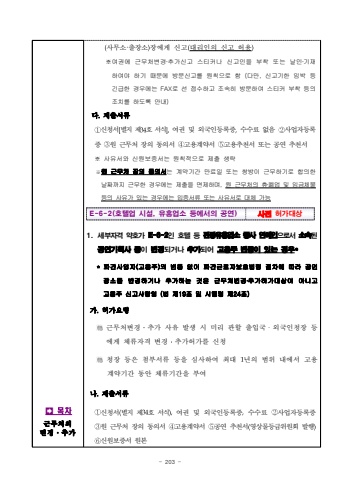 - 203 %uf000%uadfc%ubb34%ucc98%uc758%ubcc0%uacbd%u2024%ucd94%uac00(%uc0ac%ubb34%uc18c%u00b7%ucd9c%uc7a5%uc18c)%uc7a5%uc5d0%uac8c %uc2e0%uace0(%ub300%ub9ac%uc778%uc758 %uc2e0%uace0 %ud5c8%uc6a9)%u203b%uc5ec%uad8c%uc5d0 %uadfc%ubb34%ucc98%ubcc0%uacbd%u2024%ucd94%uac00%uc2e0%uace0 %uc2a4%ud2f0%ucee4%ub098 %uc2e0%uace0%uc778%uc744 %ubd80%ucc29 %ub610%ub294 %ub0a0%uc778%u2024%uae30%uc7ac%ud558%uc5ec%uc57c %ud558%uae30 %ub54c%ubb38%uc5d0 %ubc29%ubb38%uc2e0%uace0%ub97c %uc6d0%uce59%uc73c%ub85c %ud568 (%ub2e4%ub9cc, %uc2e0%uace0%uae30%ud55c %uc784%ubc15 %ub4f1 %uae34%uae09%ud55c %uacbd%uc6b0%uc5d0%ub294 FAX%ub85c %uc120 %uc811%uc218%ud558%uace0 %uc870%uc18d%ud788 %ubc29%ubb38%ud558%uc5ec %uc2a4%ud2f0%ucee4 %ubd80%ucc29 %ub4f1%uc758 %uc870%uce58%ub97c %ud558%ub3c4%ub85d %uc548%ub0b4) %ub2e4.%uc81c%ucd9c%uc11c%ub958%u2460%uc2e0%uccad%uc11c[%ubcc4%uc9c0 %uc81c34%ud638 %uc11c%uc2dd],%uc5ec%uad8c %ubc0f %uc678%uad6d%uc778%ub4f1%ub85d%uc99d,%uc218%uc218%ub8cc%uc5c6%uc74c %u2461%uc0ac%uc5c5%uc790%ub4f1%ub85d%uc99d %u2462%uc6d0 %uadfc%ubb34%ucc98 %uc7a5%uc758 %ub3d9%uc758%uc11c %u2463%uace0%uc6a9%uacc4%uc57d%uc11c %u2464%uace0%uc6a9%ucd94%ucc9c%uc11c %ub610%ub294 %uacf5%uc5f0 %ucd94%ucc9c%uc11c%u203b %uc0ac%uc720%uc11c%uc640 %uc2e0%uc6d0%ubcf4%uc99d%uc11c%ub294 %uc6d0%uce59%uc801%uc73c%ub85c %uc81c%ucd9c %uc0dd%ub7b5%u203b%uc6d0 %uadfc%ubb34%ucc98 %uc7a5%uc758 %ub3d9%uc758%uc11c%ub294 %uacc4%uc57d%uae30%uac04 %ub9cc%ub8cc%uc77c %ub610%ub294 %uc30d%ubc29%uc774 %uadfc%ubb34%ud558%uae30%ub85c %ud569%uc758%ud55c%ub0a0%uc9dc%uae4c%uc9c0 %uadfc%ubb34%ud55c %uacbd%uc6b0%uc5d0%ub294 %uc81c%ucd9c%uc744 %uba74%uc81c%ud558%uba70,%uc6d0 %uadfc%ubb34%ucc98%uc758 %ud734%u2024%ud3d0%uc5c5 %ubc0f %uc784%uae08%uccb4%ubd88 %ub4f1%uc758 %uc0ac%uc720%uac00 %uc788%ub294 %uacbd%uc6b0%uc5d0%ub294 %uc785%uc99d%uc11c%ub958 %ub610%ub294 %uc0ac%uc720%uc11c%ub85c %ub300%uccb4 %uac00%ub2a5E-6-2(%ud638%ud154%uc5c5 %uc2dc%uc124, %uc720%ud765%uc5c5%uc18c %ub4f1%uc5d0%uc11c%uc758 %uacf5%uc5f0)%uc0ac%uc804%ud5c8%uac00%ub300%uc0c11. %uc138%ubd80%uc790%uaca9 %uc57d%ud638%uac00 E-6-2%uc778 %ud638%ud154 %ub4f1 %uad00%uad11%uc720%ud765%uc5c5%uc18c %uc885%uc0ac %uc5f0%uc608%uc778%uc73c%ub85c%uc11c %uc18c%uc18d%ub41c %uacf5%uc5f0%uae30%ud68d%uc0ac %ub4f1%uc774 %ubcc0%uacbd%ub418%uac70%ub098 %ucd94%uac00%ub418%uc5b4 %uace0%uc6a9%uc8fc %ubcc0%ub3d9%uc774 %uc788%ub294 %uacbd%uc6b0* * %ud30c%uacac%uc0ac%uc5c5%uc790(%uace0%uc6a9%uc8fc)%uc758 %ubcc0%ub3d9 %uc5c6%uc774 %ud30c%uacac%uadfc%ub85c%uc790%ubcf4%ud638%ubc95%ub839 %uc808%ucc28%uc5d0 %ub530%ub77c %uacf5%uc5f0%uc7a5%uc18c%ub97c %ubcc0%uacbd%ud558%uac70%ub098 %ucd94%uac00%ud558%ub294 %uac83%uc740 %uadfc%ubb34%ucc98%ubcc0%uacbd%u2024%ucd94%uac00%ud5c8%uac00%ub300%uc0c1%uc774 %uc544%ub2c8%uace0 %uace0%uc6a9%uc8fc %uc2e0%uace0%uc0ac%ud56d%uc784 (%ubc95 %uc81c19%uc870 %ubc0f %uc2dc%ud589%ub839 %uc81c24%uc870) %uac00.%ud5c8%uac00%uc694%ub839%uadfc%ubb34%ucc98%ubcc0%uacbd%u2024%ucd94%uac00 %uc0ac%uc720 %ubc1c%uc0dd %uc2dc %ubbf8%ub9ac %uad00%ud560 %ucd9c%uc785%uad6d%u318d%uc678%uad6d%uc778%uccad%uc7a5 %ub4f1%uc5d0%uac8c %uccb4%ub958%uc790%uaca9 %ubcc0%uacbd%u2024%ucd94%uac00%ud5c8%uac00%ub97c %uc2e0%uccad%uccad%uc7a5 %ub4f1%uc740 %ucca8%ubd80%uc11c%ub958 %ub4f1%uc744 %uc2ec%uc0ac%ud558%uc5ec %ucd5c%ub300 1%ub144%uc758 %ubc94%uc704 %ub0b4%uc5d0%uc11c %uace0%uc6a9%uacc4%uc57d%uae30%uac04 %ub3d9%uc548 %uccb4%ub958%uae30%uac04%uc744 %ubd80%uc5ec%ub098.%uc81c%ucd9c%uc11c%ub958%u2460%uc2e0%uccad%uc11c(%ubcc4%uc9c0 %uc81c34%ud638 %uc11c%uc2dd),%uc5ec%uad8c %ubc0f %uc678%uad6d%uc778%ub4f1%ub85d%uc99d,%uc218%uc218%ub8cc%u2461%uc0ac%uc5c5%uc790%ub4f1%ub85d%uc99d%u2462%uc6d0 %uadfc%ubb34%ucc98 %uc7a5%uc758 %ub3d9%uc758%uc11c %u2463%uace0%uc6a9%uacc4%uc57d%uc11c %u2464%uacf5%uc5f0 %ucd94%ucc9c%uc11c(%uc601%uc0c1%ubb3c%ub4f1%uae09%uc704%uc6d0%ud68c %ubc1c%ud589)%u2465%uc2e0%uc6d0%ubcf4%uc99d%uc11c %uc6d0%ubcf8
