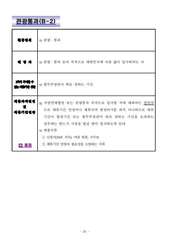 - 25 -%uad00%uad11%ud1b5%uacfc(B-2)%ud65c%ub3d9%ubc94%uc704%uad00%uad11%u2024%ud1b5%uacfc%ud574%ub2f9%uc790%uad00%uad11%u2024%ud1b5%uacfc %ub4f1%uc758 %ubaa9%uc801%uc73c%ub85c %ub300%ud55c%ubbfc%uad6d%uc5d0 %uc0ac%uc99d %uc5c6%uc774 %uc785%uad6d%ud558%ub824%ub294 %uc7901%ud68c%uc5d0%ubd80%uc5ec%ud560%uc218%uc788%ub294%uccb4%ub958%uae30%uac04%uc0c1%ud55c%ubc95%ubb34%ubd80%uc7a5%uad00%uc774 %ub530%ub85c %uc815%ud558%ub294 %uae30%uac04%uccb4%ub958%uc790%uaca9%ubcc0%uacbd%ubc0f%uccb4%ub958%uae30%uac04%uc5f0%uc7a5%uf000%ubaa9%ucc28%uc0ac%uc99d%uba74%uc81c%ud611%uc815 %ub610%ub294 %uad00%uad11%ud1b5%uacfc %ubaa9%uc801%uc73c%ub85c %uc785%uad6d%ud55c %uc790%uc5d0 %ub300%ud558%uc5ec%ub294 %uc6d0%uce59%uc801%uc73c%ub85c %uccb4%ub958%uae30%uac04 %uc5f0%uc7a5%uc774%ub098 %uccb4%ub958%uc790%uaca9 %ubcc0%uacbd%ud5c8%uac00%ub97c %ud558%uc9c0 %uc544%ub2c8%ud558%ubbc0%ub85c %uccb4%ub958%uae30%uac04%uc774 %ud611%uc815%uae30%uac04 %ub610%ub294 %ubc95%ubb34%ubd80%uc7a5%uad00%uc774 %ub530%ub85c %uc815%ud558%ub294 %uae30%uac04%uc744 %ucd08%uacfc%ud558%ub294 %uacbd%uc6b0%uc5d0%ub294 %ubc18%ub4dc%uc2dc %uc0ac%uc99d%uc744 %ubc1c%uae09 %ubc1b%uc544 %uc785%uad6d%ud558%ub3c4%ub85d %uc548%ub0b4%uc81c%ucd9c%uc11c%ub958%u2460%uc2e0%uccad%uc11c(34%ud638 %uc11c%uc2dd),%uc5ec%uad8c %uc6d0%ubcf8,%uc218%uc218%ub8cc%u2461%uccb4%ub958%uae30%uac04 %uc5f0%uc7a5%uc758 %ud544%uc694%uc131%uc744 %uc18c%uba85%ud558%ub294 %uc11c%ub958