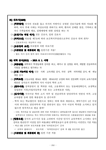 - 252 -31)%uac04%ud638%uc0ac(2430)%u274d (%uc9c1%uc885%uc124%uba85)%uc758%uc0ac%uc758 %uc9c4%ub8cc%ub97c %ub3d5%uace0 %uc758%uc0ac%uc758 %ucc98%ubc29%uc774%ub098 %uaddc%uc815%ub41c %uac04%ud638%uae30%uc220%uc5d0 %ub530%ub77c %uce58%ub8cc%ub97c %ud589%ud558%uba70,%uc758%uc0ac %ubd80%uc7ac %uc2dc%uc5d0%ub294 %ube44%uc0c1%uc870%uce58%ub97c %ucde8%ud558%uae30%ub3c4 %ud558%uba70,%ud658%uc790%uc758 %uc0c1%ud0dc%ub97c %uc810%uac80,%uae30%ub85d%ud558%uace0 %ud658%uc790%ub098 %uac00%uc871%ub4e4%uc5d0%uac8c %uccb4%ub8cc,%uc9c8%ubcd1%uc608%ubc29%uc5d0 %ub300%ud55c %uc124%uba85%uc744 %ud558%ub294 %uc790%u274d (%ub3c4%uc785%uae30%ub2a5 %uc9c1%uc5c5 %uc608%uc2dc)%uc804%ubb38 %uac04%ud638%uc0ac,%uc77c%ubc18 %uac04%ud638%uc0ac%u274d (%uc790%uaca9%uc694%uac74)%uc758%ub8cc%ubc95 %uc81c7%uc870%uc5d0 %ub530%ub77c %ubcf4%uac74%ubcf5%uc9c0%ubd80%uc7a5%uad00%uc73c%ub85c%ubd80%ud130 %uac04%ud638%uc0ac %uba74%ud5c8 %ucde8%ub4dd**%uac04%ud638%uc870%ubb34%uc0ac%ub294%ub300%uc0c1%uc790%uac00%uc544%ub2d8%u274d (%uace0%uc6a9%uc5c5%uccb4 %uc694%uac74)%uc758%ub8cc%ubc95%uc5d0 %uc758%ud55c %uc758%ub8cc%uae30%uad00%u274d (%uc0ac%uc99d%ubc1c%uae09 %ubc0f %uccb4%ub958%uad00%ub9ac %ub4f1)%uc77c%ubc18%uae30%uc900 %uc801%uc6a9**%ubcc4%ub3c4%ud5c8%uac00%ub4f1%uc758%uc808%ucc28%uc5c6%uc774%uc758%ub8cc%ucf54%ub514%ub124%uc774%ud130(S3922)%ud65c%ub3d9%ub3c4%uac00%ub2a532)%ub300%ud559 %uac15%uc0ac(2512)-2019.8.1.%uc2dc%ud589%u274d(%uc9c1%uc885%uc124%uba85)%ub300%ud559%uc5d0%uc11c %ud559%uc0dd%ub4e4%uc5d0%uac8c %uac15%uc758%ub97c %ud558%uace0,%uc138%ubbf8%ub098 %ubc0f %uc2e4%ud5d8%uc744 %ud558%uba70,%uacc4%uc5f4%ubcc4 %uc804%uacf5%uacfc%ubaa9%uc758%uc2dc%ud5d8%uc744 %ucd9c%uc81c%ud558%uace0 %ud3c9%uac00%ud558%ub294 %uc790 %u274d(%ub3c4%uc785 %uac00%ub2a5%uc9c1%uc5c5 %uc608%uc2dc)%uc778%ubb38%u30fb%uc0ac%ud68c%uad50%uc721%uacc4%uc5f4 %uac15%uc0ac,%uc790%uc5f0%u30fb%uacf5%ud559%uc758%uc57d%uacc4%uc5f4 %uac15%uc0ac,%uc608%u30fb%uccb4%ub2a5%uacc4%uc5f4 %uac15%uc0ac%u274d (%uc790%uaca9%uc694%uac74)%uace0%ub4f1%uad50%uc721%ubc95 %uc81c14%uc870 %uc81c2%ud56d%u30fb%uc81c14%uc870%uc7582%uaddc%uc815%uc5d0 %ub530%ub77c %uc804%ubb38%ub300%ud559 %uc774%uc0c1%uc758 %uad50%uc721%uae30%uad00%uc5d0%ucc44%uc6a9%ub41c %uac15%uc0ac%ub85c%uc11c %uad00%ub828%ud559%uacfc %uc11d%uc0ac %uc774%uc0c1%uc758 %ud559%uc704 %uc18c%uc9c0%u274d (%ucca8%ubd80%uc11c%ub958)%uacbd%ub825%uc99d%uba85%uc11c %ubc0f %ud559%uc704%uc99d %uc0ac%ubcf8,%uace0%uc6a9%uacc4%uc57d%uc11c %ub610%ub294 %uc784%uc6a9%uc608%uc815%ud655%uc778%uc11c,%ucd08%uccad%ud559%uad50 %uc124%ub9bd%uad00%ub828 %uc11c%ub958(%uc0ac%uc5c5%uc790%ub4f1%ub85d%uc99d %uc0ac%ubcf8 %ub610%ub294 %uace0%uc720%ubc88%ud638%uc99d %uc0ac%ubcf8)%u274d (%uc2ec%uc0ac%uae30%uc900)%uc11d%uc0ac%uc774%uc0c1 %ud559%uc704 %uc18c%uc9c0 %uc5ec%ubd80 %ubc0f %uc804%uacf5%uacfc%ubaa9%uacfc %ub2f4%ub2f9%uacfc%ubaa9%uc758 %uc5f0%uad00%uc131 %uc5ec%ubd80,%uace0%ub4f1%uad50%uc721%ubc95%ub839 %ub4f1%uc5d0 %uc815%ud55c %ucc44%uc6a9%uc808%ucc28 %ub4f1 %uc900%uc218%uc5ec%ubd80-%ud559%uce59 %ub610%ub294 %ud559%uad50%ubc95%uc778%uc758 %uc815%uad00%uc73c%ub85c %uc815%ud558%ub294 %ubc14%uc5d0 %ub530%ub77c %ucc44%uc6a9%ub418%uace0,%uacc4%uc57d%uae30%uac04%uc774 1%ub144 %uc774%uc0c1%uc774%ub77c %ud558%ub354%ub77c%ub3c4 %ub2f4%ub2f9%uacfc%ubaa9%uacfc %uc9c1%uc811 %uad00%ub828%uc131%uc774 %uc788%ub294 %uc11d%uc0ac %uc774%uc0c1%uc758 %ud559%uc704%ub97c %uc18c%uc9c0%ud558%uace0 %uc788%uc9c0 %uc54a%uc73c%uba74 %uc6d0%uce59%uc801%uc73c%ub85c %ubc1c%uae09 %ubd88%ud5c8**%ub2e4%ub9cc,%ubcf5%uc218%uc804%uacf5%ubc0f%ub2f4%ub2f9%uacfc%ubaa9%uad00%ub828%uc804%ubb38%uc790%uaca9%uc99d%uc774%ub098%uacbd%ub825%uc785%uc99d%uc11c%ub958%ub4f1%uc73c%ub85c%ud574%ub2f9%ubd84%uc57c%uc804%ubb38%uc9c0%uc2dd%uc744%uac16%ucd94%uc5c8%ub2e4%uace0%uc778%uc815%ub418%ub294%ud559%uc0ac%ud559%uc704%uc18c%uc9c0%uc790%uc5d0%ub300%ud574%uc11c%ub294%uc608%uc678%uc801%uc73c%ub85c%uc0ac%uc99d%ubc1c%uae09%uc778%uc815%uc11c%ubc1c%uae09%uc744%ud5c8%uc6a9%u274d(%uc784%uae08%uc694%uac74)%uac15%uc0ac%uc758 %uad50%uc218%uc2dc%uac04 %ub4f1%uc744 %uace0%ub824%ud558%uc5ec %uc2dc%uac04%ub2f9 %ub2e8%uac00%uac00 %uad50%uc721%ubd80%uc5d0%uc11c %uace0%uc2dc%ud558%ub294 %uac15%uc0ac %uac15%uc758%ub8cc %ud3c9%uade0%ub2e8%uac00*%uc774%uc0c1%uc77c %uacbd%uc6b0 %ud5c8%uc6a9(%ub9e4%ub144 %ub300%ud559%uc815%ubcf4%uacf5%uc2dc %uacf5%uac1c %uc804%uae4c%uc9c0%ub294 %uc774%uc804%uc5f0%ub3c4 %uae30%uc900 %uc801%uc6a9)*%ub9e4%ub1446%uc6d4%uad50%uc721%ubd80%ubcf4%ub3c4%uc790%ub8cc%ub97c%ud1b5%ud574%u2018%ub300%ud559%uc815%ubcf4%uacf5%uc2dc%u2019%uacf5%uac1c%u261e%uad50%uc721%ubd80%ud648%ud398%uc774%uc9c0%u2013%ubcf4%ub3c4%uc790%ub8cc-%u2018%ub300%ud559%uc815%ubcf4%uacf5%uc2dc%u2019%uac80%uc0c9%ud6c48%uc6d4%ubcf4%ub3c4%uc790%ub8cc%ucc38%uace0%u274d (%uc0ac%uc99d%ubc1c%uae09 %ubc0f %uccb4%ub958%uad00%ub9ac %ub4f1)%uc77c%ubc18 %uae30%uc900 %uc801%uc6a9