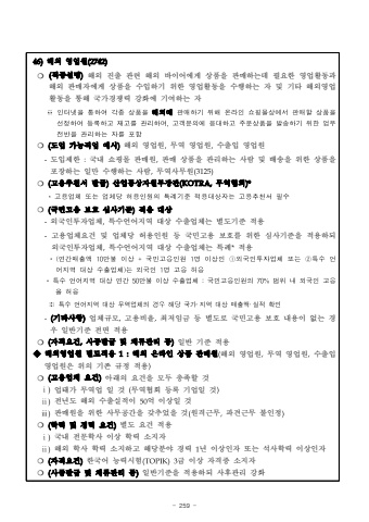 - 259 -46)%ud574%uc678 %uc601%uc5c5%uc6d0(2742)%u274d (%uc9c1%uc885%uc124%uba85)%ud574%uc678 %uc9c4%ucd9c %uad00%ub828 %ud574%uc678 %ubc14%uc774%uc5b4%uc5d0%uac8c %uc0c1%ud488%uc744 %ud310%ub9e4%ud558%ub294%ub370 %ud544%uc694%ud55c %uc601%uc5c5%ud65c%ub3d9%uacfc %ud574%uc678%ud310%ub9e4%uc790%uc5d0%uac8c %uc0c1%ud488%uc744 %uc218%uc785%ud558%uae30 %uc704%ud55c %uc601%uc5c5%ud65c%ub3d9%uc744 %uc218%ud589%ud558%ub294 %uc790 %ubc0f %uae30%ud0c0 %ud574%uc678%uc601%uc5c5 %ud65c%ub3d9%uc744 %ud1b5%ud574 %uad6d%uac00%uacbd%uc7c1%ub825 %uac15%ud654%uc5d0 %uae30%uc5ec%ud558%ub294 %uc790%u203b%uc778%ud130%ub137%uc744%ud1b5%ud558%uc5ec%uac01%uc885%uc0c1%ud488%uc744%ud574%uc678%uc5d0%ud310%ub9e4%ud558%uae30%uc704%ud574%uc628%ub77c%uc778%uc1fc%ud551%ubab0%uc0c1%uc5d0%uc11c%ud310%ub9e4%ud560%uc0c1%ud488%uc744%uc120%uc815%ud558%uc5ec%ub4f1%ub85d%ud558%uace0%uc7ac%uace0%ub97c%uad00%ub9ac%ud558%uba70,%uace0%uac1d%ubb38%uc758%uc5d0%uc751%ub300%ud558%uace0%uc8fc%ubb38%uc0c1%ud488%uc744%ubc1c%uc1a1%ud558%uae30%uc704%ud55c%uc5c5%ubb34%uc804%ubc18%uc744%uad00%ub9ac%ud558%ub294%uc790%ub97c%ud3ec%ud568%u274d(%ub3c4%uc785 %uac00%ub2a5%uc9c1%uc5c5 %uc608%uc2dc)%ud574%uc678 %uc601%uc5c5%uc6d0,%ubb34%uc5ed %uc601%uc5c5%uc6d0,%uc218%ucd9c%uc785 %uc601%uc5c5%uc6d0 -%ub3c4%uc785%uc81c%ud55c :%uad6d%ub0b4 %uc1fc%ud551%ubab0 %ud310%ub9e4%uc6d0,%ud310%ub9e4 %uc0c1%ud488%uc744 %uad00%ub9ac%ud558%ub294 %uc0ac%ub78c %ubc0f %ubc30%uc1a1%uc744 %uc704%ud55c %uc0c1%ud488%uc744 %ud3ec%uc7a5%ud558%ub294 %uc77c%ub9cc %uc218%ud589%ud558%ub294 %uc0ac%ub78c,%ubb34%uc5ed%uc0ac%ubb34%uc6d0(3125)%u274d(%uace0%uc6a9%ucd94%ucc9c%uc11c %ubc1c%uae09)%uc0b0%uc5c5%ud1b5%uc0c1%uc790%uc6d0%ubd80%uc7a5%uad00(KOTRA,%ubb34%uc5ed%ud611%ud68c)**%uace0%uc6a9%uc5c5%uccb4%ub610%ub294%uc5c5%uccb4%ub2f9%ud5c8%uc6a9%uc778%uc6d0%uc758%ud2b9%ub840%uae30%uc900%uc801%uc6a9%ub300%uc0c1%uc790%ub294%uace0%uc6a9%ucd94%ucc9c%uc11c%ud544%uc218%u274d(%uad6d%ubbfc%uace0%uc6a9 %ubcf4%ud638 %uc2ec%uc0ac%uae30%uc900)%uc801%uc6a9 %ub300%uc0c1-%uc678%uad6d%uc778%ud22c%uc790%uc5c5%uccb4,%ud2b9%uc218%uc5b8%uc5b4%uc9c0%uc5ed %ub300%uc0c1 %uc218%ucd9c%uc5c5%uccb4%ub294 %ubcc4%ub3c4%uae30%uc900 %uc801%uc6a9-%uace0%uc6a9%uc5c5%uccb4%uc694%uac74 %ubc0f %uc5c5%uccb4%ub2f9 %ud5c8%uc6a9%uc778%uc6d0 %ub4f1 %uad6d%ubbfc%uace0%uc6a9 %ubcf4%ud638%ub97c %uc704%ud55c %uc2ec%uc0ac%uae30%uc900%uc744 %uc801%uc6a9%ud558%ub418 %uc678%uad6d%uc778%ud22c%uc790%uc5c5%uccb4,%ud2b9%uc218%uc5b8%uc5b4%uc9c0%uc5ed %ub300%uc0c1 %uc218%ucd9c%uc5c5%uccb4%ub294 %ud2b9%ub840*%uc801%uc6a9*(%uc5f0%uac04%ub9e4%ucd9c%uc56110%ub9cc%ubd88%uc774%uc0c1+%uad6d%ubbfc%uace0%uc6a9%uc778%uc6d01%uba85%uc774%uc0c1%uc778%u2460%uc678%uad6d%uc778%ud22c%uc790%uc5c5%uccb4%ub610%ub294%u2461%ud2b9%uc218%uc5b8%uc5b4%uc9c0%uc5ed%ub300%uc0c1%uc218%ucd9c%uc5c5%uccb4)%ub294%uc678%uad6d%uc7781%uba85%uace0%uc6a9%ud5c8%uc6a9*%ud2b9%uc218%uc5b8%uc5b4%uc9c0%uc5ed%ub300%uc0c1%uc5f0%uac0450%ub9cc%ubd88%uc774%uc0c1%uc218%ucd9c%uc5c5%uccb4:%uad6d%ubbfc%uace0%uc6a9%uc778%uc6d0%uc75870%%ubc94%uc704%ub0b4%uc678%uad6d%uc778%uace0%uc6a9%uc744%ud5c8%uc6a9%u203b%ud2b9%uc218%uc5b8%uc5b4%uc9c0%uc5ed%ub300%uc0c1%ubb34%uc5ed%uc5c5%uccb4%uc758%uacbd%uc6b0%ud574%ub2f9%uad6d%uac00%u2027%uc9c0%uc5ed%ub300%uc0c1%ub9e4%ucd9c%uc561%u2027%uc2e4%uc801%ud655%uc778-(%uae30%ud0c0%uc0ac%ud56d)%uc5c5%uccb4%uaddc%ubaa8,%uace0%uc6a9%ube44%uc728,%ucd5c%uc800%uc784%uae08 %ub4f1 %ubcc4%ub3c4%ub85c %uad6d%ubbfc%uace0%uc6a9 %ubcf4%ud638 %ub0b4%uc6a9%uc774 %uc5c6%ub294 %uacbd%uc6b0 %uc77c%ubc18%uae30%uc900 %uc804%uba74 %uc801%uc6a9%u274d (%uc790%uaca9%uc694%uac74,%uc0ac%uc99d%ubc1c%uae09 %ubc0f %uccb4%ub958%uad00%ub9ac %ub4f1)%uc77c%ubc18 %uae30%uc900 %uc801%uc6a9%u25c8%ud574%uc678%uc601%uc5c5%uc6d0 %ubcc4%ub3c4%uc801%uc6a9 1:%ud574%uc678 %uc628%ub77c%uc778 %uc0c1%ud488 %ud310%ub9e4%uc6d0(%ud574%uc678 %uc601%uc5c5%uc6d0,%ubb34%uc5ed %uc601%uc5c5%uc6d0,%uc218%ucd9c%uc785 %uc601%uc5c5%uc6d0%uc740 %uc704%uc758 %uae30%uc874 %uaddc%uc815 %uc801%uc6a9)%u274d(%uace0%uc6a9%uc5c5%uccb4 %uc694%uac74)%uc544%ub798%uc758 %uc694%uac74%uc744 %ubaa8%ub450 %ucda9%uc871%ud560 %uac83%u2170)%uc5c5%ud0dc%uac00 %ubb34%uc5ed%uc5c5 %uc77c %uac83 (%ubb34%uc5ed%ud611%ud68c %ub4f1%ub85d %uae30%uc5c5%uc77c %uac83)%u2171)%uc804%ub144%ub3c4 %ud574%uc678 %uc218%ucd9c%uc2e4%uc801%uc774 50%uc5b5 %uc774%uc0c1%uc77c %uac83%u2172)%ud310%ub9e4%uc6d0%uc744 %uc704%ud55c %uc0ac%ubb34%uacf5%uac04%uc744 %uac16%ucd94%uc5c8%uc744 %uac83(%uc6d0%uaca9%uadfc%ubb34,%ud30c%uacac%uadfc%ubb34 %ubd88%uc778%uc815)%u274d (%ud559%ub825 %ubc0f %uacbd%ub825 %uc694%uac74)%ubcc4%ub3c4 %uc694%uac74 %uc801%uc6a9%u2170)%uad6d%ub0b4 %uc804%ubb38%ud559%uc0ac %uc774%uc0c1 %ud559%ub825 %uc18c%uc9c0%uc790%u2171)%ud574%uc678 %ud559%uc0ac %ud559%ub825 %uc18c%uc9c0%ud558%uace0 %ud574%ub2f9%ubd84%uc57c %uacbd%ub825 1%ub144 %uc774%uc0c1%uc778%uc790 %ub610%ub294 %uc11d%uc0ac%ud559%ub825 %uc774%uc0c1%uc778%uc790%u274d (%uc790%uaca9%uc694%uac74)%ud55c%uad6d%uc5b4 %ub2a5%ub825%uc2dc%ud5d8(TOPIK)3%uae09 %uc774%uc0c1 %uc790%uaca9%uc99d %uc18c%uc9c0%uc790%u274d (%uc0ac%uc99d%ubc1c%uae09 %ubc0f %uccb4%ub958%uad00%ub9ac %ub4f1)%uc77c%ubc18%uae30%uc900%uc744 %uc801%uc6a9%ud558%ub418 %uc0ac%ud6c4%uad00%ub9ac %uac15%ud654
