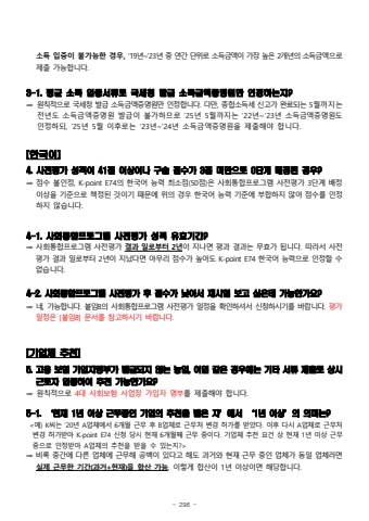 - 296 -%uc18c%ub4dd %uc785%uc99d%uc774 %ubd88%uac00%ub2a5%ud55c %uacbd%uc6b0,%u201819%ub144~%u201923%ub144 %uc911 %uc5f0%uac04 %ub2e8%uc704%ub85c %uc18c%ub4dd%uae08%uc561%uc774 %uac00%uc7a5 %ub192%uc740 2%uac1c%ub144%uc758 %uc18c%ub4dd%uae08%uc561%uc73c%ub85c %uc81c%ucd9c %uac00%ub2a5%ud569%ub2c8%ub2e4. 3-1. %ud3c9%uade0 %uc18c%ub4dd %uc785%uc99d%uc11c%ub958%ub85c %uad6d%uc138%uccad %ubc1c%uae09 %uc18c%ub4dd%uae08%uc561%uc99d%uba85%uc6d0%ub9cc %uc778%uc815%ud558%ub294%uc9c0?%u21d2 %uc6d0%uce59%uc801%uc73c%ub85c %uad6d%uc138%uccad %ubc1c%uae09 %uc18c%ub4dd%uae08%uc561%uc99d%uba85%uc6d0%ub9cc %uc778%uc815%ud569%ub2c8%ub2e4. %ub2e4%ub9cc, %uc885%ud569%uc18c%ub4dd%uc138 %uc2e0%uace0%uac00 %uc644%ub8cc%ub418%ub2945%uc6d4%uae4c%uc9c0%ub294 %uc804%ub144%ub3c4 %uc18c%ub4dd%uae08%uc561%uc99d%uba85%uc6d0 %ubc1c%uae09%uc774 %ubd88%uac00%ud558%ubbc0%ub85c %u201925%ub144 5%uc6d4%uae4c%uc9c0%ub294 %u201922%ub144~%u201923%ub144 %uc18c%ub4dd%uae08%uc561%uc99d%uba85%uc6d0%ub3c4 %uc778%uc815%ud558%ub418, %u201925%ub144 5%uc6d4 %uc774%ud6c4%ub85c%ub294 %u201923%ub144~%u201824%ub144 %uc18c%ub4dd%uae08%uc561%uc99d%uba85%uc6d0%uc744 %uc81c%ucd9c%ud574%uc57c %ud569%ub2c8%ub2e4.[%ud55c%uad6d%uc5b4]4. %uc0ac%uc804%ud3c9%uac00 %uc131%uc801%uc774 41%uc810 %uc774%uc0c1%uc774%ub098 %uad6c%uc220 %uc810%uc218%uac00 3%uc810 %ubbf8%ub9cc%uc73c%ub85c 0%ub2e8%uacc4 %ubc30%uc815%ub41c %uacbd%uc6b0?%u21d2 %uc810%uc218 %ubd88%uc778%uc815, K-point E74%uc758 %ud55c%uad6d%uc5b4 %ub2a5%ub825 %ucd5c%uc18c%uc810(50%uc810)%uc740 %uc0ac%ud68c%ud1b5%ud569%ud504%ub85c%uadf8%ub7a8 %uc0ac%uc804%ud3c9%uac00 3%ub2e8%uacc4 %ubc30%uc815 %uc774%uc0c1%uc744 %uae30%uc900%uc73c%ub85c %ucc45%uc815%ub41c %uac83%uc774%uae30 %ub54c%ubb38%uc5d0 %uc704%uc758 %uacbd%uc6b0 %ud55c%uad6d%uc5b4 %ub2a5%ub825 %uae30%uc900%uc5d0 %ubd80%ud569%ud558%uc9c0 %uc54a%uc544 %uc810%uc218%ub97c %uc778%uc815%ud558%uc9c0 %uc54a%uc2b5%ub2c8%ub2e4.4-1. %uc0ac%ud68c%ud1b5%ud569%ud504%ub85c%uadf8%ub7a8 %uc0ac%uc804%ud3c9%uac00 %uc131%uc801 %uc720%ud6a8%uae30%uac04?%u21d2 %uc0ac%ud68c%ud1b5%ud569%ud504%ub85c%uadf8%ub7a8 %uc0ac%uc804%ud3c9%uac00 %uacb0%uacfc %uc77c%ub85c%ubd80%ud130 2%ub144%uc774 %uc9c0%ub098%uba74 %ud3c9%uacfc %uacb0%uacfc%ub294 %ubb34%ud6a8%uac00 %ub429%ub2c8%ub2e4. %ub530%ub77c%uc11c %uc0ac%uc804%ud3c9%uac00 %uacb0%uacfc %uc77c%ub85c%ubd80%ud130 2%ub144%uc774 %uc9c0%ub0ac%ub2e4%uba74 %uc544%ubb34%ub9ac %uc810%uc218%uac00 %ub192%uc544%ub3c4 K-point E74 %ud55c%uad6d%uc5b4 %ub2a5%ub825%uc73c%ub85c%uc778%uc815%ud560 %uc218 %uc5c6%uc2b5%ub2c8%ub2e4.4-2. %uc0ac%ud68c%ud1b5%ud569%ud504%ub85c%uadf8%ub7a8 %uc0ac%uc804%ud3c9%uac00 %ud6c4 %uc810%uc218%uac00 %ub0ae%uc544%uc11c %uc7ac%uc2dc%ud5d8 %ubcf4%uace0 %uc2f6%uc740%ub370 %uac00%ub2a5%ud55c%uac00%uc694?%u21d2 %ub124, %uac00%ub2a5%ud569%ub2c8%ub2e4. %ubd99%uc7848%uc758 %uc0ac%ud68c%ud1b5%ud569%ud504%ub85c%uadf8%ub7a8 %uc0ac%uc804%ud3c9%uac00 %uc77c%uc815%uc744 %ud655%uc778%ud558%uc154%uc11c %uc2e0%uccad%ud558%uc2dc%uae30%ub97c %ubc14%ub78d%ub2c8%ub2e4. %ud3c9%uac00 %uc77c%uc815%uc740 [%ubd99%uc7848] %ubb38%uc11c%ub97c %ucc38%uace0%ud558%uc2dc%uae30 %ubc14%ub78d%ub2c8%ub2e4.[%uae30%uc5c5%uccb4 %ucd94%ucc9c]5. %uace0%uc6a9 %ubcf4%ud5d8 %uac00%uc785%uc790%uba85%ubd80%uac00 %ubc1c%uae09%ub418%uc9c0 %uc54a%ub294 %ub18d%uc5c5, %uc5b4%uc5c5 %uac19%uc740 %uacbd%uc6b0%uc5d0%ub294 %uae30%ud0c0 %uc11c%ub958 %uc81c%ucd9c%ub85c %uc0c1%uc2dc%uadfc%ub85c%uc790 %uc785%uc99d%ud558%uc5ec %ucd94%ucc9c %uac00%ub2a5%ud55c%uac00%uc694?%u21d2 %uc6d0%uce59%uc801%uc73c%ub85c 4%ub300 %uc0ac%ud68c%ubcf4%ud5d8 %uc0ac%uc5c5%uc7a5 %uac00%uc785%uc790 %uba85%ubd80%ub97c %uc81c%ucd9c%ud574%uc57c %ud569%ub2c8%ub2e4.5-1. %u2018%ud604%uc7ac 1%ub144 %uc774%uc0c1 %uadfc%ubb34%uc911%uc778 %uae30%uc5c5%uc758 %ucd94%ucc9c%uc744 %ubc1b%uc740 %uc790%u2019%uc5d0%uc11c %u20181%ub144 %uc774%uc0c1%u2019%uc758 %uc758%ubbf8%ub294?<%uc608) K%uc528%ub294 %u201920%ub144 A%uc5c5%uccb4%uc5d0%uc11c 6%uac1c%uc6d4 %uadfc%ubb34 %ud6c4 B%uc5c5%uccb4%ub85c %uadfc%ubb34%ucc98 %ubcc0%uacbd %ud5c8%uac00%ub97c %ubc1b%uc558%ub2e4. %uc774%ud6c4 %ub2e4%uc2dc A%uc5c5%uccb4%ub85c %uadfc%ubb34%ucc98 %ubcc0%uacbd %ud5c8%uac00%ubc1b%uc544 K-point E74 %uc2e0%uccad %ub2f9%uc2dc %ud604%uc7ac 6%uac1c%uc6d4%uc9f8 %uadfc%ubb34 %uc911%uc774%ub2e4. %uae30%uc5c5%uccb4 %ucd94%ucc9c %uc694%uac74 %uc0c1 %ud604%uc7ac 1%ub144 %uc774%uc0c1 %uadfc%ubb34 %uc911%uc73c%ub85c %uc778%uc815%ubc1b%uc544 A%uc5c5%uccb4%uc758 %ucd94%ucc9c%uc744 %ubc1b%uc744 %uc218 %uc788%ub294%uc9c0?>%u21d2 %ube44%ub85d %uc911%uac04%uc5d0 %ub2e4%ub978 %uc5c5%uccb4%uc5d0 %uadfc%ubb34%ud574 %uacf5%ubc31%uc774 %uc788%ub2e4%uace0 %ud574%ub3c4 %uacfc%uac70%uc640 %ud604%uc7ac %uadfc%ubb34 %uc911%uc778 %uc5c5%uccb4%uac00 %ub3d9%uc77c %uc5c5%uccb4%ub77c%uba74 %uc2e4%uc81c %uadfc%ubb34%ud55c %uae30%uac04(%uacfc%uac70+%ud604%uc7ac)%uc744 %ud569%uc0b0 %uac00%ub2a5, %uc774%ub807%uac8c %ud569%uc0b0%uc774 1%ub144 %uc774%uc0c1%uc774%uba74 %ud574%ub2f9%ud569%ub2c8%ub2e4.