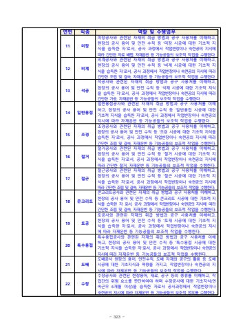 - 323 %uc5f0%ubc88%uc9c1%uc885%uc5ed%ud560 %ubc0f %uc218%ud589%uc5c5%ubb3411%ubbf8%uc7a5%ubbf8%uc7a5%uacf5%uc0ac%uc640 %uad00%ub828%ub41c %uc790%uc7ac%uc758 %ucde8%uae09 %ubc29%ubc95%uacfc %uacf5%uad6c %uc0ac%uc6a9%ucc98%ub97c %uc774%ud574%ud558%uace0, %ud604%uc7a5%uc758 %uacf5%uc0ac %uc6a9%uc5b4 %ubc0f %uc548%uc804 %uc218%uce59 %ub4f1 %u2018%ubbf8%uc7a5 %uc2dc%uacf5%uc5d0 %ub300%ud55c %uae30%ucd08%uc801 %uc9c0%uc2dd%uc744 %uc2b5%ub4dd%ud55c %uc790%u2019%ub85c%uc11c, %uacf5%uc0ac %uacfc%uc815%uc5d0%uc11c %uc791%uc5c5%ubc18%uc7a5%uc774%ub098 %uc219%ub828%uacf5%uc758 %uc9c0%uc2dc%uc5d0 %ub530%ub77c %uac04%ub2e8%ud55c %uc790%ub8cc %ubc30%ud569, %uc790%uc7ac%uc6b4%ubc18 %ub4f1 %uae30%ub2a5%uacf5%ub4e4%uc758 %ubcf4%uc870%uc801 %uc791%uc5c5%uc744 %uc218%ud589%ud55c%ub2e4.12%ube44%uacc4%ube44%uacc4%uacf5%uc0ac%uc640 %uad00%ub828%ub41c %uc790%uc7ac%uc758 %ucde8%uae09 %ubc29%ubc95%uacfc %uacf5%uad6c %uc0ac%uc6a9%ucc98%ub97c %uc774%ud574%ud558%uace0, %ud604%uc7a5%uc758 %uacf5%uc0ac %uc6a9%uc5b4 %ubc0f %uc548%uc804 %uc218%uce59 %ub4f1 %u2018%ube44%uacc4 %uc2dc%uacf5%uc5d0 %ub300%ud55c %uae30%ucd08%uc801 %uc9c0%uc2dd%uc744 %uc2b5%ub4dd%ud55c %uc790%u2019%ub85c%uc11c, %uacf5%uc0ac %uacfc%uc815%uc5d0%uc11c %uc791%uc5c5%ubc18%uc7a5%uc774%ub098 %uc219%ub828%uacf5%uc758 %uc9c0%uc2dc%uc5d0 %ub530%ub77c%uac04%ub2e8%ud55c %uc870%ub9bd %ubc0f %uacb0%uc18d, %uc790%uc7ac%uc6b4%ubc18 %ub4f1 %uae30%ub2a5%uacf5%ub4e4%uc758 %ubcf4%uc870%uc801 %uc791%uc5c5%uc744 %uc218%ud589%ud55c%ub2e4.13%uc11d%uacf5%uc11d%uacf5%uc0ac%uc640 %uad00%ub828%ub41c %uc790%uc7ac%uc758 %ucde8%uae09 %ubc29%ubc95%uacfc %uacf5%uad6c %uc0ac%uc6a9%ucc98%ub97c %uc774%ud574%ud558%uace0, %ud604%uc7a5%uc758 %uacf5%uc0ac %uc6a9%uc5b4 %ubc0f %uc548%uc804 %uc218%uce59 %ub4f1 %u2018%uc11d%uc7ac %uc2dc%uacf5%uc5d0 %ub300%ud55c %uae30%ucd08%uc801 %uc9c0%uc2dd%uc744 %uc2b5%ub4dd%ud55c %uc790%u2019%ub85c%uc11c, %uacf5%uc0ac %uacfc%uc815%uc5d0%uc11c %uc791%uc5c5%ubc18%uc7a5%uc774%ub098 %uc219%ub828%uacf5%uc758 %uc9c0%uc2dc%uc5d0 %ub530%ub77c %uac04%ub2e8%ud55c %uac00%uacf5, %uc790%uc7ac%uc6b4%ubc18 %ub4f1 %uae30%ub2a5%uacf5%ub4e4%uc758 %ubcf4%uc870%uc801 %uc791%uc5c5%uc744 %uc218%ud589%ud55c%ub2e4.14%uc77c%ubc18%uc6a9%uc811%uc77c%ubc18%uc6a9%uc811%uacf5%uc0ac%uc640 %uad00%ub828%ub41c %uc790%uc7ac%uc758 %ucde8%uae09 %ubc29%ubc95%uacfc %uacf5%uad6c %uc0ac%uc6a9%ucc98%ub97c %uc774%ud574%ud558%uace0, %ud604%uc7a5%uc758 %uacf5%uc0ac %uc6a9%uc5b4 %ubc0f %uc548%uc804 %uc218%uce59 %ub4f1 %u2018%uc77c%ubc18%uc6a9%uc811 %uc2dc%uacf5%uc5d0 %ub300%ud55c %uae30%ucd08%uc801 %uc9c0%uc2dd%uc744 %uc2b5%ub4dd%ud55c %uc790%u2019%ub85c%uc11c, %uacf5%uc0ac %uacfc%uc815%uc5d0%uc11c %uc791%uc5c5%ubc18%uc7a5%uc774%ub098 %uc219%ub828%uacf5%uc758%uc9c0%uc2dc%uc5d0 %ub530%ub77c %uc790%uc7ac%uc6b4%ubc18 %ub4f1 %uae30%ub2a5%uacf5%ub4e4%uc758 %ubcf4%uc870%uc801 %uc791%uc5c5%uc744 %uc218%ud589%ud55c%ub2e4.15%uc870%uacbd%uc870%uacbd%uacf5%uc0ac%uc640 %uad00%ub828%ub41c %uc790%uc7ac%uc758 %ucde8%uae09 %ubc29%ubc95%uacfc %uacf5%uad6c %uc0ac%uc6a9%ucc98%ub97c %uc774%ud574%ud558%uace0, %ud604%uc7a5%uc758 %uacf5%uc0ac %uc6a9%uc5b4 %ubc0f %uc548%uc804 %uc218%uce59 %ub4f1 %u2018%uc870%uacbd %uc2dc%uacf5%uc5d0 %ub300%ud55c %uae30%ucd08%uc801 %uc9c0%uc2dd%uc744 %uc2b5%ub4dd%ud55c %uc790%u2019%ub85c%uc11c, %uacf5%uc0ac %uacfc%uc815%uc5d0%uc11c %uc791%uc5c5%ubc18%uc7a5%uc774%ub098 %uc219%ub828%uacf5%uc758 %uc9c0%uc2dc%uc5d0 %ub530%ub77c %uac04%ub2e8%ud55c %uc870%ub9bd %ubc0f %uacb0%uc18d, %uc790%uc7ac%uc6b4%ubc18 %ub4f1 %uae30%ub2a5%uacf5%ub4e4%uc758 %ubcf4%uc870%uc801 %uc791%uc5c5%uc744 %uc218%ud589%ud55c%ub2e4.16%ucca0%uac70%ucca0%uac70%uacf5%uc0ac%uc640 %uad00%ub828%ub41c %uc790%uc7ac%uc758 %ucde8%uae09 %ubc29%ubc95%uacfc %uacf5%uad6c %uc0ac%uc6a9%ucc98%ub97c %uc774%ud574%ud558%uace0, %ud604%uc7a5%uc758 %uacf5%uc0ac %uc6a9%uc5b4 %ubc0f %uc548%uc804 %uc218%uce59 %ub4f1 %u2018%ucca0%uac70 %uc2dc%uacf5%uc5d0 %ub300%ud55c %uae30%ucd08%uc801 %uc9c0%uc2dd%uc744 %uc2b5%ub4dd%ud55c %uc790%u2019%ub85c%uc11c, %uacf5%uc0ac %uacfc%uc815%uc5d0%uc11c %uc791%uc5c5%ubc18%uc7a5%uc774%ub098 %uc219%ub828%uacf5%uc758 %uc9c0%uc2dc%uc5d0 %ub530%ub77c %uac04%ub2e8%ud55c %ucca0%uac70, %uc790%uc7ac%uc6b4%ubc18 %ub4f1 %uae30%ub2a5%uacf5%ub4e4%uc758 %ubcf4%uc870%uc801 %uc791%uc5c5%uc744 %uc218%ud589%ud55c%ub2e4.17%ucca0%uadfc%ucca0%uadfc%uacf5%uc0ac%uc640 %uad00%ub828%ub41c %uc790%uc7ac%uc758 %ucde8%uae09 %ubc29%ubc95%uacfc %uacf5%uad6c %uc0ac%uc6a9%ucc98%ub97c %uc774%ud574%ud558%uace0, %ud604%uc7a5%uc758 %uacf5%uc0ac %uc6a9%uc5b4 %ubc0f %uc548%uc804 %uc218%uce59 %ub4f1 %u2018%ucca0%uadfc %uc2dc%uacf5%uc5d0 %ub300%ud55c %uae30%ucd08%uc801 %uc9c0%uc2dd%uc744 %uc2b5%ub4dd%ud55c %uc790%u2019%ub85c%uc11c, %uacf5%uc0ac %uacfc%uc815%uc5d0%uc11c %uc791%uc5c5%ubc18%uc7a5%uc774%ub098 %uc219%ub828%uacf5%uc758 %uc9c0%uc2dc%uc5d0%ub530%ub77c %uac04%ub2e8%ud55c %uc870%ub9bd %ubc0f %uacb0%uc18d, %uc790%uc7ac%uc6b4%ubc18 %ub4f1 %uae30%ub2a5%uacf5%ub4e4%uc758 %ubcf4%uc870%uc801 %uc791%uc5c5%uc744 %uc218%ud589%ud55c%ub2e4.18%ucf58%ud06c%ub9ac%ud2b8%ucf58%ud06c%ub9ac%ud2b8%uacf5%uc0ac%uc640 %uad00%ub828%ub41c %uc790%uc7ac%uc758 %ucde8%uae09 %ubc29%ubc95%uacfc %uacf5%uad6c %uc0ac%uc6a9%ucc98%ub97c %uc774%ud574%ud558%uace0, %ud604%uc7a5%uc758 %uacf5%uc0ac %uc6a9%uc5b4 %ubc0f %uc548%uc804 %uc218%uce59 %ub4f1 %ucf58%ud06c%ub9ac%ud2b8 %uc2dc%uacf5%uc5d0 %ub300%ud55c %uae30%ucd08%uc801 %uc9c0%uc2dd%uc744 %uc2b5%ub4dd%ud55c %uc790 %ub85c%uc11c, %uacf5%uc0ac %uacfc%uc815%uc5d0%uc11c %uc791%uc5c5%ubc18%uc7a5%uc774%ub098 %uc219%ub828%uacf5%uc758 %uc9c0%uc2dc%uc5d0 %ub530%ub77c %uac04%ub2e8%ud55c %uc870%ub9bd %ubc0f %uacb0%uc18d, %uc790%uc7ac%uc6b4%ubc18 %ub4f1 %uae30%ub2a5%uacf5%ub4e4%uc758 %ubcf4%uc870%uc801 %uc791%uc5c5%uc744 %uc218%ud589%ud55c%ub2e4.19%ud1a0%uacf5%ud1a0%uacf5%uc0ac%uc640 %uad00%ub828%ub41c %uc790%uc7ac%uc758 %ucde8%uae09 %ubc29%ubc95%uacfc %uacf5%uad6c %uc0ac%uc6a9%ucc98%ub97c %uc774%ud574%ud558%uace0, %ud604%uc7a5%uc758 %uacf5%uc0ac %uc6a9%uc5b4 %ubc0f %uc548%uc804 %uc218%uce59 %ub4f1 %u2018%ud1a0%uc7ac %uc2dc%uacf5%uc5d0 %ub300