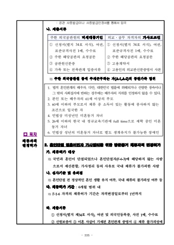 - 335 %uf000%uccb4%ub958%uc790%uaca9%ubcc0%uacbd%ud5c8%uac00: %uacf5%uad00 %uc0ac%uc99d%ubc1c%uae09%uc774%ub098 %uc0ac%uc99d%ubc1c%uae09%uc778%uc815%uc11c%ub97c %ud1b5%ud574%uc11c %uc785%uad6d%ub098.%uc81c%ucd9c%uc11c%ub958%uc8fc%ud55c %uc678%uad6d%uacf5%uad00%uc6d0%uc758 %ube44%uc138%ub300%ub3d9%uac70%uc778%uc678%uad50%u2024%uacf5%ubb34 %uc790%uaca9%uc790%uc758 %uac00%uc0ac%ubcf4%uc870%uc778%u2460%uc2e0%uccad%uc11c(%ubcc4%uc9c0 34%ud638 %uc11c%uc2dd),%uc5ec%uad8c,%ud45c%uc900%uaddc%uaca9%uc0ac%uc9c4 1%ub9e4,%uc218%uc218%ub8cc%u2461%uc8fc%ud55c %ud574%ub2f9%uacf5%uad00%uc758 %uc694%uccad%uacf5%ubb38%u2462%uacf5%uad00%uc6d0%uc2e0%ubd84%uc99d%u2463%uac00%uc871 %ub610%ub294 %uce5c%uc871%uad00%uacc4 %uc785%uc99d%uc11c%ub958%u2460%uc2e0%uccad%uc11c(%ubcc4%uc9c0 34%ud638 %uc11c%uc2dd),%uc5ec%uad8c,%ud45c%uc900%uaddc%uaca9%uc0ac%uc9c4 1%ub9e4,%uc218%uc218%ub8cc%u2461%uc8fc%ud55c %ud574%ub2f9%uacf5%uad00%uc758 %uc694%uccad%uacf5%ubb38 %u2462%uace0%uc6a9%uacc4%uc57d%uc11c%u2463%uace0%uc6a9%uc778%uc758 %uc678%uad50%uad00%uc2e0%ubd84%uc99d%uba85%uc11c %uc0ac%ubcf8%uc8fc%ud55c %uc678%uad6d%uacf5%uad00%uc6d0 %ub4f1%uc5d0 %uc8fc%uc7ac%uadfc%ubb34%ud558%ub294 %uc790(A-1,A-2)%uc758 %ub3d9%ubc18%uac00%uc871 %ubc94%uc7042. %ud63c%uc778%ub2e8%uc808 %uacb0%ud63c%uc774%ubbfc%uc790 %uac00%uc0ac%uc815%ub9ac%ub97c %uc704%ud55c %ubc29%ubb38%ub3d9%uac70 %uccb4%ub958%uc790%uaca9 %ubcc0%uacbd%ud5c8%uac00%uac00.%uccb4%ub958%ud5c8%uac00 %ub300%uc0c1 %uad6d%ubbfc%uacfc %ud63c%uc778%uc774 %ub2e8%uc808%ub418%uc5c8%uc73c%ub098 %ud63c%uc778%ub2e8%uc808%uc790(F-6-3)(F-6-3)%uc5d0 %ud574%ub2f9%ud558%uc9c0 %uc54a%ub294 %uc0ac%ub78c%uc73c%ub85c%uc11c %uc7ac%uc0b0%ubd84%ud560,%uac00%uc0ac%uc815%ub9ac %ub4f1%uc758 %uc0ac%uc720%ub85c %uad6d%ub0b4 %uccb4%ub958%uac00 %ubd88%uac00%ud53c%ud55c %uc0ac%ub78c%ub098.%uc2ec%uc0ac%uae30%uc900 %ubc0f %uc720%uc758%uc810 %ud63c%uc778%ub2e8%uc808 %uc804 %uc815%uc0c1%uc801%uc778 %ud63c%uc778 %uc0dd%ud65c %uc720%uc9c0 %uc5ec%ubd80,%uad6d%ub0b4 %uccb4%ub958%uc758 %ubd88%uac00%ud53c%uc131 %uc5ec%ubd80 %ub4f1%ub2e4.%uccb4%ub958%ud5c8%uac00 %uae30%uac04:6%uac1c%uc6d4 %ubc94%uc704 %ub0b4F-1-6%uc790%uaca9%uc758 %uccb4%ub958%ud5c8%uac00 %uae30%uac04%uc740 %uc790%uaca9%ubcc0%uacbd%uc77c%ub85c%ubd80%ud130 %uc790%uaca9%ubcc0%uacbd%uc77c%ub85c%ubd80%ud130 1%ub144%uae4c%uc9c0%ub77c.%uc81c%ucd9c%uc11c%ub958%u2460%uc2e0%uccad%uc11c(%ubcc4%uc9c0 %uc81c34%ud638 %uc11c%uc2dd),%uc5ec%uad8c %ubc0f %uc678%uad6d%uc778%ub4f1%ub85d%uc99d,%uc0ac%uc9c4 1%ub9e4,%uc218%uc218%ub8cc%u2461%uc2e0%uc6d0%ubcf4%uc99d%uc11c %u2462%uc774%ud63c %uc0ac%uc2e4%uc774 %uae30%uc7ac%ub41c %ud63c%uc778%uad00%uacc4 %uc99d%uba85%uc11c %u2463%uccb4%ub958 %ubd88%uac00%ud53c%uc131%uc5d01.%ubc95%uc801 %ud63c%uc778%uad00%uacc4%uc758 %ubc30%uc6b0%uc790.%ub2e4%ub9cc,%ub300%ud55c%ubbfc%uad6d %ubc95%ub960%uc5d0 %uc704%ubc30%ub418%uac70%ub098 %uc120%ub7c9%ud55c %ud48d%uc18d%uc774%ub098 %uadf8 %ubc16%uc758 %uc0ac%ud68c%uc9c8%uc11c%uc5d0 %ubc18%ud558%ub294 %uacbd%uc6b0%uc5d0%ub294 %ubc30%uc6b0%uc790%uc758 %uc9c0%uc704%ub97c %uc778%uc815%ud558%uc9c0 %uc54a%uc744%uc218 %uc788%ub2e4.2.%ubcf8%uc778 %ub610%ub294 %ubc30%uc6b0%uc790%uc758 61%uc138 %uc774%uc0c1%uc758 %ubd80%ubaa83.60%uc138 %uc774%ud558%uc758 %ubd80%ubaa8%ub85c%uc11c %uccb4%ub958 %uc911 %uc18c%ub4dd%uc774 %uc788%ub294 %ud65c%ub3d9%uc5d0 %uc885%uc0ac%ud558%uc9c0 %uc54a%ub294 %uc870%uac74%uc73c%ub85c %uc785%uad6d%ud55c %uc7904.%ubbfc%ubc95%uc0c1 %ubbf8%uc131%ub144%uc778 %ubbf8%ud63c%ub3d9%uac70 %uc790%ub1405.26%uc138 %uc774%ud558%uc758 %ud55c%uad6d %ub0b4 %uc815%uaddc%uad50%uc721%uae30%uad00%uc5d0 fulltime%uc73c%ub85c %uc7ac%ud559 %uc911%uc778 %ubbf8%ud63c %ub3d9%uac70 %uc790%ub1406.%ubbfc%ubc95%uc0c1 %uc131%ub144%uc758 %ubbf8%ud63c%ub3d9%uac70 %uc790%ub140%ub85c %ubcc4%ub3c4 %uc0dd%uacc4%uc720%uc9c0%uac00 %ubd88%uac00%ub2a5%ud55c %uc7a5%uc560%uc778