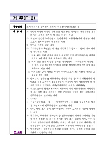 %uac70 %uc8fc(F-2)%ud65c%ub3d9%ubc94%uc704%uc601%uc8fc%uc790%uaca9%uc744 %ubd80%uc5ec%ubc1b%uae30 %uc704%ud558%uc5ec %uad6d%ub0b4 %uc7a5%uae30%uccb4%ub958%ud558%ub824%ub294 %uc790%ud574%ub2f9%uc790%uf000%ubaa9%ucc28%uac00.%uad6d%ubbfc%uc758 %ubbf8%uc131%ub144 %uc678%uad6d%uc778 %uc790%ub140 %ub610%ub294 %ubcc4%ud45c 1%uc7583%uc601%uc8fc(F-5)%uccb4%ub958%uc790%uaca9%uc744 %uac00%uc9c0%uace0%uc788%ub294%uc0ac%ub78c%uc758 %ubc30%uc6b0%uc790 %ubc0f %uadf8%uc758 %ubbf8%uc131%ub144 %uc790%ub140%ub098.%uad6d%ubbfc%uacfc %ud63c%uc778%uad00%uacc4(%uc0ac%uc2e4%uc0c1%uc758 %ud63c%uc778%uad00%uacc4%ub97c %ud3ec%ud568%ud55c%ub2e4)%uc5d0%uc11c %ucd9c%uc0dd%ud55c %uc0ac%ub78c%uc73c%ub85c%uc11c %ubc95%ubb34%ubd80%uc7a5%uad00%uc774 %uc778%uc815%ud558%ub294 %uc0ac%ub78c%ub2e4.%ub09c%ubbfc%uc758 %uc778%uc815%uc744 %ubc1b%uc740 %uc0ac%ub78c%ub77c.%u300c%uc678%uad6d%uc778%ud22c%uc790 %ucd09%uc9c4%ubc95%u300d%uc5d0 %ub530%ub978 %uc678%uad6d%ud22c%uc790%uac00 %ub4f1%uc73c%ub85c %ub2e4%uc74c%uc758 %uc5b4%ub290 %ud558%ub098%uc5d0%ud574%ub2f9%ud558%ub294 %uc0ac%ub78c1)%ubbf8%ud654 50%ub9cc %ub2ec%ub7ec %uc774%uc0c1%uc744 %ud22c%uc790%ud55c %uc678%uad6d%uc778%uc73c%ub85c%uc11c %uae30%uc5c5%ud22c%uc790(D-8)%uccb4%ub958%uc790%uaca9%uc73c%ub85c 3%ub144 %uc774%uc0c1 %uacc4%uc18d %uccb4%ub958%ud558%uace0 %uc788%ub294 %uc0ac%ub78c2)%ubbf8%ud654 50%ub9cc %ub2ec%ub7ec %uc774%uc0c1%uc744 %ud22c%uc790%ud55c %uc678%uad6d%ubc95%uc778%uc774 %u300c%uc678%uad6d%uc778%ud22c%uc790 %ucd09%uc9c4%ubc95%u300d%uc5d0%ub530%ub978 %uad6d%ub0b4 %uc678%uad6d%uc778%ud22c%uc790%uae30%uc5c5%uc5d0 %ud30c%uacac%ud55c %uc784%uc9c1%uc6d0%uc73c%ub85c%uc11c 3%ub144 %uc774%uc0c1 %uacc4%uc18d %uccb4%ub958%ud558%uace0 %uc788%ub294 %uc0ac%ub78c3)%ubbf8%ud654 30%ub9cc %ub2ec%ub7ec %uc774%uc0c1%uc744 %ud22c%uc790%ud55c %uc678%uad6d%uc778%uc73c%ub85c%uc11c 2%uba85 %uc774%uc0c1%uc758 %uad6d%ubbfc%uc744 %uace0%uc6a9%ud558%uace0 %uc788%ub294 %uc0ac%ub78c%ub9c8.%ubcc4%ud45c 1%uc7583%uc601%uc8fc(F-5)%uccb4%ub958%uc790%uaca9%uc744 %uc0c1%uc2e4%ud55c %uc0ac%ub78c %uc911 %uad6d%ub0b4 %uc0dd%ud65c%uad00%uacc4%uc758 %uad8c%uc775%ubcf4%ud638 %ub4f1%uc744 %uace0%ub824%ud558%uc5ec %ubc95%ubb34%ubd80%uc7a5%uad00%uc774 %uad6d%ub0b4%uc5d0%uc11c %uacc4%uc18d %uccb4%ub958%ud558%uc5ec%uc57c %ud560 %ud544%uc694%uac00%uc788%ub2e4%uace0 %uc778%uc815%ud558%ub294 %uc0ac%ub78c(%uac15%uc81c%ud1f4%uac70%ub41c %uc0ac%ub78c%uc740 %uc81c%uc678%ud55c%ub2e4)%ubc14.%uc678%uad50(A-1)%ubd80%ud130 %ud611%uc815(A-3)%uae4c%uc9c0%uc758 %uccb4%ub958%uc790%uaca9 %uc678%uc758 %uccb4%ub958%uc790%uaca9%uc73c%ub85c %ub300%ud55c%ubbfc%uad6d%uc5d05%ub144 %uc774%uc0c1 %uacc4%uc18d %uccb4%ub958%ud558%uc5ec %uc0dd%ud65c %uadfc%uac70%uc9c0%uac00 %uad6d%ub0b4%uc5d0 %uc788%ub294 %uc0ac%ub78c%uc73c%ub85c%uc11c %ubc95%ubb34%ubd80%uc7a5%uad00%uc774 %uc778%uc815%ud558%ub294 %uc0ac%ub78c%uc0ac.<%uc0ad%uc81c>%uc544.%u300c%uad6d%uac00%uacf5%ubb34%uc6d0%ubc95%u300d%ub610%ub294 %u300c%uc9c0%ubc29%uacf5%ubb34%uc6d0%ubc95%u300d%uc5d0 %ub530%ub77c %uacf5%ubb34%uc6d0%uc73c%ub85c %uc784%uc6a9%ub41c %uc0ac%ub78c%uc73c%ub85c%uc11c %ubc95%ubb34%ubd80%uc7a5%uad00%uc774 %uc778%uc815%ud558%ub294 %uc0ac%ub78c%uc790.%ub098%uc774,%ud559%ub825,%uc18c%ub4dd %ub4f1%uc774 %ubc95%ubb34%ubd80%uc7a5%uad00%uc774 %uc815%ud558%uc5ec %uace0%uc2dc%ud558%ub294 %uae30%uc900%uc5d0 %ud574%ub2f9%ud558%ub294%uc0ac%ub78c%ucc28.%ud22c%uc790%uc9c0%uc5ed,%ud22c%uc790%ub300%uc0c1,%ud22c%uc790%uae08%uc561 %ub4f1 %ubc95%ubb34%ubd80%uc7a5%uad00%uc774 %uc815%ud558%uc5ec %uace0%uc2dc%ud558%ub294 %uae30%uc900%uc5d0%ub530%ub77c %ubd80%ub3d9%uc0b0 %ub4f1 %uc790%uc0b0%uc5d0 %ud22c%uc790%ud55c %uc0ac%ub78c %ub610%ub294 %ubc95%uc778%uc758 %uc784%uc6d0,%uc8fc%uc8fc %ub4f1%uc73c%ub85c%uc11c%ubc95%ubb34%ubd80%uc7a5%uad00%uc774 %uc778%uc815%ud558%ub294 %uc678%uad6d%uc778.%uc774 %uacbd%uc6b0 %ubc95%uc778%uc5d0 %ub300%ud574%uc11c%ub294 %ubc95%ubb34%ubd80%uc7a5%uad00%uc774%ud22c%uc790%uae08%uc561 %ub4f1%uc744 %uace0%ub824%ud558%uc5ec %uccb4%ub958%uc790%uaca9 %ubd80%uc5ec%uc778%uc6d0%uc744 %uc815%ud55c%ub2e4.%uce74. %ubc95%ubb34%ubd80%uc7a5%uad00%uc774 %ub300%ud55c%ubbfc%uad6d%uc5d0 %ud2b9%ubcc4%ud55c %uae30%uc5ec%ub97c %ud588%uac70%ub098 %uacf5%uc775%uc758 %uc99d%uc9c4%uc5d0 %uc774%ubc14%uc9c0%ud588%ub2e4%uace0 %uc778%uc815%ud558%ub294 %uc0ac%ub78c