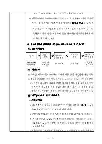- 375 %uac19%uc774%ud22c%uc790%uc720%uce58%uae30%uad00%uc744%uad00%ud560%ud558%ub294%uccad(%uc0ac%ubb34%uc18c%u00b7%ucd9c%uc7a5%uc18c)%uc73c%ub85c%uc815%ud568%ubc95%ubb34%ubd80%uc7a5%uad00%uc740 %ud22c%uc790%uc720%uce58%uae30%uad00%uc774 %uc0c1%uae30 %uc2e0%uace0 %ubc0f %ud604%ud669%ud1b5%ubcf4%uc758%ubb34%ub97c %uc774%ud589%ud558%uc9c0 %uc544%ub2c8%ud55c%uacbd%uc6b0%uc5d0%ub294 %ud574%ub2f9 %ud22c%uc790 %uc720%uce58%uae30%uad00%uc758 %uc9c0%uc815%uc744 %ucde8%uc18c%ud560 %uc218 %uc788%uc74c -%ud574%ub2f9 %ucd9c%uc785%uad6d%u318d%uc678%uad6d%uc778%uccad%uc7a5 %ub4f1%uc740 %ud22c%uc790%uc720%uce58%uae30%uad00%uc774 %uae30%ud55c %ub0b4%uc5d0 %uc2e0%uace0 %ubc0f %ud604%ud669%ud1b5%ubcf4 %uc758%ubb34 %ub4f1%uc744 %uc774%ud589%ud558%uc9c0 %uc54a%ub294 %uacbd%uc6b0%uc5d0%ub294 %ubc95%ubb34%ubd80%uc7a5%uad00%uc5d0%uac8c %uc720%uce58%uae30%uad00 %uc9c0%uc815 %ucde8%uc18c %uc694%uccad%uc0ac.%uacf5%uc775%uc0ac%uc5c5%ud22c%uc790 %uc678%uad6d%uc778%uc758 %uac70%uc8fc(F-2)%uccb4%ub958%uc790%uaca9%ubcc0%uacbd %ub4f1 %uad00%ub9ac%uae30%uc900(1).%uc5c5%ubb34%ucc98%ub9ac%uc808%ucc28%uc785 %uad6d%u21e8%uc0ac%uc804%uc2ec%uc0ac / %uc548%ub0b4%u21e8%uccb4%ub958%uc790%uaca9%ubcc0%uacbd%uc2e0%uccad%u21e8%uac70%uc8fc(F-2)%ubcc0%uacbd%u21e8%uc601%uc8fc(F-5)%ubcc0%uacbd%uc2e0%uccad%ub2e8%uae30%uccb4%ub958%uc790/%ub4f1%ub85d%uc678%uad6d%uc778%ud22c%uc790%ubc0f%uccb4%ub958%uc0c1%ub2f4%ud22c%uc790(%ucd9c%uc790)%uc694%uac74%uc2ec%uc0ac5%ub144%uac04%ud22c%uc790%uc720%uc9c0(2).%uc0ac%uc804%uc2ec%uc0ac%uc720%ud6a8%ud55c %uccb4%ub958%uc790%uaca9%uc744 %uc18c%uc9c0%ud558%uace0 %uad6d%ub0b4%uc5d0 %uccb4%ub958 %uc911%uc778 %uc678%uad6d%uc778%uc774 %uc2e0%uccad %uac00%ub2a5%ubc95%ubb34%ubd80 %uae00%ub85c%ubc8c%uc778%uc7ac%ube44%uc790%uc13c%ud130,%uc81c%uc8fc%uccad(%uc81c%uc8fc%ub3c4 %uccb4%ub958%uc790%uc5d0 %ud55c%ud568)%uc5d0 %uc0ac%uc804%uc2ec%uc0ac %uc2e0%uccad-%uc0ac%uc804%uc2ec%uc0ac %ud6c4 6%uac1c%uc6d4 %uc774%ub0b4%uc5d0 %uacf5%uc775%ud22c%uc790 %uc804%ub2f4%uc740%ud589%uc744 %ud1b5%ud574 %ud22c%uc790%uae08%uc744 %ubc18%uc785%ud558%uc5ec%uc57c %ud558%uba70,6%uac1c%uc6d4 %uc774%ud6c4 %ubc18%uc785%ud558%ub824%ub294 %uacbd%uc6b0 %uc0ac%uc804%uc2ec%uc0ac %uc7ac%uc2e0%uccad %ud544%uc694-%ud544%uc694%uc11c%ub958 :%uc0ac%uc804%uc2ec%uc0ac %uc2e0%uccad%uc11c,%uc2e0%ubd84%uc99d(%uc5ec%uad8c %ub4f1),%ud22c%uc790%uae08 %ubc18%uc785%uacc4%ud68d%uc11c %ub4f1(3).%uac70%uc8fc(F-2)%uc790%uaca9 %ubcc0%uacbd %uc2e0%uccad%ub300%uc0c1 %uc2e0%uccad%ub300%uc0c1%uc790-%ubc95%ubb34%ubd80%uc7a5%uad00%uc774 %uacf5%uc775%uc0ac%uc5c5 %ud22c%uc790%uc774%ubbfc%uc73c%ub85c %uace0%uc2dc%ud55c %ub300%uc0c1%uc5d0 15%uc5b5 %uc6d0%uc774%uc0c1%uc744%ucd9c%uc790(%uc608%uce58)%ud55c %uc678%uad6d%uc778 %ubc0f %ubc95%uc778%uc758 %uc784%uc6d0,%uc8fc%uc8fc-%uacf5%uc775%uc0ac%uc5c5 %ud22c%uc790%uc774%ubbfc %uac70%uc8fc(F-2)%uc790%uaca9 %ud22c%uc790%uc790%uc758 %ubc30%uc6b0%uc790 %ubc0f %ubbf8%ud63c%uc790%ub140%u203b%ud22c%uc790%uc790%uac00 %uc601%uc8fc(F-5-21/23)%ucde8%ub4dd %ud6c4 %ud22c%uc790%ub97c %uc720%uc9c0%ud558%uace0 %uc788%ub294 %uacbd%uc6b0 %ub3d9%ubc18%uac00%uc871 %ucd08%uccad %uc2dc F-2-3%ub610%ub294 F-2-13%uc911 %ud0dd%ud558%uc5ec %uc2e0%uccad %uac00%ub2a5%ud558%ub098,%ud22c%uc790%uae08%uc744 %ud68c%uc218%ud55c %uacbd%uc6b0 F-2-3%uc2e0%uccad %ub300%uc0c1%uc784%uc5d0 %uc720%uc758-%ubc95%ubb34%ubd80%uc7a5%uad00%uc774 %uacf5%uc775%uc0ac%uc5c5 %ud22c%uc790%uc774%ubbfc%uc73c%ub85c %uace0%uc2dc%ud55c %ub300%uc0c1%uacfc %uad00%uad11%u00b7%ud734%uc591%uc2dc%uc124