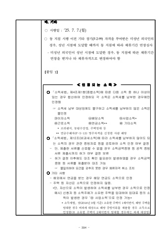 - 394 %ubc14.%uae30%ud0c0 %u25cb%uc2dc%ud589%uc77c :%u201925.7.7.(%uc6d4)%u25cb%ub3d9 %uc9c0%uce68 %uc2dc%ud589 %uc774%uc804 %uae30%ud0c0 %uc7a5%uae30(F-2-99)%uc790%uaca9%uc744 %ubd80%uc5ec%ubc1b%uc740 %ubbf8%uc131%ub144 %uc678%uad6d%uc778%uc758 %uacbd%uc6b0,%uc131%ub144 %uc2dc%uc810%uc5d0 %ub3c4%ub2ec%ud560 %ub54c%uae4c%uc9c0 %ub3d9 %uc9c0%uce68%uc5d0 %ub530%ub77c %uccb4%ub958%uae30%uac04 %uc5f0%uc7a5%uc2ec%uc0ac-%ubbf8%uc131%ub144 %uc678%uad6d%uc778%uc774 %uc131%ub144 %uc2dc%uc810%uc5d0 %ub3c4%ub2ec%ud55c %uacbd%uc6b0,%ub3d9 %uc9c0%uce68%uc5d0 %ub530%ub978 %uccb4%ub958%uae30%uac04 %uc5f0%uc7a5%uc744 %ubc1b%uac70%ub098 %ud0c0 %uccb4%ub958%uc790%uaca9%uc73c%ub85c %ubcc0%uacbd%ud558%uc5ec%uc57c %ud568%u3010%ubd99%uc784 1%u3011%u226a %uc778 %uc815 %ub418 %ub294 %uc18c %ub4dd %u226b%u25cb %u300c%uc18c%ub4dd%uc138%ubc95%u300d%uc81c4%uc870%uc81c1%ud56d(%uc885%ud569%uc18c%ub4dd)%uc5d0 %ub530%ub978 %ub2e4%uc74c %uc18c%ub4dd %uc911 %ud558%ub098 %uc774%uc0c1%uc774%uc788%ub294 %uacbd%uc6b0 %ud569%uc0b0%ud558%uc5ec %uc778%uc815%ud558%ub418 %uac01 %uc18c%ub4dd%uc740 %uc18c%ub4dd%uc138%ub97c %ub0a9%ubd80%ud55c %uacbd%uc6b0%uc5d0%ub9cc %uc778%uc815%ub428%u261e %uc18c%ub4dd%uc138 %ub0a9%ubd80 %ub300%uc0c1%uc784%uc5d0%ub3c4 %ubd88%uad6c%ud558%uace0 %uc18c%ub4dd%uc138%ub97c %ub0a9%ubd80%ud558%uc9c0 %uc54a%uc740 %uc18c%ub4dd%uc740 %ubd88%uc778%uc815%u326e%uc774%uc790%uc18c%ub4dd %u326f%ubc30%ub2f9%uc18c%ub4dd %u3270%uc0ac%uc5c5%uc18c%ub4dd* %u3271%uadfc%ub85c%uc18c%ub4dd %u3272%uc5f0%uae08%uc18c%ub4dd** %u3273 %uae30%ud0c0%uc18c%ub4dd * %ud504%ub9ac%ub79c%uc11c, %ub18d%ub9bc%uc218%uc0b0%uc5c5, %uc8fc%ud0dd%uc784%ub300 %ub4f1** %uc5f0%uae08%uc218%ud61c%uc790(F-5-13) %uc601%uc8fc%uc790%uaca9%uc744 %uc2e0%uccad%ud55c %uc0ac%ub78c %ud574%ub2f9%u25cb %u300c%uc18c%ub4dd%uc138%ubc95%u300d%uc81c12%uc870(%ube44%uacfc%uc138%uc18c%ub4dd)%uc5d0 %ub530%ub77c %uc18c%ub4dd%uc138%ub97c %ub0a9%ubd80%ud558%uc9c0 %uc54a%uc544%ub3c4 %ub418%ub294 %uc18c%ub4dd%uc758 %uacbd%uc6b0 %uad00%ub828 %uc99d%ube59%uc790%ub8cc %ub4f1%uc744 %uac80%ud1a0%ud558%uc5ec %uc18c%ub4dd %uc778%uc815 %uc5ec%ubd80 %uacb0%uc815- %ub2e8, %uc81c%ucd9c%ud55c %uc11c%ub958%ub97c %uc2e0%ub8b0%ud560 %uc218 %uc5c6%uc744 %uacbd%uc6b0 %uc18c%ub4dd%uae08%uc561%uc99d%uba85 %ub4f1 %uacf5%uc801 %uc99d%ube59 %uc11c%ub958 %uc81c%ucd9c%uc2dc%uae4c%uc9c0 %ud5c8%uac00 %uc5ec%ubd80 %uacb0%uc815 %ubcf4%ub958- %ud5c8%uac00 %uacb0%uc815 %uc774%ud6c4%uc5d0%ub3c4 %ub300%uc870 %ud655%uc778 %ud544%uc694%uc131%uc774 %ubc1c%uc0dd%ud558%uc600%uc744 %uacbd%uc6b0 %uc18c%ub4dd%uae08%uc561%uc99d%uba85 %ub4f1 %uc11c%ub958%ub97c %uc81c%ucd9c%ubc1b%uc544 %ub300%uc870 %uac00%ub2a5%u261e %ubd88%uc77c%uce58%ud558%uc5ec %uc694%uac74%uc744 %uac16%ucd94%uc9c0 %ubabb%ud55c %uacbd%uc6b0 %uccb4%ub958%uc790%uaca9 %ucde8%uc18c %uc870%uce58 %u25cb %uae30%ud0c0 %uc0ac%ud56d- %ud574%uc678%uc5d0%uc11c %uc5f0%uae08%uc744 %ubc1b%ub294 %uacbd%uc6b0 %ud574%ub2f9 %uc5f0%uae08%ub3c4 %uc18c%ub4dd%uc73c%ub85c %uc778%uc815 - %uc8fc%ud0dd %ub4f1 %uc790%uc0b0%uc740 %uc18c%ub4dd%uc73c%ub85c %uc778%uc815%ud558%uc9c0 %uc54a%uc74c. %u2022%ub2e8, %uc790%uc0b0%uc73c%ub85c %uc18c%ub4dd%uc774 %ubc1c%uc0dd%ud558%uc5ec %uc18c%ub4dd%uc138%ub97c %ub0a9%ubd80%ud55c %uacbd%uc6b0 %uc18c%ub4dd%uc73c%ub85c %uc778%uc815%uc608%uc2dc) %uc2e0%uccad%uc790 %ub4f1 %uc18c%ub4dd%uc8fc%uccb4%uac00 %uc18c%uc720%ud55c %uc8fc%ud0dd%uc744 %uc784%ub300%ud558%uc5ec %uc784%ub300%ub8cc %ub4f1%uc758 %uc18c%ub4dd%uc774 %ubc1c%uc0dd%ud55c %uacbd%uc6b0 %u2018%u3270 %uc0ac%uc5c5%uc18c%ub4dd%u2019%uc73c%ub85c %uc778%uc815 %uac00%ub2a5** %uc18c%ub4dd%uc138%ubc95%u300d%uc0c1(2018%ub144 9%uc6d4 %uae30%uc900) %uc18c%uc720%ud55c %uc8fc%ud0dd%uc774 1%ucc44%uc774%uba74%uc11c, %ud574%ub2f9 %uc8fc%ud0dd%uc744 %uc784%ub300%ud55c %uacbd%uc6b0 %ube44%uacfc%uc138 %ub300%uc0c1%uc73c%ub85c %ud574%ub2f9 %uc99d%ube59%uc11c%ub958%ub97c %uc81c%ucd9c%ud560 %uacbd%uc6b0 %uc18c%ub4dd%uc73c%ub85c %uc778%uc815%ud568(%u203b %uc18c%uc720%ud55c %uc8fc%ud0dd%uc774 2%ucc44%uc774%uba74%uc11c %uc784%ub300%ud560 %uacbd%uc6b0%uc5d0%ub294 %uacfc%uc138 %ub300%uc0c1%uc784)