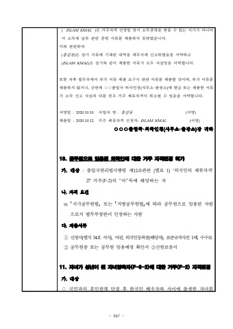 - 397 (ISLAMKMAL)%uc740 %uac70%uc8fc%uc790%uaca9 %uc2e0%uccad%uc77c %ub2f9%uc2dc %uc18c%ub4dd%uc99d%uba85%uc744 %ubc1b%uc744 %uc218 %uc788%ub294 %uc2dc%uae30%uac00 %uc544%ub2c8%uc5b4%uc11c %uc18c%ub4dd%uc138 %ub0a9%ubd80 %uad00%ub828 %uc99d%ube59 %uc11c%ub958%ub97c %uc81c%ucd9c%ud558%uc9c0 %ubabb%ud558%uc600%uc2b5%ub2c8%ub2e4.%uc774%uc640 %uad00%ub828%ud558%uc5ec (%ud64d%uae38%ub3d9)%uc740 %uc0c1%uae30 %uc11c%ub958%uc5d0 %uae30%uc7ac%ub41c %ub0b4%uc5ed%uc744 %uc138%ubb34%uc11c%uc5d0 %uc2e0%uace0%ud558%uc600%uc74c%uc744 %uc11c%uc57d%ud558%uace0(ISLAMKMAL)%uc740 %uc0c1%uae30%uc640 %uac19%uc774 %uc81c%ucd9c%ud55c %uc11c%ub958%uac00 %ubaa8%ub450 %uc0ac%uc2e4%uc784%uc744 %uc11c%uc57d%ud569%ub2c8%ub2e4.%ub610%ud55c %ucc28%ud6c4 %ubc95%ubb34%ubd80%uc5d0%uc11c %ucd94%uac00 %uc11c%ub958 %uc81c%ucd9c %uc694%uad6c%uc2dc %uad00%ub828 %uc11c%ub958%ub97c %uc81c%ucd9c%ud560 %uac83%uc774%uba70,%ucd94%uac00 %uc11c%ub958%ub97c %uc81c%ucd9c%ud558%uc9c0 %uc54a%uac70%ub098,%uae08%ubc88%uc5d0 %u25cb%u25cb%ucd9c%uc785%uad6d%u00b7%uc678%uad6d%uc778%uccad(%uc0ac%ubb34%uc18c%u00b7%ucd9c%uc7a5%uc18c)%uc5d0 %ubc1c%uae09 %ub610%ub294 %uc81c%ucd9c%ud55c %uc11c%ub958%uac00 %uc18c%ub4dd %uc2e0%uace0 %uc0ac%uc2e4%uacfc %ub2e4%ub97c %uacbd%uc6b0 %uac70%uc8fc %uccb4%ub958%uc790%uaca9%uc774 %ucde8%uc18c%ub420 %uc218 %uc788%uc74c%uc744 %uc11c%uc57d%ud569%ub2c8%ub2e4.%uc11c%uba85%uc77c :2020.10.10.%uc0ac%uc5c5%uc790 %uba85 :%ud64d%uae38%ub3d9 (%uc11c%uba85)%uc81c%ucd9c%uc77c :2020.10.12.%uac70%uc8fc %uccb4%ub958%uc790%uaca9 %uc2e0%uccad%uc790:ISLAMKMAL(%uc11c%uba85)%u25cb%u25cb%u25cb%ucd9c%uc785%uad6d%u00b7%uc678%uad6d%uc778%uccad(%uc0ac%ubb34%uc18c%u00b7%ucd9c%uc7a5%uc18c)%uc7a5 %uadc0%ud55810. %uacf5%ubb34%uc6d0%uc73c%ub85c %uc784%uc6a9%ub41c %uc678%uad6d%uc778%uc5d0 %ub300%ud55c %uac70%uc8fc %uc790%uaca9%ubcc0%uacbd %ud5c8%uac00%uac00%ub300%uc0c1%ucd9c%uc785%uad6d%uad00%ub9ac%ubc95%uc2dc%ud589%ub839 %uc81c%uc870%uad00%ub828 %ubcc4%ud45c 1)%uc678%uad6d%uc778%uc758 %uccb4%ub958%uc790%uaca927%uac70%uc8fc(F-2)%uc758 %u201c%uc544%u201d%ubaa9%uc5d0 %ud574%ub2f9%ud558%ub294 %uc790%ub098.%uc790%uaca9 %uc694%uac74%uff62%uad6d%uac00%uacf5%ubb34%uc6d0%ubc95%uff63%ub610%ub294 %uff62%uc9c0%ubc29%uacf5%ubb34%uc6d0%ubc95%uff63%uc5d0 %ub530%ub77c %uacf5%ubb34%uc6d0%uc73c%ub85c %uc784%uc6a9%ub41c %uc0ac%ub78c%uc73c%ub85c%uc11c %ubc95%ubb34%ubd80%uc7a5%uad00%uc774 %uc778%uc815%ud558%ub294 %uc0ac%ub78c%ub2e4.%uc81c%ucd9c%uc11c%ub958%u2460%uc2e0%uccad%uc11c(%ubcc4%uc9c0 34%ud638 %uc11c%uc2dd),%uc5ec%uad8c,%uc678%uad6d%uc778%ub4f1%ub85d%uc99d(%ud574%ub2f9%uc790),%ud45c%uc900%uaddc%uaca9%uc0ac%uc9c4 1%ub9e4,%uc218%uc218%ub8cc%u2461%uacf5%ubb34%uc6d0%uc99d %ub610%ub294 %uacf5%ubb34%uc6d0 %uc784%uc6a9%uc608%uc815 %ud655%uc778%uc11c %u2462%uc2e0%uc6d0%ubcf4%uc99d%uc11c11. %uc790%ub140%uac00 %uc131%ub144%uc774 %ub41c %uc790%ub140%uc591%uc721%uc790(F-6-2)%uc5d0 %ub300%ud55c %uac70%uc8fc(F-2) %uc790%uaca9%ubcc0%uacbd%uac00.%ub300%uc0c1 %u25cb%uad6d%ubbfc%uacfc%uc758 %ud63c%uc778%uad00%uacc4 %ub2e8%uc808 %ud6c4 %ud55c%uad6d%uc778 %ubc30%uc6b0%uc790%uc640 %uc0ac%uc774%uc5d0 %ucd9c%uc0dd%ud55c %uc790%ub140%ub97c