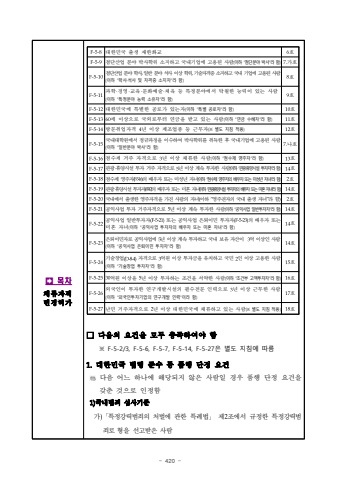 - 420 %uf000%uccb4%ub958%uc790%uaca9%ubcc0%uacbd%ud5c8%uac00%u25a1%ub2e4%uc74c%uc758 %uc694%uac74%uc744 %ubaa8%ub450 %ucda9%uc871%ud558%uc5ec%uc57c %ud568%u203b F-5-2/3, F-5-6, F-5-7, F-5-14, F-5-27%uc740 %ubcc4%ub3c4 %uc9c0%uce68%uc5d0 %ub530%ub9841.%ub300%ud55c%ubbfc%uad6d %ubc95%ub839 %uc900%uc218 %ub4f1 %ud488%ud589 %ub2e8%uc815 %uc694%uac74 %ub2e4%uc74c %uc5b4%ub290 %ud558%ub098%uc5d0 %ud574%ub2f9%ub418%uc9c0 %uc54a%uc740 %uc0ac%ub78c%uc77c %uacbd%uc6b0 %ud488%ud589 %ub2e8%uc815 %uc694%uac74%uc744 %uac16%ucd98%uac83%uc73c%ub85c %uc778%uc815%ud5681)%uad6d%ub0b4%ubc94%uc8c4 %uc2ec%uc0ac%uae30%uc900%uac00)%u300c%ud2b9%uc815%uac15%ub825%ubc94%uc8c4%uc758 %ucc98%ubc8c%uc5d0%uad00%ud55c %ud2b9%ub840%ubc95%u300d%uc81c2%uc870%uc5d0%uc11c %uaddc%uc815%ud55c %ud2b9%uc815%uac15%ub825%ubc94%uc8c4%ub85c%ud615%uc744 %uc120%uace0%ubc1b%uc740 %uc0ac%ub78cF-5-8%ub300%ud55c%ubbfc%uad6d %ucd9c%uc0dd %uc7ac%ud55c%ud654%uad506%ud638F-5-9%ucca8%ub2e8%uc0b0%uc5c5 %ubd84%uc57c %ubc15%uc0ac%ud559%uc704 %uc18c%uc9c0%ud558%uace0 %uad6d%ub0b4%uae30%uc5c5%uc5d0 %uace0%uc6a9%ub41c %uc0ac%ub78c(%uc774%ud558 %u201c%ucca8%ub2e8%ubd84%uc57c %ubc15%uc0ac%u201d%ub77c %ud568)7.%uac00%ud638F-5-10%ucca8%ub2e8%uc0b0%uc5c5 %ubd84%uc57c %ud559%uc0ac,%uc77c%ubc18 %ubd84%uc57c %uc11d%uc0ac %uc774%uc0c1 %ud559%uc704,%uae30%uc220%uc790%uaca9%uc99d %uc18c%uc9c0%ud558%uace0 %uad6d%ub0b4 %uae30%uc5c5%uc5d0 %uace0%uc6a9%ub41c %uc0ac%ub78c(%uc774%ud558 %u201c%ud559%uc0ac%u00b7%uc11d%uc0ac %ubc0f %uc790%uaca9%uc99d %uc18c%uc9c0%uc790%u201d%ub77c %ud568)8%ud638F-5-11%uacfc%ud559%u00b7%uacbd%uc601%u00b7%uad50%uc721%u00b7%ubb38%ud654%uc608%uc220%u00b7%uccb4%uc721 %ub4f1 %ud2b9%uc815%ubd84%uc57c%uc5d0%uc11c %ud0c1%uc6d4%ud55c %ub2a5%ub825%uc774 %uc788%ub294 %uc0ac%ub78c(%uc774%ud558 %u201c%ud2b9%uc815%ubd84%uc57c %ub2a5%ub825 %uc18c%uc720%uc790%u201d%ub77c %ud568)9%ud638F-5-12%ub300%ud55c%ubbfc%uad6d%uc5d0 %ud2b9%ubcc4%ud55c %uacf5%ub85c%uac00 %uc788%ub294%uc790(%uc774%ud558 %u201c%ud2b9%ubcc4 %uacf5%ub85c%uc790%u201d%ub77c %ud568)10%ud638F-5-1360%uc138 %uc774%uc0c1%uc73c%ub85c %uad6d%uc678%ub85c%ubd80%ud130 %uc5f0%uae08%uc744 %ubc1b%uace0 %uc788%ub294 %uc0ac%ub78c(%uc774%ud558 %u201c%uc5f0%uae08 %uc218%ud61c%uc790%u201d%ub77c %ud568)11%ud638F-5-14%ubc29%ubb38%ucde8%uc5c5%uc790%uaca9 4%ub144 %uc774%uc0c1 %uc81c%uc870%uc5c5%uc885 %ub4f1 %uadfc%ubb34%uc790(%u203b %ubcc4%ub3c4 %uc9c0%uce68 %uc801%uc6a9)12%ud638F-5-15%uad6d%ub0b4%ub300%ud559%uc6d0%uc5d0%uc11c %uc815%uaddc%uacfc%uc815%uc744 %uc774%uc218%ud558%uc5ec %ubc15%uc0ac%ud559%uc704%ub97c %ucde8%ub4dd%ud55c %ud6c4 %uad6d%ub0b4%uae30%uc5c5%uc5d0 %uace0%uc6a9%ub41c %uc0ac%ub78c(%uc774%ud558 %u201c%uc77c%ubc18%ubd84%uc57c %ubc15%uc0ac%u201d%ub77c %ud568)7.%ub098%ud638F-5-16%uc810%uc218%uc81c %uac70%uc8fc %uc790%uaca9%uc73c%ub85c 3%ub144 %uc774%uc0c1 %uccb4%ub958%ud55c %uc0ac%ub78c(%uc774%ud558 %u201c%uc810%uc218%uc81c %uc601%uc8fc%uc790%u201d%ub77c %ud568)13%ud638F-5-17%uad00%uad11%u2027%ud734%uc591%uc2dc%uc124 %ud22c%uc790 %uac70%uc8fc %uc790%uaca9%uc73c%ub85c 5%ub144 %uc774%uc0c1 %uacc4%uc18d %ud22c%uc790%ud55c %uc0ac%ub78c(%uc774%ud558 %u201c%uad00%uad11%u2027%ud734%uc591%uc2dc%uc124 %ud22c%uc790%uc790%u201d%ub77c %ud568)14%ud638F-5-18%uc810%uc218%uc81c %uc601%uc8fc%uc790(F-5-16)%uc758 %ubc30%uc6b0%uc790 %ub610%ub294 %ubbf8%uc131%ub144 %uc790%ub140(%uc774%ud558 %u201c%uc810%uc218%uc81c %uc601%uc8fc%uc790%uc758 %ubc30%uc6b0%uc790 %ub610%ub294 %ubbf8%uc131%ub144 %uc790%ub140%u201d%ub77c %ud568)2%ud638F-5-19%uad00%uad11%u2027%ud734%uc591%uc2dc%uc124 %ud22c%uc790%uc790(F-5-17)%uc758 %ubc30%uc6b0%uc790 %ub610%ub294 %ubbf8%ud63c %uc790%ub140(%uc774%ud558 %u201c%uad00%uad11%ud734%uc591%uc2dc%uc124 %ud22c%uc790%uc790%uc758 %ubc30%uc6b0%uc790 %ub610%ub294 %ubbf8%ud63c %uc790%ub140%u201d%ub77c %ud568)14%ud638F-5-20%uad6d%ub0b4%uc5d0%uc11c %ucd9c%uc0dd%ud55c %uc601%uc8fc%uc790%uaca9%uc744 %uac00%uc9c4 %uc0ac%ub78c%uc758 %uc790%ub140(%uc774%ud558 %u201c%uc601%uc8fc%uad8c%uc790%uc758 %uad6d%ub0b4 %ucd9c%uc0dd %uc790%ub140%u201d%ub77c %ud568)2%ud638F-5-21%uacf5%uc775%uc0ac%uc5c5 %ud22c%uc790 %uac70%uc8fc%uc790%uaca9%uc73c%ub85c 5%ub144 %uc774%uc0c1 %uacc4%uc18d %ud22c%uc790%ud55c %uc0ac%ub78c(%uc774%ud558 %u201c%uacf5%uc775%uc0ac%uc5c5 %uc77c%ubc18%ud22c%uc790%uc790%u201d%ub77c %ud568)14%ud638F-5-22%uacf5%uc775%uc0ac%uc5c5 %uc77c%ubc18%ud22c%uc790%uc790(F-5-21)%ub610%ub294 %uacf5%uc775%uc0ac%uc5c5 %uc740%ud1f4%uc774%ubbfc %ud22c%uc790%uc790(F-5-23)%uc758 %ubc30%uc6b0%uc790 %ub610%ub294 %ubbf8%ud63c %uc790%ub140(%uc774%ud558 %u201c%uacf5%uc775%uc0ac%uc5c5 %ud22c%uc790%uc790%uc758 %ubc30%uc6b0%uc790 %ub610%ub294 %ubbf8%ud63c %uc790%ub140%u201d%ub77c %ud568)14%ud638F-5-23%uc740%ud1f4%uc774%ubbfc%uc790%ub85c %uacf5%uc775%uc0ac%uc5c5%uc5d0 5%ub144 %uc774%uc0c1 %uacc4%uc18d %ud22c%uc790%ud558%uace0 %uad6d%ub0b4 %ubcf4%uc720 %uc790%uc0b0%uc774 3%uc5b5 %uc774%uc0c1%uc778 %uc0ac%ub78c(%uc774%ud558 %u201c%uacf5%uc775%uc0ac%uc5c5 %uc740%ud1f4%uc774%ubbfc %ud22c%uc790%uc790%u201d%ub77c %ud568)%ud638F-5-24%uae30%uc220%ucc3d%uc5c5(D-8-4)%uc790%uaca9%uc73c%ub85c 3%uc5b5%uc6d0 %uc774%uc0c1 %ud22c%uc790%uae08%uc744 %uc720%uce58%ud558%uace0 %uad6d%ubbfc 2%uc778 %uc774%uc0c1 %uace0%uc6a9%ud55c %uc0ac%ub78c(%uc774%ud558 %u201c%uae30%uc220%ucc3d%uc5c5 %ud22c%uc790%uc790%u201d%ub77c %ud568)15%ud638F-5-2530%uc5b5%uc6d0 %uc774%uc0c1%uc744 5%ub144 %uc774%uc0c1 %ud22c%uc790%ud558%ub294 %uc870%uac74%uc744 %uc11c%uc57d%ud55c %uc0ac%ub78c(%uc774%ud558 %u201c%uc870%uac74%ubd80 %uace0%uc561%ud22c%uc790%uc790%u201d%ub77c %ud568)16%ud638F-5-26%uc678%uad6d%uc778%uc774 %ud22c%uc790%ud55c %uc5f0%uad6c%uac1c%ubc1c%uc2dc%uc124%uc758 %ud544%uc218%uc804%ubb38 %uc778%ub825%uc73c%ub85c 3%ub144 %uc774%uc0c1 %uadfc%ubb34%ud55c %uc0ac%ub78c(%uc774%ud558 %u201c%uc678%uad6d%uc778%ud22c%uc790%uae30%uc5c5%uc758 %uc5f0%uad6c%uac1c%ubc1c %uc778%ub825%u201d%uc774%ub77c %ud568)17%ud638F-5-27%ub09c%ubbfc %uac70%uc8fc%uc790%uaca9%uc73c%ub85c 2%ub144 %uc774%uc0c1 %ub300%ud55c%ubbfc%uad6d%uc5d0 %uccb4%ub958%ud558%uace0 %uc788%ub294 %uc0ac%ub78c(%u203b %ub