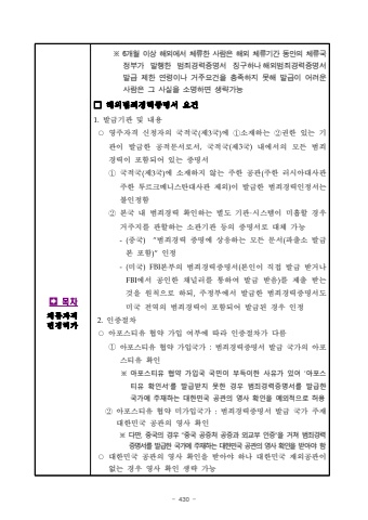- 430 %uf000%uccb4%ub958%uc790%uaca9%ubcc0%uacbd%ud5c8%uac00%u203b6%uac1c%uc6d4 %uc774%uc0c1 %ud574%uc678%uc5d0%uc11c %uccb4%ub958%ud55c %uc0ac%ub78c%uc740 %ud574%uc678 %uccb4%ub958%uae30%uac04 %ub3d9%uc548%uc758 %uccb4%ub958%uad6d%uc815%ubd80%uac00 %ubc1c%ud589%ud55c%ubc94%uc8c4%uacbd%ub825%uc99d%uba85%uc11c %uc9d5%uad6c%ud558%ub098%ud574%uc678%ubc94%uc8c4%uacbd%ub825%uc99d%uba85%uc11c %ubc1c%uae09 %uc81c%ud55c %uc5f0%ub839%uc774%ub098 %uac70%uc8fc%uc694%uac74%uc744 %ucda9%uc871%ud558%uc9c0 %ubabb%ud574 %ubc1c%uae09%uc774 %uc5b4%ub824%uc6b4 %uc0ac%ub78c%uc740 %uadf8 %uc0ac%uc2e4%uc744 %uc18c%uba85%ud558%uba74 %uc0dd%ub7b5%uac00%ub2a5%u25a1%ud574%uc678%ubc94%uc8c4%uacbd%ub825%uc99d%uba85%uc11c %uc694%uac741.%ubc1c%uae09%uae30%uad00 %ubc0f %ub0b4%uc6a9 %u25cb%uc601%uc8fc%uc790%uaca9 %uc2e0%uccad%uc790%uc758 %uad6d%uc801%uad6d(%uc81c3%uad6d)%uc5d0 %u2460%uc18c%uc7ac%ud558%ub294 %u2461%uad8c%ud55c %uc788%ub294 %uae30%uad00%uc774 %ubc1c%uae09%ud55c %uacf5%uc801%ubb38%uc11c%ub85c%uc11c,%uad6d%uc801%uad6d(%uc81c3%uad6d)%ub0b4%uc5d0%uc11c%uc758 %ubaa8%ub4e0 %ubc94%uc8c4%uacbd%ub825%uc774 %ud3ec%ud568%ub418%uc5b4 %uc788%ub294 %uc99d%uba85%uc11c%u2460%uad6d%uc801%uad6d(%uc81c3%uad6d)%uc5d0 %uc18c%uc7ac%ud558%uc9c0 %uc54a%ub294 %uc8fc%ud55c %uacf5%uad00(%uc8fc%ud55c %ub7ec%uc2dc%uc544%ub300%uc0ac%uad00 %uc8fc%ud55c %ud22c%ub974%ud06c%uba54%ub2c8%uc2a4%ud0c4%ub300%uc0ac%uad00%uc81c%uc678)%uc774 %ubc1c%uae09%ud55c %ubc94%uc8c4%uacbd%ub825%uc778%uc815%uc11c%ub294%ubd88%uc778%uc815%ud568%u2461%ubcf8%uad6d %ub0b4 %ubc94%uc8c4%uacbd%ub825 %ud655%uc778%ud558%ub294 %ubcc4%ub3c4 %uae30%uad00%u00b7%uc2dc%uc2a4%ud15c%uc774 %ubbf8%ud761%ud560 %uacbd%uc6b0%uac70%uc8fc%uc9c0%ub97c %uad00%ud560%ud558%ub294 %uc18c%uad00%uae30%uad00 %ub4f1%uc758 %uc99d%uba85%uc11c%ub85c %ub300%uccb4 %uac00%ub2a5-(%uc911%uad6d)%u201c%ubc94%uc8c4%uacbd%ub825 %uc99d%uba85%uc5d0 %uc0c1%uc751%ud558%ub294 %ubaa8%ub4e0 %ubb38%uc11c(%ud30c%ucd9c%uc18c %ubc1c%uae09%ubcf8 %ud3ec%ud568)%u201d%uc778%uc815%ubbf8%uad6dFBI%ubcf8%ubd80%uc758 %ubc94%uc8c4%uacbd%ub825%uc99d%uba85%uc11c%ubcf8%uc778%uc774 %uc9c1%uc811 %ubc1c%uae09 %ubc1b%uac70%ub098 FBI%uc5d0%uc11c %uacf5%uc778%ud55c %ucc44%ub110%ub7ec%ub97c %ud1b5%ud558%uc5ec %ubc1c%uae09 %ubc1b%uc74c)%ub97c %uc81c%ucd9c %ubc1b%ub294 %uac83%uc744 %uc6d0%uce59%uc73c%ub85c %ud558%ub418,%uc8fc%uc815%ubd80%uc5d0%uc11c %ubc1c%uae09%ud55c %ubc94%uc8c4%uacbd%ub825%uc99d%uba85%uc11c%ub3c4 %ubbf8%uad6d %uc804%uc5ed%uc758 %ubc94%uc8c4%uacbd%ub825%uc774 %ud3ec%ud568%ub418%uc5b4 %ubc1c%uae09%ub41c %uacbd%uc6b0 %uc778%uc815%uc778%uc99d%uc808%ucc28%u25cb%uc544%ud3ec%uc2a4%ud2f0%uc720 %ud611%uc57d %uac00%uc785 %uc5ec%ubd80%uc5d0 %ub530%ub77c %uc778%uc99d%uc808%ucc28%uac00 %ub2e4%ub984%u2460%uc544%ud3ec%uc2a4%ud2f0%uc720 %ud611%uc57d %uac00%uc785%uad6d%uac00 :%ubc94%uc8c4%uacbd%ub825%uc99d%uba85%uc11c %ubc1c%uae09 %uad6d%uac00%uc758 %uc544%ud3ec%uc2a4%ud2f0%uc720 %ud655%uc778%u203b %uc544%ud3ec%uc2a4%ud2f0%uc720 %ud611%uc57d %uac00%uc785%uad6d %uad6d%ubbfc%uc774 %ubd80%ub4dd%uc774%ud55c %uc0ac%uc720%uac00 %uc788%uc5b4 %u2018%uc544%ud3ec%uc2a4%ud2f0%uc720 %ud655%uc778%uc11c%u2019%ub97c %ubc1c%uae09%ubc1b%uc9c0 %ubabb%ud55c %uacbd%uc6b0 %ubc94%uc8c4%uacbd%ub825%uc99d%uba85%uc11c%ub97c %ubc1c%uae09%ud55c %uad6d%uac00%uc5d0 %uc8fc%uc7ac%ud558%ub294 %ub300%ud55c%ubbfc%uad6d %uacf5%uad00%uc758 %uc601%uc0ac %ud655%uc778%uc744 %uc608%uc678%uc801%uc73c%ub85c %ud5c8%uc6a9%u2461%uc544%ud3ec%uc2a4%ud2f0%uc720 %ud611%uc57d %ubbf8%uac00%uc785%uad6d%uac00 :%ubc94%uc8c4%uacbd%ub825%uc99d%uba85%uc11c %ubc1c%uae09 %uad6d%uac00 %uc8fc%uc7ac%ub300%ud55c%ubbfc%uad6d %uacf5%uad00%uc758 %uc601%uc0ac %ud655%uc778 %u203b %ub2e4%ub9cc, %uc911%uad6d%uc758 %uacbd%uc6b0 %u201c%uc911%uad6d %uacf5%uc99d%ucc98 %uacf5%uc99d%uacfc %uc678%uad50%ubd80 %uc778%uc99d%u201d%uc744 %uac70%uccd0 %ubc94%uc8c4%uacbd%ub825%uc99d%uba85%uc11c%ub97c %ubc1c%uae09%ud55c %uad6d%uac00%uc5d0 %uc8fc%uc7ac%ud558%ub294 %ub300%ud55c%ubbfc%uad6d %uacf5%uad00%uc758 %uc601%uc0ac %ud655%uc778%uc744%ubc1b%uc544%uc57c %ud568%u25cb%ub300%ud55c%ubbfc%uad6d %uacf5%uad00%uc758 %uc601%uc0ac %ud655%uc778%uc744 %ubc1b%uc544%uc57c %ud558%ub098 %ub300%ud55c%ubbfc%uad6d %uc7ac%uc678%uacf5%uad00%uc774%uc5c6%ub294 %uacbd%uc6b0 %uc601%uc0ac %ud655%uc778 %uc0dd%ub7b5 %uac00%ub2a5