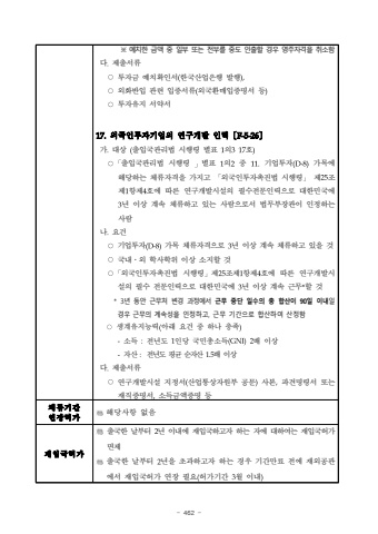 - 462 %u203b %uc608%uce58%ud55c %uae08%uc561 %uc911 %uc77c%ubd80 %ub610%ub294 %uc804%ubd80%ub97c %uc911%ub3c4 %uc778%ucd9c%ud560 %uacbd%uc6b0 %uc601%uc8fc%uc790%uaca9%uc744 %ucde8%uc18c%ud568%ub2e4.%uc81c%ucd9c%uc11c%ub958%u25cb%ud22c%uc790%uae08 %uc608%uce58%ud655%uc778%uc11c(%ud55c%uad6d%uc0b0%uc5c5%uc740%ud589 %ubc1c%ud589),%u25cb%uc678%ud654%ubc18%uc785 %uad00%ub828 %uc785%uc99d%uc11c%ub958(%uc678%uad6d%ud658%ub9e4%uc785%uc99d%uba85%uc11c %ub4f1)%u25cb%ud22c%uc790%uc720%uc9c0 %uc11c%uc57d%uc11c17.%uc678%uad6d%uc778%ud22c%uc790%uae30%uc5c5%uc758 %uc5f0%uad6c%uac1c%ubc1c %uc778%ub825%u3014F-5-26%u3015%uac00.%ub300%uc0c1 (%ucd9c%uc785%uad6d%uad00%ub9ac%ubc95 %uc2dc%ud589%ub839 %ubcc4%ud45c 1%uc758317%ud638)%u25cb%u300c%ucd9c%uc785%uad6d%uad00%ub9ac%ubc95 %uc2dc%ud589%ub839 %u300d%ubcc4%ud45c 1%uc7582%uc911 11.%uae30%uc5c5%ud22c%uc790(D-8)%uac00%ubaa9%uc5d0 %ud574%ub2f9%ud558%ub294 %uccb4%ub958%uc790%uaca9%uc744 %uac00%uc9c0%uace0 %u300c%uc678%uad6d%uc778%ud22c%uc790%ucd09%uc9c4%ubc95 %uc2dc%ud589%ub839%u300d%uc81c25%uc870%uc81c1%ud56d%uc81c4%ud638%uc5d0 %ub530%ub978 %uc5f0%uad6c%uac1c%ubc1c%uc2dc%uc124%uc758 %ud544%uc218%uc804%ubb38%uc778%ub825%uc73c%ub85c %ub300%ud55c%ubbfc%uad6d%uc5d0 3%ub144 %uc774%uc0c1 %uacc4%uc18d %uccb4%ub958%ud558%uace0 %uc788%ub294 %uc0ac%ub78c%uc73c%ub85c%uc11c %ubc95%ubb34%ubd80%uc7a5%uad00%uc774 %uc778%uc815%ud558%ub294 %uc0ac%ub78c%ub098.%uc694%uac74 %u25cb%uae30%uc5c5%ud22c%uc790(D-8)%uac00%ubaa9 %uccb4%ub958%uc790%uaca9%uc73c%ub85c 3%ub144 %uc774%uc0c1 %uacc4%uc18d %uccb4%ub958%ud558%uace0 %uc788%uc744 %uac83%u25cb%uad6d%ub0b4%u2024%uc678 %ud559%uc0ac%ud559%uc704 %uc774%uc0c1 %uc18c%uc9c0%ud560 %uac83%uc678%uad6d%uc778%ud22c%uc790%ucd09%uc9c4%ubc95 %uc2dc%ud589%ub839%uc81c%uc870%uc81c%ud56d%uc81c%ud638%uc5d0 %ub530%ub978 %uc5f0%uad6c%uac1c%ubc1c%uc2dc%uc124%uc758 %ud544%uc218 %uc804%ubb38%uc778%ub825%uc73c%ub85c %ub300%ud55c%ubbfc%uad6d%uc5d0 3%ub144 %uc774%uc0c1 %uacc4%uc18d %uadfc%ubb34*%ud560 %uac83* 3%ub144 %ub3d9%uc548 %uadfc%ubb34%ucc98 %ubcc0%uacbd %uacfc%uc815%uc5d0%uc11c %uadfc%ubb34 %uc911%ub2e8 %uc77c%uc218%uc758 %ucd1d %ud569%uc0b0%uc774 90%uc77c %uc774%ub0b4%uc77c %uacbd%uc6b0 %uadfc%ubb34%uc758%uacc4%uc18d%uc131%uc744 %uc778%uc815%ud558%uace0, %uadfc%ubb34 %uae30%uac04%uc73c%ub85c %ud569%uc0b0%ud558%uc5ec %uc0b0%uc815%ud568%u25cb%uc0dd%uacc4%uc720%uc9c0%ub2a5%ub825(%uc544%ub798 %uc694%uac74 %uc911 %ud558%ub098 %ucda9%uc871)-%uc18c%ub4dd :%uc804%ub144%ub3c4 1%uc778%ub2f9 %uad6d%ubbfc%ucd1d%uc18c%ub4dd(GNI)2%ubc30 %uc774%uc0c1-%uc790%uc0b0:%uc804%ub144%ub3c4 %ud3c9%uade0 %uc21c%uc790%uc0b01.5%ubc30 %uc774%uc0c1%ub2e4.%uc81c%ucd9c%uc11c%ub958%u25cb%uc5f0%uad6c%uac1c%ubc1c%uc2dc%uc124 %uc9c0%uc815%uc11c(%uc0b0%uc5c5%ud1b5%uc0c1%uc790%uc6d0%ubd80 %uacf5%ubb38)%uc0ac%ubcf8,%ud30c%uacac%uba85%ub839%uc11c %ub610%ub294 %uc7ac%uc9c1%uc99d%uba85%uc11c,%uc18c%ub4dd%uae08%uc561%uc99d%uba85 %ub4f1%uccb4%ub958%uae30%uac04%uc5f0%uc7a5%ud5c8%uac00%ud574%ub2f9%uc0ac%ud56d %uc5c6%uc74c%uc7ac%uc785%uad6d%ud5c8%uac00%ucd9c%uad6d%ud55c %ub0a0%ubd80%ud130 2%ub144 %uc774%ub0b4%uc5d0 %uc7ac%uc785%uad6d%ud558%uace0%uc790 %ud558%ub294 %uc790%uc5d0 %ub300%ud558%uc5ec%ub294 %uc7ac%uc785%uad6d%ud5c8%uac00 %uba74%uc81c%ucd9c%uad6d%ud55c %ub0a0%ubd80%ud130 2%ub144%uc744 %ucd08%uacfc%ud558%uace0%uc790 %ud558%ub294 %uacbd%uc6b0 %uae30%uac04%ub9cc%ub8cc %uc804%uc5d0 %uc7ac%uc678%uacf5%uad00%uc5d0%uc11c %uc7ac%uc785%uad6d%ud5c8%uac00 %uc5f0%uc7a5 %ud544%uc694(%ud5c8%uac00%uae30%uac04 3%uc6d4 %uc774%ub0b4)