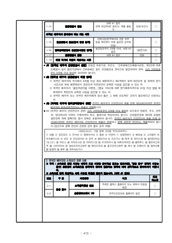 - 472 * #1 (%ud55c%uad6d%uc778 %ubc30%uc6b0%uc790 %uac74%uac15%uc9c4%ub2e8%uc11c %uad00%ub828)%ubcd1%uc6d0%uae09 %uc758%ub8cc%uae30%uad00, %ubcf4%uac74%uc18c, %uff62%uacf5%ubb34%uc6d0%ucc44%uc6a9%uc2e0%uccb4%uac80%uc0ac%uaddc%uc815%uff63 %uc81c3%uc870%uc5d0 %ub530%ub978 %uc2e0%uccb4%uac80%uc0ac %uc2e4%uc2dc %uac80%uc9c4%uae30%uad00%uc5d0%uc11c %uacf5%ubb34%uc6d0%ucc44%uc6a9 %uc751%uc2dc %uac74%uac15%uac80%uc9c4%ud45c %uc591%uc2dd%uc73c%ub85c %ubc1c%uae09%ub418%uc5b4%uc57c %ud558%uba70, %uc0ac%uc99d %uc2e0%uccad%uc77c%ub85c%ubd80%ud130 6%uac1c%uc6d4 %uc774%ub0b4 %ubc1c%uae09%ub41c %uac83%uc774%uc5b4%uc57c %ud569%ub2c8%ub2e4.* #2 (%ud55c%uad6d%uc778 %ubc30%uc6b0%uc790 %uac74%uac15%uc9c4%ub2e8%uc11c %uc81c%ucd9c %uba74%uc81c)%u2460 %uc678%uad6d%uc778 %ubc30%uc6b0%uc790%uc758 %uad6d%uac00%uc5d0%uc11c 6%uac1c%uc6d4 %uc774%uc0c1 %uacc4%uc18d %uccb4%ub958%ud558%uac70%ub098 %uc81c3%uad6d%uc5d0%uc11c %uc720%ud559%uff65%ud30c%uacac%uadfc%ubb34 %ub4f1 %ubaa9%uc801%uc758 %uc7a5%uae30%uc0ac%uc99d%uc73c%ub85c %uacc4%uc18d %uccb4%ub958%ud558%uba74%uc11c %ucd08%uccad%uc778%uacfc %ud53c%ucd08%uccad%uc778%uc774 %uad50%uc81c%ud55c %uc0ac%uc2e4%uc744 %uc785%uc99d%ud560 %uc218 %uc788%ub294 %uc790%u2461 %uc678%uad6d%uc778 %ubc30%uc6b0%uc790%uac00 %uff62%ucd9c%uc785%uad6d%uad00%ub9ac%ubc95 %uc2dc%ud589%ub839%uff63 [%ubcc4%ud45c 1%uc7582]%uc5d0 %ub530%ub978 %uc7a5%uae30%uccb4%ub958%uc790%uaca9%uc73c%ub85c 91%uc77c %uc774%uc0c1 %ud569%ubc95 %uccb4%ub958%ud558%uba74%uc11c %ucd08%uccad%uc778%uacfc %uad50%uc81c%ud55c %uc0ac%uc2e4%uc744 %uc785%uc99d%ud560 %uc218 %uc788%ub294 %uc790%u2462 %ud55c%uad6d%uc778 %ubc30%uc6b0%uc790 %ub610%ub294 %uc678%uad6d%uc778 %ubc30%uc6b0%uc790%uc5d0%uac8c %uc784%uc2e0%uff65%ucd9c%uc0b0 %uadf8 %ubc16%uc5d0 %uc778%ub3c4%uc801%uc778 %uace0%ub824%uac00 %ud544%uc694%ud558%ub2e4%uace0 %uc778%uc815%ub418%ub294 %uc790* #3 (%uc678%uad6d%uc778 %ubc30%uc6b0%uc790 %ubc94%uc8c4%uacbd%ub825%uc99d%uba85%uc11c %uad00%ub828)%ud55c%uad6d%uc778 %ubc30%uc6b0%uc790%uac00 %uac74%uac15%uc9c4%ub2e8%uc11c %uc81c%ucd9c %uba74%uc81c %ub300%uc0c1(#2)%uc774%ub77c%uba74 %uc678%uad6d%uc778 %ubc30%uc6b0%uc790%uc758 %ubc94%uc8c4%uacbd%ub825%uc99d%uba85%uc11c%ub294 %uc81c%ucd9c%uc774 %uba74%uc81c%ub429%ub2c8%ub2e4.*#4 (%uc678%uad6d%uc778 %ubc30%uc6b0%uc790 %uac74%uac15%uc9c4%ub2e8%uc11c %uad00%ub828) %uc0ac%uc99d %uc2e0%uccad%uc77c%ub85c%ubd80%ud130 6%uac1c%uc6d4 %uc774%ub0b4 %ubc1c%uae09%ub41c %uac83%uc73c%ub85c%uc11c %ubcd1%uc6d0%uba85, %uc8fc%uc18c, %uc5f0%ub77d%ucc98, %ub2f4%ub2f9%uc758%uc0ac%uc758 %uc11c%uba85%uc774 %uae30%uc7ac%ub418%uc5b4%uc57c %ud558%uace0, %ucef4%ud4e8%ud130%ub85c %uc791%uc131%ub418%uc5b4%uc57c %ud569%ub2c8%ub2e4. %uac74%uac15%uac80%uc9c4%ud56d%ubaa9 %uc608%uc2dc%uc5d0 %ud3ec%ud568%ub41c %uac80%uc9c4%ud56d%ubaa9 %uc678%uc5d0 %uacb0%ud575(TB) %uac80%uc0ac %ud56d%ubaa9%ub3c4 %ud3ec%ud568%ub418%uc5b4%uc57c %ud569%ub2c8%ub2e4. %ud55c%uad6d%uc778 %ubc30%uc6b0%uc790%uac00 %uac74%uac15%uc9c4%ub2e8%uc11c %uc81c%ucd9c %uba74%uc81c %ub300%uc0c1(#2)%uc774%ub77c%uba74 %uc678%uad6d%uc778 %ubc30%uc6b0%uc790%ub3c4 %uac74%uac15%uc9c4%ub2e8%uc11c %uc81c%ucd9c%uc774 %uba74%uc81c%ub418%ub098 %uacb0%ud575 %uad00%ub828%ud55c %uc9c4%ub2e8%uc11c%ub294 %uc81c%ucd9c%ud558%uc5ec%uc57c %ud569%ub2c8%ub2e4.(%uc784%uc2e0%uc73c%ub85c %uacb0%ud575 %uc9c4%ub2e8%uc774 %uace4%ub780%ud55c %uacbd%uc6b0 %ubcc4%ub3c4 %ubb38%uc758 %ubc14%ub78c)<2020.04.01. %uae30%uc900 %uacb0%ud575 %uace0%uc704%ud5d8 %uad6d%uac00(35%uac1c%uad6d)>%u2460 %ub124%ud314 %u2461 %ub3d9%ud2f0%ubaa8%ub974 %u2462 %ub7ec%uc2dc%uc544 %u2463 %ub9d0%ub808%uc774%uc2dc%uc544 %u2464 %ubabd%uace8 %u2465 %ubbf8%uc580%ub9c8 %u2466 %ubc29%uae00%ub77c%ub370%uc2dc %u2467 %ubca0%ud2b8%ub0a8 %u2468 %uc2a4%ub9ac%ub791%uce74 %u2469 %uc6b0%uc988%ubca0%ud0a4%uc2a4%ud0c4 %u246a %uc778%ub3c4 %u246b %uc778%ub3c4%ub124%uc2dc%uc544 %u246c %uc911%uad6d %u246d %uce84%ubcf4%ub514%uc544 %u246e %ud0a4%ub974%uae30%uc2a4 %u246f %ud0dc%uad6d %u2470 %ud30c%ud0a4%uc2a4%ud0c4 %u2471 %ud544%ub9ac%ud540(%uc774%uc0c1 %u201816.3.2.) %u2472 %ub77c%uc624%uc2a4 %u2473 %uce74%uc790%ud750%uc2a4%ud0c4 %u3251 %ud0c0%uc9c0%ud0a4%uc2a4%ud0c4 %u3252 %uc6b0%ud06c%ub77c%uc774%ub098 %u3253 %uc544%uc81c%ub974%ubc14%uc774%uc794 %u3254 %ubca8%ub77c%ub8e8%uc2a4 %u3255 %ubab0%ub3c4%ubc14%uacf5%ud654%uad6d %u3256 %ub098%uc774%uc9c0%ub9ac%uc544 %u3257 %ub0a8%uc544%ud504%ub9ac%uce74%uacf5%ud654%uad6d %u3258 %uc5d0%ud2f0%uc624%ud53c%uc544 %u3259 %ucf69%uace0%ubbfc%uc8fc%uacf5%ud654%uad6d %u325a %ucf00%ub0d0 %u325b %ubaa8%uc7a0%ube44%ud06c %u325c %uc9d0%ubc14%ube0c%uc6e8 %u325d %uc559%uace8%ub77c %u325e %ud398%ub8e8 %u325f %ud30c%ud478%uc544%ub274%uae30%ub2c8 1-14%uac74%uac15%uc9c4%ub2e8%uc11c %uc6d0%ubcf8%uc544%ub798 #1 %ucc38%uc870%uba74%uc81c %ub300%uc0c1%uc790(#2 %ucc38%uc870)%ub294 %uc81c%ucd9c %ubd88%ud544%uc694%ubcd1%uc6d0/%ubcf4%uac74%uc18c%u25a1%uc678%uad6d%uc778 %ubc30%uc6b0%uc790%uac00 %uc900%ube44%ud574%uc57c %ud558%ub294 %uae30%ubcf8 %uc11c%ub9581-15%uacb0%ud63c%uc99d%uba85%uc11c %uc6d0%ubcf8(%uc815%uc2dd %uba85%uce6d %ubcd1%uae30)%uc120%ud0dd%uc0ac%ud56d(%ubcf8%uad6d%uc5d0%uc11c%uc758 %uc911%ud63c %uc5ec%ubd80 %ub4f1%uc744 %ud655%uc778%ud558%uae30 %uc704%ud574 %ud544%uc694%ud55c %uacbd%uc6b0%uc5d0 %ud55c%ud568)%u25a11-16%ubc94%uc8c4%uacbd%ub825%uc99d%uba85%uc11c %uc6d0%ubcf8(%uc815%uc2dd%uba85%uce6d %ubcd1%uae30)%ubc1c%uae09%uc77c%ub85c%ubd80%ud130 3%uac1c%uc6d4 %uc774%ub0b4, %uc544%ub798 #3 %ucc38%uc870(%ubc1c%uae09%uae30%uad00)%u25a11-17%uac74%uac15%uc9c4%ub2e8%uc11c %uc6d0%ubcf8%uc544%ub798 #4 %ucc38%uc870%ubcd1%uc6d0%u25a11-18%ud574%ub2f9 %uad6d%uac00%uc5d0 %ud2b9%ubcc4%ud788 %uc801%uc6a9%ub418%ub294 %uc11c%ub958 %u25a12. %ud55c%uad6d%uc778 %ubc30%uc6b0%uc790%uc758 %uc18c%ub4dd%uc694%uac74 %uad00%ub828 %uc11c%ub958%u203b %uc8fc%uc758 : %uc18c%ub4dd%uc694%uac74 %uad00%ub828 %uc11c%ub958%ub294 %uc544%ub798%uc758 %ubaa8%ub4e0 %uc11c%ub958%ub97c %uc900%ube44%ud558%uc2e4 %ud544%uc694%ub294 %uc5c6%uc73c%uba70(%ub2e8, %u2018%uacf5%ud1b5 %ud544%uc218%u2019 %ud56d%ubaa9%uc758 %uc11c%ub958%ub294 %ud544%uc218) %