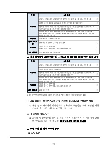 - 476 %uad6c %ubd84%uc11c%ub958 %ubaa9%ub85d%uae30%ubcf8%uc11c%ub958%uc2e0%uccad%uc11c, %uc5ec%uad8c%uc6a9 %uc0ac%uc9c4, %uc2e0%uccad%uc778(%uc678%uad6d%uc778 %ubc30%uc6b0%uc790) %uc5ec%uad8c %uc6d0%ubcf8 %ubc0f %uc0ac%ubcf8 1%ubd80, %uc2e0%uccad %uc218%uc218%ub8cc %u25a1%uc678%uad6d%uc778 %ubc30%uc6b0%uc790 %ucd08%uccad%uc7a5, %uc2e0%uc6d0%ubcf4%uc99d%uc11c, %uc678%uad6d%uc778 %ubc30%uc6b0%uc790%uc758 %uacb0%ud63c%ubc30%uacbd%uc9c4%uc220%uc11c%u25a1(%ud55c%uad6d%uc778 %ubc30%uc6b0%uc790) %uc5ec%uad8c %uc0ac%ubcf8 1%ubd80, %uae30%ubcf8%uc99d%uba85%uc11c(%uc0c1%uc138) 1%ubd80, %ud63c%uc778%uad00%uacc4%uc99d%uba85%uc11c(%uc0c1%uc138) 1%ubd80, %uac00%uc871%uad00%uacc4%uc99d%uba85%uc11c(%uc0c1%uc138) 1%ubd80, %uc8fc%ubbfc%ub4f1%ub85d%ub4f1%ubcf8(%ud55c%uae00%uc6d0%ubcf8) 1%ubd80%u25a1(%uc678%uad6d%uc778 %ubc30%uc6b0%uc790) %ubcf8%uad6d %uacb0%ud63c%uc99d%uba85%uc11c(%ud544%uc694%ud55c %uacbd%uc6b0%uc5d0 %ud55c%ud568) 1%ubd80, %uacb0%ud575 %uad00%ub828 %uc9c4%ub2e8%uc11c(%uacb0%ud575 %uace0%uc704%ud5d8 %uad6d%uac00%uc5d0 %ud55c%ud568) 1%ubd80, %uae30%ud0c0 %ud574%ub2f9 %uad6d%uac00%uc5d0 %ud2b9%ubcc4%ud788 %uc801%uc6a9%ub418%ub294 %uc11c%ub958(%uc608 %ud544%ub9ac%ud540 CFO %uad50%uc721 %uc774%uc218%uc99d %uc6d0%ubcf8 %ubc0f %uc0ac%ubcf8 1%ubd80)%u25a1%uc18c%ub4dd%uc694%uac74%uc0c1%uc138 %ub0b4%uc6a9 %uc704 %uc18c%ub4dd%uc694%uac74 %ud56d%ubaa9 %ucc38%uc870%u25a1%ud55c%uad6d%uc5b4 %uad6c%uc0ac%uc694%uac74%uc0c1%uc138 %ub0b4%uc6a9 %uc704 %ud55c%uad6d%uc5b4 %uad6c%uc0ac%uc694%uac74 %ud56d%ubaa9 %ucc38%uc870%u25a1%uc8fc%uac70%uc694%uac74%uc790%uac00%uc778 %uacbd%uc6b0 : %ub4f1%uae30%ubd80%ub4f1%ubcf8%uc784%ub300%uc778 %uacbd%uc6b0 : %ub4f1%uae30%ubd80%ub4f1%ubcf8, %uc784%ub300%ucc28%uacc4%uc57d%uc11c %uc0ac%ubcf8 1%ubd80%u25a1%uad50%uc81c %uc785%uc99d%uc11c%ub958%uacf5%ud1b5 %ud544%uc218 %uc11c%ub958/%uad50%uc81c %uacbd%uc704%ubcc4 %uc11c%ub958%u25a1%u25a2 %uacfc%uac70 %ud55c%uad6d%uc5d0%uc11c %uacb0%ud63c%uc774%ubbfc(F-6) %uc790%uaca9%uc73c%ub85c %uccb4%ub958(%uc7a5%u00b7%ub2e8%uae30 %ubd88%ubb38)%ud55c %uc801%uc774 %uc788%ub294 %uacbd%uc6b0%uad6c %ubd84%uc11c%ub958 %ubaa9%ub85d%uae30%ubcf8%uc11c%ub958%uc2e0%uccad%uc11c, %uc5ec%uad8c%uc6a9 %uc0ac%uc9c4, %uc2e0%uccad%uc778(%uc678%uad6d%uc778 %ubc30%uc6b0%uc790) %uc5ec%uad8c %uc6d0%ubcf8 %ubc0f %uc0ac%ubcf8 1%ubd80, %uc2e0%uccad %uc218%uc218%ub8cc %u25a1%uc678%uad6d%uc778 %ubc30%uc6b0%uc790 %ucd08%uccad%uc7a5, %uc2e0%uc6d0%ubcf4%uc99d%uc11c%u25a1(%ud55c%uad6d%uc778 %ubc30%uc6b0%uc790) %uc5ec%uad8c %uc0ac%ubcf8 1%ubd80, %uae30%ubcf8%uc99d%uba85%uc11c(%uc0c1%uc138) 1%ubd80, %ud63c%uc778%uad00%uacc4%uc99d%uba85%uc11c(%uc0c1%uc138) 1%ubd80, %uac00%uc871%uad00%uacc4%uc99d%uba85%uc11c(%uc0c1%uc138) 1%ubd80, %uc8fc%ubbfc%ub4f1%ub85d%ub4f1%ubcf8(%ud55c%uae00%uc6d0%ubcf8) 1%ubd80%u25a1(%uc678%uad6d%uc778 %ubc30%uc6b0%uc790) %ubcf8%uad6d %uacb0%ud63c%uc99d%uba85%uc11c(%ud544%uc694%ud55c %uacbd%uc6b0%uc5d0 %ud55c%ud568) 1%ubd80, %uacb0%ud575 %uad00%ub828 %uc9c4%ub2e8%uc11c(%uacb0%ud575 %uace0%uc704%ud5d8 %uad6d%uac00%uc5d0 %ud55c%ud568) 1%ubd80, %uae30%ud0c0 %ud574%ub2f9 %uad6d%uac00%uc5d0 %ud2b9%ubcc4%ud788 %uc801%uc6a9%ub418%ub294 %uc11c%ub958(%uc608 %ud544%ub9ac%ud540 CFO %uad50%uc721 %uc774%uc218%uc99d %uc6d0%ubcf8 %ubc0f %uc0ac%ubcf8 1%ubd80)%u25a1%uc8fc%uac70%uc694%uac74%uc790%uac00%uc778 %uacbd%uc6b0 : %ub4f1%uae30%ubd80%ub4f1%ubcf8%uc784%ub300%uc778 %uacbd%uc6b0 : %ub4f1%uae30%ubd80%ub4f1%ubcf8, %uc784%ub300%ucc28%uacc4%uc57d%uc11c %uc0ac%ubcf8 1%ubd80%u25a1%uad50%uc81c %uc785%uc99d%uc11c%ub958%uacf5%ud1b5 %ud544%uc218 %uc11c%ub958%u25a1%u203b %ub2e8, %ubc30%uc6b0%uc790%uac00 %ubcc0%uacbd%ub418%uc5c8%uac70%ub098 %ub3d9%uc77c%ud55c %ubc30%uc6b0%uc790%ub77c%ub3c4 %ud63c%uc778%uc774 %uc911%ub2e8%ub41c %uc801%uc774 %uc788%ub2e4%uba74 %ud574%ub2f9 %uc5c6%uc74c%u25a1 %uae30%ud0c0 %ucd9c%uc785%uad6d%u00b7%uc678%uad6d%uc778%uad00%uc11c%uc758 %uc7a5%uc774 %uc2ec%uc0ac%uc5d0 %ud544%uc694%ud558%ub2e4%uace0 %uc778%uc815%ud558%ub294 %uc11c%ub958%u274d %uac1c%ubcc4 %uc2ec%uc0ac %uacfc%uc815%uc5d0%uc11c %uc0ac%uc99d%uc2ec%uc0ac%uc758 %uc815%ud655%uc131%uacfc %ud6a8%uc728%uc131%uc744 %uc704%ud574 %uaddc%uc815%ub41c %uc11c%ub958 %uc774%uc678%uc5d0 %ucd94%uac00%uc11c%ub958 %uc81c%ucd9c%uc744 %uc694%uad6c%ud560 %uc218%ub294 %uc788%uc74c%u25a1 %uac01 %uc11c%ub958%uc758 %uc720%ud6a8%uae30%uac04%u274d %ucd08%uccad%uc7a5 %ubc0f %ud63c%uc778%uad00%uacc4%uc99d%uba85%uc11c %ub4f1 %uc81c%ucd9c %uc11c%ub958%uc758 %uc720%ud6a8%uae30%uac04%uc740 %uc774 %uc9c0%uce68%uc5d0%uc11c %ubcc4%ub3c4%ub85c %uaddc%uc815%ud558%uc9c0 %uc54a%ub294 %ud55c %uc791%uc131%uc77c,%ubc1c%uae09%uc77c%ub85c%ubd80%ud130 3%uac1c%uc6d4 %uc774%ub0b4%uc784%u25a1%uc18c%ub4dd %uc694%uac74 %ubc0f %uc778%uc815 %uc18c%ub4dd%uc758 %uc885%ub958%u274d %uc18c%ub4dd %uc694%uac74