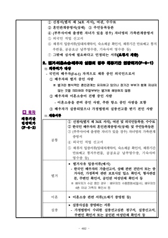 - 482 %uf000%ubaa9%ucc28%uccb4%ub958%uae30%uac04%uc5f0%uc7a5%ud5c8%uac00(F-6-2)%u2460%uc2e0%uccad%uc11c(%ubcc4%uc9c0 %uc81c 34%ud638 %uc11c%uc2dd),%uc5ec%uad8c,%uc218%uc218%ub8cc%u2461%ud63c%uc778%uad00%uacc4%uc99d%uba85%uc11c(%uc0c1%uc138)%u2462%uc8fc%ubbfc%ub4f1%ub85d%ub4f1%ubcf8%u2463(%ubd80%ubd80%uc0ac%uc774%uc5d0 %ucd9c%uc0dd%ud55c %uc790%ub140%uac00 %uc788%uc744 %uacbd%uc6b0)%uc790%ub140%uba85%uc758 %uac00%uc871%uad00%uacc4%uc99d%uba85%uc11c%uac00%uc871%uad00%uacc4%uc99d%uba85%uc11c%u2464%uc678%uad6d%uc778 %uc9c1%uc5c5 %uc2e0%uace0%uc11c%u2465%uccb4%ub958%uc9c0 %uc785%uc99d%uc11c%ub958(%uc784%ub300%ucc28%uacc4%uc57d%uc11c,%uc219%uc18c%uc81c%uacf5 %ud655%uc778%uc11c,%uccb4%ub958%uae30%uac04 %ub9cc%ub8cc%uc608%uace0%ud1b5%uc9c0%uc6b0%ud3b8%ubb3c,%uacf5%uacf5%uc694%uae08 %ub0a9%ubd80%uc601%uc218%uc99d,%uae30%uc219%uc0ac%ube44 %uc601%uc218%uc99d %ub4f1)%u2466%uadf8%ubc16%uc5d0 %uc2ec%uc0ac%uc5d0 %ud544%uc694%ud558%ub2e4%uace0 %uc778%uc815%ub418%ub294 %uc11c%ub958(%uc694%uccad%uc2dc %uc81c%ucd9c)2. %ubcc4%uac70%u2024%uc774%ud63c%uc18c%uc1a1%u2024%ubc30%uc6b0%uc790 %uc2e4%uc885%uc758 %uacbd%uc6b0 %uccb4%ub958%uae30%uac04 %uc5f0%uc7a5%ud5c8%uac00(F-6-1)(F-6-1)%uccb4%ub958%ud5c8%uac00 %ub300%uc0c1-%uad6d%ubbfc%uc758 %ubc30%uc6b0%uc790(F-6-1)(F-6-1)%uc790%uaca9%uc73c%ub85c %uccb4%ub958 %uc911%uc778 %uc678%uad6d%uc778%uc73c%ub85c%uc11c%u2460%ubc30%uc6b0%uc790%uc640 %ubcc4%uac70 %uc911%uc778 %uc0ac%ub78c%u203b %ubcc4%uac70%ub780 %ud615%uc2dd%uc801%uc778 %ud63c%uc778%uad00%uacc4%ub294 %uc720%uc9c0%ud558%uace0 %uc788%uc73c%ub098 %uc7a5%uae30%uac04 %ubd80%ubd80%uac00 %ud568%uaed8 %uc9c0%ub0b4%uc9c0 %uc54a%ub294 %uac83%uc744 %uc758%ubbf8%ud558%uba70 %uc8fc%ub9d0%ubd80%ubd80%ub294 %ubcc4%uac70%uc5d0 %ud574%ub2f9%ud558%uc9c0 %uc54a%uc74c%u2461%ubc30%uc6b0%uc790%uc640 %uc774%ud63c%uc18c%uc1a1%uc774 %uc9c4%ud589 %uc911%uc778 %uc0ac%ub78c-%uc774%ud63c%uc18c%uc1a1%uc744 %uc900%ube44 %uc911%uc778 %uc0ac%ub78c,%ucd94%uc644 %ud56d%uc18c %uc911%uc778 %uc0ac%ub78c%uc744 %ud3ec%ud568%u2462%ubc30%uc6b0%uc790%uac00 %uc2e4%uc885%ub418%uc5c8%uc73c%ub098 %uac00%uc815%ubc95%uc6d0%uc758 %uc2e4%uc885%uc120%uace0%ub97c %ubc1b%uae30 %uc804%uc778 %uc0ac%ub78c%uc81c%ucd9c%uc11c%ub958%uacf5%ud1b5%uc2e0%uccad%uc11c%ubcc4%uc9c0 %uc81c %ud638 %uc11c%uc2dd%uc5ec%uad8c %ubc0f %uc678%uad6d%uc778%ub4f1%ub85d%uc99d%uc218%uc218%ub8cc%u2461%ud55c%uad6d%uc778 %ubc30%uc6b0%uc790%uc758 %ud63c%uc778%uad00%uacc4%uc99d%uba85%uc11c(%uc0c1%uc138)%ubc0f %uc8fc%ubbfc%ub4f1%ub85d%ub4f1%ubcf8%u2462(%ubd80%ubd80%uc0ac%uc774%uc5d0 %ucd9c%uc0dd%ud55c %uc790%ub140%uac00 %uc788%uc744 %uacbd%uc6b0)%uc790%ub140%uba85%uc758 %uac00%uc871%uad00%uacc4%uc99d%uba85%uc11c%u2463%uc678%uad6d%uc778 %uc9c1%uc5c5 %uc2e0%uace0%uc11c%u2464%uccb4%ub958%uc9c0 %uc785%uc99d%uc11c%ub958(%uc784%ub300%ucc28%uacc4%uc57d%uc11c,%uc219%uc18c%uc81c%uacf5 %ud655%uc778%uc11c,%uccb4%ub958%uae30%uac04 %ub9cc%ub8cc%uc608%uace0%ud1b5%uc9c0%uc6b0%ud3b8%ubb3c,%uacf5%uacf5%uc694%uae08 %ub0a9%ubd80%uc601%uc218%uc99d,%uae30%uc219%uc0ac%ube44 %uc601%uc218%uc99d %ub4f1)%ubcc4%uac70%u2023%ubcc4%uac70%uc0ac%uc720 %uc785%uc99d%uc11c%ub958(%uc608%uc2dc)-%ud55c%uad6d%uc778%ubc30%uc6b0%uc790%uc758 %uac00%ucd9c%uc2e0%uace0%uc11c,%uc0c1%ud574 %uad00%ub828 %uc9c4%ub2e8%uc11c %ub610%ub294 %uc99d%uac70%uc0ac%uc9c4,%uac00%uc815%ud3ed%ub825 %uad00%ub828 %ubcf4%ud638%uc2dc%uc124 %uc785%uc18c %ud655%uc778%uc11c,%ud615%uc0ac%ud310%uacb0%ubb38,%uc8fc%ubcc0%uc778 %ud655%uc778%uc11c,%uacf5%uc778%ub41c %uc5ec%uc131%ub2e8%uccb4 %ud655%uc778%uc11c %ub4f1%u203b %ubc30%uc6b0%uc790%uac00 %uc218%uac10 %uc911%uc778 %uacbd%uc6b0 : %ubc30%uc6b0%uc790%uc758 %uc218%uc6a9%uc99d%uba85%uc11c(%ud544%uc218), %ubc30%uc6b0%uc790%uc758 4%ucd0c %uc774%ub0b4 %uac00%uc871%uc758 %ud655%uc778%uc11c %ub4f1%uc774%ud63c%u2023%uc774%ud63c%uc18c%uc1a1 %uad00%ub828 %uc11c%ub958(%uc18c%uc81c%uae30 %uc99d%uba85%uc6d0 %ub4f1)%uc2e4%uc885%u2023%uc2e4%uc885%uc0ac%uc2e4%uc744 %uc99d%uba85%ud558%ub294 %uc11c%ub958-%uac00%uc815%ubc95%uc6d0%uc774 %uc218%ub9ac%ud55c %uc2e4%uc885%uc120%uace0%uc2ec%ud310 %uccad%uad6c%uc11c,%uc2e4%uc885%uc2e0%uace0%uc11c,%uc8fc%ubcc0%uc778 %ud655%uc778%uc11c %ub610%ub294 %uacf5%uc778%ub41c %uc5ec%uc131%ub2e8%uccb4 %ud655%uc778%uc11c %ub4f1