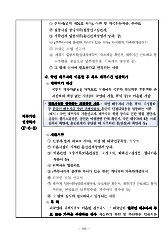 - 485 %uccb4%ub958%uae30%uac04(F-6-3)%u2460%uc2e0%uccad%uc11c(%ubcc4%uc9c0 %uc81c34%ud638 %uc11c%uc2dd),%uc5ec%uad8c %ubc0f %uc678%uad6d%uc778%ub4f1%ub85d%uc99d,%uc218%uc218%ub8cc%u2461%uc2e4%uc885%uc0ac%uc2e4 %uc99d%uba85%uc11c%ub958(%uc2e4%uc885%uc120%uace0%uc2ec%ud310%uc11c%uc2e4%uc885%uc120%uace0%uc2ec%ud310%uc11c)%u2462%uac00%uc871%uad00%uacc4 %uc785%uc99d%uc11c%ub958(%ud63c%uc778%uad00%uacc4%uc99d%uba85%uc11c(%uc0c1%uc138)%ub4f1)%u2463(%ubd80%ubd80%uc0ac%uc774%uc5d0 %ucd9c%uc0dd%ud55c %uc790%ub140%uac00 %uc788%uc744 %uacbd%uc6b0)%uc790%ub140%uba85%uc758 %uac00%uc871%uad00%uacc4%uc99d%uba85%uc11c%u2464%uc678%uad6d%uc778 %uc9c1%uc5c5 %uc2e0%uace0%uc11c%u2465%uccb4%ub958%uc9c0 %uc785%uc99d%uc11c%ub958(%uc784%ub300%ucc28%uacc4%uc57d%uc11c,%uc219%uc18c%uc81c%uacf5 %ud655%uc778%uc11c,%uccb4%ub958%uae30%uac04 %ub9cc%ub8cc%uc608%uace0%ud1b5%uc9c0%uc6b0%ud3b8%ubb3c,%uacf5%uacf5%uc694%uae08 %ub0a9%ubd80%uc601%uc218%uc99d,%uae30%uc219%uc0ac%ube44 %uc601%uc218%uc99d %ub4f1)%u2466%uadf8 %ubc16%uc5d0 %uc2ec%uc0ac%uc5d0 %ud544%uc694%ud558%ub2e4%uace0 %uc778%uc815%ub418%ub294 %uc11c%ub958%ub2e4.%uad6d%ubbfc %ubc30%uc6b0%uc790%uc640 %uc774%ud63c%ud55c %ud6c4 %ucd5c%ucd08 %uccb4%ub958%uae30%uac04 %uc5f0%uc7a5%ud5c8%uac00%uccb4%ub958%ud5c8%uac00 %ub300%uc0c1-%uad6d%ubbfc%uc758 %ubc30%uc6b0%uc790(F-6-1)%uc790%uaca9%uc73c%ub85c %uad6d%ub0b4%uc5d0%uc11c%uad6d%ubbfc%uacfc %uc815%uc0c1%uc801%uc778 %ud63c%uc778%uc0dd%ud65c %uc911 %uc790%uc2e0%uc5d0%uac8c %ucc45%uc784 %uc5c6%ub294 %uc0ac%uc720(%uf9b5.%uad6d%ubbfc%uc758 %uac00%ucd9c,%ud3ed%ub825 %ub4f1)%ub85c %uc774%ud63c%ud55c %uc0ac%ub78c%uc81c%ucd9c%uc11c%ub958%u2460%uc2e0%uccad%uc11c(%ubcc4%uc9c0 %uc81c34%ud638 %uc11c%uc2dd),%uc5ec%uad8c %ubc0f %uc678%uad6d%uc778%ub4f1%ub85d%uc99d,%uc218%uc218%ub8cc%u2461%uc774%ud63c%uc0ac%uc2e4%uc774 %uae30%uc7ac%ub41c %ud63c%uc778%uad00%uacc4%uc99d%uba85%uc11c(%uc0c1%uc138)%u2462%uc774%ud63c%uad00%ub828 %uc18c%uc1a1%uc11c%ub958(%uc774%ud63c%ud310%uacb0%ubb38,%uc870%uc815%uc870%uc11c,%ud654%ud574%uad8c%uace0%uacb0%uc815%ubb38%ud654%ud574%uad8c%uace0%uacb0%uc815%ubb38,%ud611%uc758%uc774%ud63c %uc0ac%uc720%uc11c %ub4f1)%u2463%uadc0%ucc45%uc0ac%uc720 %uc785%uc99d%uc790%ub8cc%u2464(%ubd80%ubd80%uc0ac%uc774%uc5d0 %ucd9c%uc0dd%ud55c %uc790%ub140%uac00 %uc788%uc744 %uacbd%uc6b0)%uc790%ub140%uba85%uc758 %uac00%uc871%uad00%uacc4%uc99d%uba85%uc11c%uac00%uc871%uad00%uacc4%uc99d%uba85%uc11c%u2465%uc678%uad6d%uc778 %uc9c1%uc5c5 %uc2e0%uace0%uc11c%u2466%uccb4%ub958%uc9c0 %uc785%uc99d%uc11c%ub958(%uc784%ub300%ucc28%uacc4%uc57d%uc11c,%uc219%uc18c%uc81c%uacf5 %ud655%uc778%uc11c,%uccb4%ub958%uae30%uac04 %ub9cc%ub8cc%uc608%uace0%ud1b5%uc9c0%uc6b0%ud3b8%ubb3c,%uacf5%uacf5%uc694%uae08 %ub0a9%ubd80%uc601%uc218%uc99d,%uae30%uc219%uc0ac%ube44 %uc601%uc218%uc99d %ub4f1)%u2467%uadf8 %ubc16%uc5d0 %uc2ec%uc0ac%uc5d0 %ud544%uc694%ud558%ub2e4%uace0 %uc778%uc815%ub418%ub294 %uc11c%ub958%ud2b9 %uce59%uc678%uad6d%uc778%uc758 %uadc0%ucc45%uc0ac%uc720%ub85c %uc774%ud63c%ud55c %uacbd%uc6b0%ub77c%ub3c4 %uadf8 %uc678%uad6d%uc778%uc774 %ud55c%uad6d%uc778 %ubc30%uc6b0%uc790%uc758 %ubd80%ubaa8%ub610%ub294 %uac00%uc871%uc744 %ubd80%uc591%ud558%ub294 %uacbd%uc6b0%uc0ac%uc2e4%uad00%uacc4 %ud655%uc778 %ubc0f %ubd80%uc591%uad00%ub828 %uc785%uc99d%uc11c%ub958 *%uadc0%ucc45%uc0ac%uc720%ub97c %uc785%uc99d%ud558%ub294 %uac1d%uad00%uc801%uc778 %uc790%ub8cc:%uad6d%ubbfc %ubc30%uc6b0%uc790%uc758 %uac00%ucd9c,%ud3ed%ub825,%uac00%uc815%ubd88%ud654 %ub4f1 %ud55c%uad6d%uc778 %ubc30%uc6b0%uc790%uc758 %uc8fc%ub41c %uadc0%ucc45%uc0ac%uc720%ub85c %ud63c%uc778%uc774 %ub2e8%uc808%ub418%uc5c8%uc74c%uc744 %uc785%uc99d%ud558%ub294 %uc11c%ub958(%uc608%uc2dc :%uad6d%ubbfc %ubc30%uc6b0%uc790%uc758 %uac00%ucd9c%uc2e0%uace0%uc11c,%ubc30%uc6b0%uc790%uc758 %ud3ed%ud589 %ub4f1%uc73c%ub85c %uc778%ud55c %ubcd1%uc6d0 %uc9c4%ub2e8%uc11c,%uac80%ucc30%uc758 %ubd88%uae30%uc18c%uacb0%uc815%ubb38,%uacf5%uc778%ub41c %uc5ec%uc131%uad00%ub828 %ub2e8%uccb4 %ud655%uc778%uc11c,%uad6d%ubbfc %ubc30%uc6b0%uc790%uc758 4%ucd0c %uc774%ub0b4 %uce5c%ucc99%uc758 %ud655%uc778%uc11c,%ud63c%uc778%uad00%uacc4%uac00 %uc911%ub2e8%ub41c %ub54c %uac70%uc8fc%ud558%ub358 %ud1b5(%ubc18%uc7a5)%uc758 %ud655%uc778%uc11c %ub4f1)