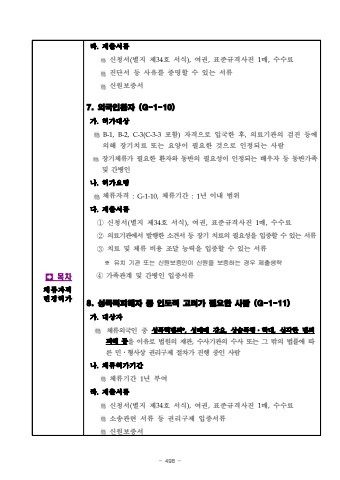 - 498 %uf000%uccb4%ub958%uc790%uaca9%ubcc0%uacbd%ud5c8%uac00%ub77c.%uc81c%ucd9c%uc11c%ub958%uc2e0%uccad%uc11c(%ubcc4%uc9c0 %uc81c34%ud638 %uc11c%uc2dd),%uc5ec%uad8c,%ud45c%uc900%uaddc%uaca9%uc0ac%uc9c4 1%ub9e4,%uc218%uc218%ub8cc%uc9c4%ub2e8%uc11c %ub4f1 %uc0ac%uc720%ub97c %uc99d%uba85%ud560 %uc218 %uc788%ub294 %uc11c%ub958%uc2e0%uc6d0%ubcf4%uc99d%uc11c7. %uc678%uad6d%uc778%ud658%uc790 (G-1-10) %uac00.%ud5c8%uac00%ub300%uc0c1B-1,B-2,C-3(C-3-3%ud3ec%ud568)%uc790%uaca9%uc73c%ub85c %uc785%uad6d%ud55c %ud6c4,%uc758%ub8cc%uae30%uad00%uc758 %uac80%uc9c4 %ub4f1%uc5d0 %uc758%ud574 %uc7a5%uae30%uce58%ub8cc %ub610%ub294 %uc694%uc591%uc774 %ud544%uc694%ud55c %uac83%uc73c%ub85c %uc778%uc815%ub418%ub294 %uc0ac%ub78c%uc7a5%uae30%uccb4%ub958%uac00 %ud544%uc694%ud55c %ud658%uc790%uc640 %ub3d9%ubc18%uc758 %ud544%uc694%uc131%uc774 %uc778%uc815%ub418%ub294 %ubc30%uc6b0%uc790 %ub4f1 %ub3d9%ubc18%uac00%uc871 %ubc0f %uac04%ubcd1%uc778%ub098.%ud5c8%uac00%uc694%ub839%uccb4%ub958%uc790%uaca9 :G-1-10,%uccb4%ub958%uae30%uac04 :1%ub144 %uc774%ub0b4 %ubc94%uc704%ub2e4.%uc81c%ucd9c%uc11c%ub958%u2460%uc2e0%uccad%uc11c(%ubcc4%uc9c0 %uc81c34%ud638 %uc11c%uc2dd),%uc5ec%uad8c,%ud45c%uc900%uaddc%uaca9%uc0ac%uc9c4 1%ub9e4,%uc218%uc218%ub8cc%u2461%uc758%ub8cc%uae30%uad00%uc5d0%uc11c %ubc1c%ud589%ud55c %uc18c%uacac%uc11c %ub4f1 %uc7a5%uae30 %uce58%ub8cc%uc758 %ud544%uc694%uc131%uc744 %uc785%uc99d%ud560 %uc218 %uc788%ub294 %uc11c%ub958%u2462%uce58%ub8cc %ubc0f %uccb4%ub958 %ube44%uc6a9 %uc870%ub2ec %ub2a5%ub825%uc744 %uc785%uc99d%ud560 %uc218 %uc788%ub294 %uc11c%ub958%u203b %uc720%uce58 %uae30%uad00 %ub610%ub294 %uc2e0%uc6d0%ubcf4%uc99d%uc778%uc774 %uc2e0%uc6d0%uc744 %ubcf4%uc99d%ud558%ub294 %uacbd%uc6b0 %uc81c%ucd9c%uc0dd%ub7b5%u2463%uac00%uc871%uad00%uacc4 %ubc0f %uac04%ubcd1%uc778 %uc785%uc99d%uc11c%ub9588. %uc131%ud3ed%ub825%ud53c%ud574%uc790 %ub4f1 %uc778%ub3c4%uc801 %uace0%ub824%uac00 %ud544%uc694%ud55c %uc0ac%ub78c (G-1-11) %uac00.%ub300%uc0c1%uc790%uccb4%ub958%uc678%uad6d%uc778 %uc911 %uc131%ud3ed%ub825%ubc94%uc8c4*,%uc131%ub9e4%ub9e4 %uac15%uc694,%uc0c1%uc2b5%ud3ed%ud589%u2024%ud559%ub300,%uc2ec%uac01%ud55c %ubc94%uc8c4 %ud53c%ud574 %ub4f1%uc744 %uc774%uc720%ub85c %ubc95%uc6d0%uc758 %uc7ac%ud310,%uc218%uc0ac%uae30%uad00%uc758 %uc218%uc0ac %ub610%ub294 %uadf8 %ubc16%uc758 %ubc95%ub960%uc5d0 %ub530%ub978 %ubbfc%u2024%ud615%uc0ac%uc0c1 %uad8c%ub9ac%uad6c%uc81c %uc808%ucc28%uac00 %uc9c4%ud589 %uc911%uc778 %uc0ac%ub78c%ub098.%uccb4%ub958%ud5c8%uac00%uae30%uac04%uccb4%ub958%uae30%uac04 1%ub144 %ubd80%uc5ec%ub77c.%uc81c%ucd9c%uc11c%ub958%uc2e0%uccad%uc11c(%ubcc4%uc9c0 %uc81c34%ud638 %uc11c%uc2dd),%uc5ec%uad8c,%ud45c%uc900%uaddc%uaca9%uc0ac%uc9c4 1%ub9e4,%uc218%uc218%ub8cc%uc18c%uc1a1%uad00%ub828 %uc11c%ub958 %ub4f1 %uad8c%ub9ac%uad6c%uc81c %uc785%uc99d%uc11c%ub958%uc2e0%uc6d0%ubcf4%uc99d%uc11c