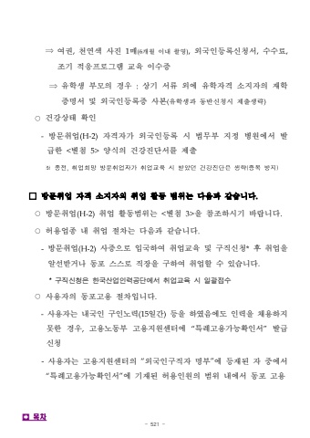 - 521 -%u21d2%uc5ec%uad8c,%ucc9c%uc5f0%uc0c9 %uc0ac%uc9c4 1%ub9e4(6%uac1c%uc6d4 %uc774%ub0b4 %ucd2c%uc601),%uc678%uad6d%uc778%ub4f1%ub85d%uc2e0%uccad%uc11c,%uc218%uc218%ub8cc,%uc870%uae30 %uc801%uc751%ud504%ub85c%uadf8%ub7a8%uad50%uc721 %uc774%uc218%uc99d%u21d2%uc720%ud559%uc0dd %ubd80%ubaa8%uc758 %uacbd%uc6b0 :%uc0c1%uae30 %uc11c%ub958 %uc678%uc5d0 %uc720%ud559%uc790%uaca9 %uc18c%uc9c0%uc790%uc758 %uc7ac%ud559%uc99d%uba85%uc11c %ubc0f %uc678%uad6d%uc778%ub4f1%ub85d%uc99d %uc0ac%ubcf8(%uc720%ud559%uc0dd%uacfc %ub3d9%ubc18%uc2e0%uccad%uc2dc %uc81c%ucd9c%uc0dd%ub7b5)%u25cb%uac74%uac15%uc0c1%ud0dc %ud655%uc778-%ubc29%ubb38%ucde8%uc5c5(H-2)%uc790%uaca9%uc790%uac00 %uc678%uad6d%uc778%ub4f1%ub85d %uc2dc %ubc95%ubb34%ubd80 %uc9c0%uc815 %ubcd1%uc6d0%uc5d0%uc11c %ubc1c%uae09%ud55c <%ubcc4%ucca8 5>%uc591%uc2dd%uc758 %uac74%uac15%uc9c4%ub2e8%uc11c%ub97c %uc81c%ucd9c%u203b%uc885%uc804,%ucde8%uc5c5%ud76c%ub9dd%ubc29%ubb38%ucde8%uc5c5%uc790%uac00%ucde8%uc5c5%uad50%uc721%uc2dc%ubc1b%uc558%ub358%uac74%uac15%uc9c4%ub2e8%uc740%uc0dd%ub7b5(%uc911%ubcf5%ubc29%uc9c0)%u25a1%ubc29%ubb38%ucde8%uc5c5 %uc790%uaca9 %uc18c%uc9c0%uc790%uc758 %ucde8%uc5c5 %ud65c%ub3d9 %ubc94%uc704%ub294 %ub2e4%uc74c%uacfc %uac19%uc2b5%ub2c8%ub2e4.%u25cb%ubc29%ubb38%ucde8%uc5c5(H-2)%ucde8%uc5c5 %ud65c%ub3d9%ubc94%uc704%ub294 <%ubcc4%ucca8 3>%uc744 %ucc38%uc870%ud558%uc2dc%uae30 %ubc14%ub78d%ub2c8%ub2e4.%u25cb%ud5c8%uc6a9%uc5c5%uc885 %ub0b4 %ucde8%uc5c5 %uc808%ucc28%ub294 %ub2e4%uc74c%uacfc %uac19%uc2b5%ub2c8%ub2e4.-%ubc29%ubb38%ucde8%uc5c5(H-2)%uc0ac%uc99d%uc73c%ub85c %uc785%uad6d%ud558%uc5ec %ucde8%uc5c5%uad50%uc721 %ubc0f %uad6c%uc9c1%uc2e0%uccad*%ud6c4 %ucde8%uc5c5%uc744 %uc54c%uc120%ubc1b%uac70%ub098 %ub3d9%ud3ec %uc2a4%uc2a4%ub85c %uc9c1%uc7a5%uc744 %uad6c%ud558%uc5ec %ucde8%uc5c5%ud560 %uc218 %uc788%uc2b5%ub2c8%ub2e4.*%uad6c%uc9c1%uc2e0%uccad%uc740 %ud55c%uad6d%uc0b0%uc5c5%uc778%ub825%uacf5%ub2e8%uc5d0%uc11c %ucde8%uc5c5%uad50%uc721 %uc2dc %uc77c%uad04%uc811%uc218%u25cb%uc0ac%uc6a9%uc790%uc758 %ub3d9%ud3ec%uace0%uc6a9 %uc808%ucc28%uc785%ub2c8%ub2e4.-%uc0ac%uc6a9%uc790%ub294 %ub0b4%uad6d%uc778 %uad6c%uc778%ub178%ub825(15%uc77c%uac04)%ub4f1%uc744 %ud558%uc600%uc74c%uc5d0%ub3c4 %uc778%ub825%uc744 %ucc44%uc6a9%ud558%uc9c0 %ubabb%ud55c %uacbd%uc6b0,%uace0%uc6a9%ub178%ub3d9%ubd80 %uace0%uc6a9%uc9c0%uc6d0%uc13c%ud130%uc5d0 %u201c%ud2b9%ub840%uace0%uc6a9%uac00%ub2a5%ud655%uc778%uc11c%u201d%ubc1c%uae09 %uc2e0%uccad-%uc0ac%uc6a9%uc790%ub294 %uace0%uc6a9%uc9c0%uc6d0%uc13c%ud130%uc758 %u201c%uc678%uad6d%uc778%uad6c%uc9c1%uc790 %uba85%ubd80%u201d%uc5d0 %ub4f1%uc7ac%ub41c %uc790 %uc911%uc5d0%uc11c %u201c%ud2b9%ub840%uace0%uc6a9%uac00%ub2a5%ud655%uc778%uc11c%u201d%uc5d0 %uae30%uc7ac%ub41c %ud5c8%uc6a9%uc778%uc6d0%uc758 %ubc94%uc704 %ub0b4%uc5d0%uc11c %ub3d9%ud3ec %uace0%uc6a9%uf000%ubaa9%ucc28