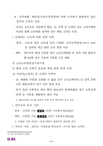 - 535 -%u203b%u300c%uc18c%ub4dd%uc138%ubc95%u300d%uc81c47(%uadfc%ub85c%uc18c%ub4dd%uacf5%uc81c)%uc5d0%uc758%ud574%uc18c%ub4dd%uc138%uac00%ubc1c%uc0dd%ud558%uc9c0%uc54a%ub294%uacbd%uc6b0%uc758%uc18c%ub4dd%ub3c4%uc778%uc815-%uc790%uc0b0%uc740 %uc18c%ub4dd%uc73c%ub85c %uc778%uc815%ud558%uc9c0 %uc54a%uc74c.%ub2e8,%uc8fc%ud0dd %ub4f1 %uc2e0%uccad%uc778 %ub610%ub294 %uc18c%ub4dd%uc8fc%uccb4%uc758 %uc790%uc0b0%uc744 %ud1b5%ud574 %uc18c%ub4dd%uc138%ub97c %ub0a9%ubd80%ud55c %uacbd%uc6b0 %ud574%ub2f9 %uc18c%ub4dd%uc740 %uc778%uc815%u25cb%uc778%uc815%ub418%ub294 %uc18c%ub4dd%uc5d0 %ub300%ud55c %uc99d%ube59 %uc11c%ub958-%uc6d0%uce59 :%uc18c%ub4dd%uacfc %ub0a9%ubd80 %uc18c%ub4dd%uc138 %ub4f1%uc774 %uae30%uc7ac%ub41c %u2018%uc18c%ub4dd%uae08%uc561%uc99d%uba85%u2019(%uc138%ubb34%uc11c%ubc1c%uae09)%ub4f1 %ub0a9%ubd80%ud55c %uc138%uae08 %uad00%ub828 %uacf5%uc801 %uc99d%uba85 %uc11c%ub958-%uc608%uc678 :%uc601%uc8fc%uc790%uaca9 %ubcc0%uacbd %uc2e0%uccad%uc77c %ub2f9%uc2dc %uc18c%ub4dd%uae08%uc561%uc99d%uba85 %ub4f1 %uacf5%uc801 %uc11c%ub958 %ubc1c%uae09%uc774 %ubd88%uac00%ub2a5%ud560 %uacbd%uc6b0 %ub2e4%uc74c%uc758 %uc11c%ub958%ub97c %ubaa8%ub450 %uc81c%ucd9c%u326e%uadfc%ub85c%uc18c%ub4dd%uc6d0%ucc9c%uc9d5%uc218%uc601%uc218%uc99d%u326f%ud574%ub2f9 %uc18c%ub4dd %uae08%uc561%uc774 %uc785%uae08%ub41c %uacc4%uc88c %uad00%ub828 %uc99d%ube59 %uc11c%ub958%u3270%uc0ac%uc5c5%uc790(%uace0%uc6a9%uc8fc)%ubc0f %uc2e0%uccad%uc778 %uc11c%uc57d%uc11c-%ub2e8,%uc81c%ucd9c%ud55c %uc11c%ub958%ub97c %uc2e0%ub8b0%ud560 %uc218 %uc5c6%uc744 %uacbd%uc6b0 %uc18c%ub4dd%uae08%uc561%uc99d%uba85 %ub4f1 %uacf5%uc801 %uc99d%ube59 %uc11c%ub958 %uc81c%ucd9c%uc2dc%uae4c%uc9c0 %ud5c8%uac00 %uc5ec%ubd80 %uacb0%uc815 %ubcf4%ub958-%ud5c8%uac00 %uacb0%uc815 %uc774%ud6c4%uc5d0%ub3c4 %ub300%uc870 %ud655%uc778 %ud544%uc694%uc131%uc774 %ubc1c%uc0dd%ud558%uc600%uc744 %uacbd%uc6b0 %uc18c%ub4dd%uae08%uc561%uc99d%uba85 %ub4f1 %uc11c%ub958%ub97c %uc81c%ucd9c%ubc1b%uc544 %ub300%uc870 %uac00%ub2a5%u203b%ubd88%uc77c%uce58%ud558%uc5ec%uc694%uac74%uc744%uac16%ucd94%uc9c0%ubabb%ud55c%uacbd%uc6b0%uc601%uc8fc%uc790%uaca9%ucde8%uc18c%uc870%uce58%u25cb%uc5f0%uac04%uc18c%ub4dd %uc2ec%uc0ac %uae30%uc900-%uc6d0%uce59 :%uc2e0%uccad%uc77c %uae30%uc900 %uc804%ub144%ub3c41%uc778%ub2f9 %uad6d%ubbfc%ucd1d%uc18c%ub4dd(GNI)51)-%uc608%uc678 :%uc2e0%uccad%uc77c %uae30%uc900 %uc804%uc804%ub144%ub3c41%uc778%ub2f9 %uad6d%ubbfc%ucd1d%uc18c%ub4dd(GNI)%u203b%uc2e0%uccad%uc77c%uae30%uc900%uc804%ub144%ub3c41%uc778%ub2f9GNI%uac00%ubc1c%ud45c%ub418%uc9c0%uc54a%uc558%uc744%uacbd%uc6b0%u25cb%uc790%uc0b0%uc758 %uae30%uc900 :%uc804%ub144%ub3c4 %u2018%uac00%uacc4%uae08%uc735%u00b7%ubcf5%uc9c0%uc870%uc0ac%u2019%uac00%uad6c%ub2f9 %ud3c9%uade0 %uc21c%uc790%uc0b051)%ub9e4%ub144 %ud55c%uad6d%uc740%ud589%uc5d0%uc11c %ubc1c%ud45c%ud568%uf000%ubaa9%ucc28