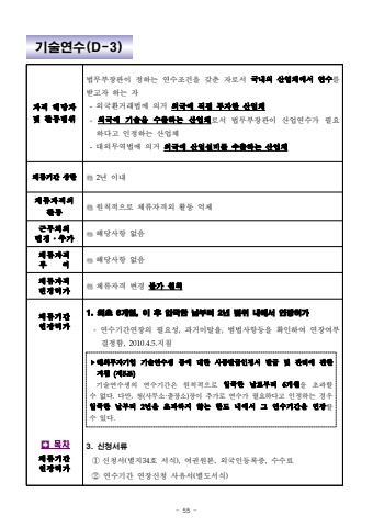 - 55 -%uae30%uc220%uc5f0%uc218(D-3)%uc790%uaca9%ud574%ub2f9%uc790%ubc0f%ud65c%ub3d9%ubc94%uc704%ubc95%ubb34%ubd80%uc7a5%uad00%uc774 %uc815%ud558%ub294 %uc5f0%uc218%uc870%uac74%uc744 %uac16%ucd98 %uc790%ub85c%uc11c %uad6d%ub0b4%uc758 %uc0b0%uc5c5%uccb4%uc5d0%uc11c %uc5f0%uc218%ub97c %ubc1b%uace0%uc790 %ud558%ub294 %uc790-%uc678%uad6d%ud658%uac70%ub798%ubc95%uc5d0 %uc758%uac70 %uc678%uad6d%uc5d0 %uc9c1%uc811 %ud22c%uc790%ud55c %uc0b0%uc5c5%uccb4-%uc678%uad6d%uc5d0 %uae30%uc220%uc744 %uc218%ucd9c%ud558%ub294 %uc0b0%uc5c5%uccb4%ub85c%uc11c %ubc95%ubb34%ubd80%uc7a5%uad00%uc774 %uc0b0%uc5c5%uc5f0%uc218%uac00 %ud544%uc694%ud558%ub2e4%uace0 %uc778%uc815%ud558%ub294 %uc0b0%uc5c5%uccb4-%ub300%uc678%ubb34%uc5ed%ubc95%uc5d0 %uc758%uac70 %uc678%uad6d%uc5d0 %uc0b0%uc5c5%uc124%ube44%ub97c %uc218%ucd9c%ud558%ub294 %uc0b0%uc5c5%uccb4%uccb4%ub958%uae30%uac04%uc0c1%ud55c2%ub144 %uc774%ub0b4%uccb4%ub958%uc790%uaca9%uc678%ud65c%ub3d9%uc6d0%uce59%uc801%uc73c%ub85c %uccb4%ub958%uc790%uaca9%uc678 %ud65c%ub3d9 %uc5b5%uc81c%uadfc%ubb34%ucc98%uc758%ubcc0%uacbd%u2024%ucd94%uac00%ud574%ub2f9%uc0ac%ud56d %uc5c6%uc74c%uccb4%ub958%uc790%uaca9%ubd80%uc5ec%ud574%ub2f9%uc0ac%ud56d %uc5c6%uc74c%uccb4%ub958%uc790%uaca9%ubcc0%uacbd%ud5c8%uac00%uccb4%ub958%uc790%uaca9 %ubcc0%uacbd %ubd88%uac00 %uc6d0%uce59%uccb4%ub958%uae30%uac04%uc5f0%uc7a5%ud5c8%uac00%uf000%ubaa9%ucc28%uccb4%ub958%uae30%uac04%uc5f0%uc7a5%ud5c8%uac001. %ucd5c%ucd08 6%uac1c%uc6d4, %uc774 %ud6c4 %uc785%uad6d%ud55c %ub0a0%ubd80%ud130 2%ub144 %ubc94%uc704 %ub0b4%uc5d0%uc11c %uc5f0%uc7a5%ud5c8%uac00-%uc5f0%uc218%uae30%uac04%uc5f0%uc7a5%uc758 %ud544%uc694%uc131,%uacfc%uac70%uc774%ud0c8%uc728,%ubc94%ubc95%uc0ac%ud56d%ub4f1%uc744 %ud655%uc778%ud558%uc5ec %uc5f0%uc7a5%uc5ec%ubd80 %uacb0%uc815%ud568,2010.4.5.%uc9c0%uce683. %uc2e0%uccad%uc11c%ub958%u2460%uc2e0%uccad%uc11c(%ubcc4%uc9c034%ud638 %uc11c%uc2dd), %uc5ec%uad8c%uc6d0%ubcf8, %uc678%uad6d%uc778%ub4f1%ub85d%uc99d, %uc218%uc218%ub8cc%u2461 %uc5f0%uc218%uae30%uac04 %uc5f0%uc7a5%uc2e0%uccad %uc0ac%uc720%uc11c(%ubcc4%ub3c4%uc11c%uc2dd) %u2023%ud574%uc678%ud22c%uc790%uae30%uc5c5 %uae30%uc220%uc5f0%uc218%uc0dd %ub4f1%uc5d0 %ub300%ud55c %uc0ac%uc99d%ubc1c%uae09%uc778%uc815%uc11c %ubc1c%uae09 %ubc0f %uad00%ub9ac%uc5d0 %uad00%ud55c %uc9c0%uce68 (%uc81c5%uc870)%uae30%uc220%uc5f0%uc218%uc0dd%uc758 %uc5f0%uc218%uae30%uac04%uc740 %uc6d0%uce59%uc801%uc73c%ub85c %uc785%uad6d%ud55c %ub0a0%ub85c%ubd80%ud130 6%uac1c%uc6d4%uc744 %ucd08%uacfc%ud560 %uc218 %uc5c6%ub2e4.%ub2e4%ub9cc,%uccad(%uc0ac%ubb34%uc18c%u00b7%ucd9c%uc7a5%uc18c)%uc7a5%uc774 %ucd94%uac00%ub85c %uc5f0%uc218%uac00 %ud544%uc694%ud558%ub2e4%uace0%uc778%uc815%ud558%ub294 %uacbd%uc6b0 %uc785%uad6d%ud55c %ub0a0%ubd80%ud130 2%ub144%uc744 %ucd08%uacfc%ud558%uc9c0 %uc54a%ub294 %ud55c%ub3c4 %ub0b4%uc5d0%uc11c %uadf8 %uc5f0%uc218%uae30%uac04%uc744%uc5f0%uc7a5%ud560 %uc218 %uc788%ub2e4.
