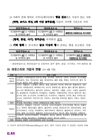 - 551 -%u274d %uc0ac%ud68c%uc801 %uc911%ub300 %ubc94%uc8c4%ub85c %uad6d%uc801%uad6d(%uc81c3%uad6d)%uc5d0%uc11c %ud615%uc744 %uc120%uace0%ubc1b%uc740 %uc0ac%uc2e4%uc774 %uc788%ub294 %uc0ac%ub78c-(%ub9c8%uc57d,%ubcf4%uc774%uc2a4 %ud53c%uc2f1,3%ud68c %uc774%uc0c1 %uc74c%uc8fc%uc6b4%uc804)%ub2e4%uc74c%uc758 %uc790%uaca9%ubcc4 %uae30%uc900%uc73c%ub85c %ucc98%ub9ac%ubc29%ubb38%ucde8%uc5c5(H-2)%uc7ac%uc678%ub3d9%ud3ec(F-4)%uc601%uc8fc(F-5)%uc120%uace0%uc77c%ub85c%ubd80%ud130 6%ub144%uac04 %uc0ac%uc99d%ubc1c%uae09 %ubc0f %uc790%uaca9%ubcc0%uacbd %ubd88%ud5c8%uc120%uace0%uc77c%ub85c%ubd80%ud130 7%ub144%uac04 %uc0ac%uc99d%ubc1c%uae09 %ubc0f %uc790%uaca9%ubcc0%uacbd %ubd88%ud5c8%ud488%ud589%ub2e8%uc815 %ubbf8%ucda9%uc871%uc73c%ub85c %ud5c8%uac00%uc81c%ud55c-(%ud611%ubc15,%uacf5%uac08,%uc0ac%uae30)%uc601%uc8fc(F-5)%uc790%uaca9%ubcc0%uacbd%ubd88%ud5c8%u274d %uae30%ud0c0 %ubc94%uc8c4*%ub85c %uc678%uad6d%uc5d0%uc11c %uae08%uace0 %uc774%uc0c1%uc758 %ud615%uc5d0 %uc900%ud558%ub294 %ud615%uc744 %uc120%uace0%ubc1b%uc740 %uc0ac%ub78c%ubc29%ubb38%ucde8%uc5c5(H-2)%uc7ac%uc678%ub3d9%ud3ec(F-4)%uc601%uc8fc(F-5)%uc120%uace0%uc77c%ub85c%ubd80%ud130 4%ub144%uac04 %uc0ac%uc99d%ubc1c%uae09 %ubc0f %uc790%uaca9%ubcc0%uacbd %ubd88%ud5c8%uc120%uace0%uc77c%ub85c%ubd80%ud130 5%ub144%uac04 %uc0ac%uc99d%ubc1c%uae09 %ubc0f %uc790%uaca9%ubcc0%uacbd %ubd88%ud5c8%uc120%uace0%uc77c%ub85c%ubd80%ud130 10%ub144 %uac04%ud488%ud589%ub2e8%uc815 %ubbf8%ucda9%uc871%uc73c%ub85c %ud5c8%uac00%uc81c%ud55c*%ubc29%ubb38%ucde8%uc5c5(H-2),%uc7ac%uc678%ub3d9%ud3ec(F-4)%uc2e0%uccad%uc790%uc758%uacbd%uc6b0%ud611%ubc15,%uacf5%uac08,%uc0ac%uae30%uc8c4%ub3c4%uae30%ud0c0%ubc94%uc8c4%ub85c%ubd04%uc0ac. %uc544%ud3ec%uc2a4%ud2f0%uc720 %uac00%uc785%uad6d %ud604%ud669 (%u201824. 6%uc6d4 %uae30%uc900)%uc9c0%uc5ed%uad6d%uac00 / %uc9c0%uc5ed%uc544%uc2dc%uc544, %ub300%uc591%uc8fc%ub274%uc9c8%ub79c%ub4dc,%ub2c8%uc6b0%uc5d0,%ub9c8%uc0ec%uad70%ub3c4,%ubaa8%ub9ac%uc154%uc2a4,%ubabd%uace8, %ubc14%ub204%uc544%ud22c, %ube0c%ub8e8%ub098%uc774, %uc0ac%ubaa8%uc544, %uc2f1%uac00%ud3ec%ub974, %uc624%uc2a4%ud2b8%ub808%uc77c%ub9ac%uc544(%ud638%uc8fc), %uc778%ub3c4, %uc778%ub3c4%ub124%uc2dc%uc544, %uc77c%ubcf8, %uc911%uad6d(%ub9c8%uce74%uc624, %ud64d%ucf69 %ud3ec%ud568), %ucfe1%uc81c%ub3c4, %ud0c0%uc9c0%ud0a4%uc2a4%ud0c4, %ud1b5%uac00, %ud30c%ud0a4%uc2a4%ud0c4, %ud314%ub77c%uc6b0, %ud53c%uc9c0, %ud544%ub9ac%ud540, %ud55c%uad6d%uc720%ub7fd%uadf8%ub9ac%uc2a4, %ub124%ub35c%ub780%ub4dc, %ub178%ub974%uc6e8%uc774, %ub374%ub9c8%ud06c, %ub3c5%uc77c, %ub77c%ud2b8%ube44%uc544, %ub7ec%uc2dc%uc544, %ub8e8%ub9c8%ub2c8%uc544, %ub8e9%uc148%ubd80%ub974%ud06c, %ub9ac%ud22c%uc544%ub2c8%uc544, %ub9ac%ud788%ud150%uc288%ud0c0%uc778, %ubd81%ub9c8%ucf00%ub3c4%ub2c8%uc544, %ubaa8%ub098%ucf54, %ubaac%ud14c%ub124%uadf8%ub85c, %ubab0%ub3c4%ubc14, %ubab0%ud0c0, %ubca8%uae30%uc5d0, %ubca8%ub77c%ub8e8%uc2a4, %ubcf4%uc2a4%ub2c8%uc544 %ud5e4%ub974%uccb4%uace0%ube44%ub098, %ubd88%uac00%ub9ac%uc544, %uc0b0%ub9c8%ub9ac%ub178, %uc138%ub974%ube44%uc544, %uc2a4%uc6e8%ub374, %uc2a4%uc704%uc2a4, %uc2a4%ud398%uc778, %uc2ac%ub85c%ubc14%ud0a4%uc544, %uc2ac%ub85c%ubca0%ub2c8%uc544, %uc544%ub974%uba54%ub2c8%uc544, %uc544%uc774%uc2ac%ub780%ub4dc, %uc544%uc77c%ub79c%ub4dc, %uc544%uc81c%ub974%ubc14%uc774%uc794, %uc548%ub3c4%ub77c, %uc54c%ubc14%ub2c8%uc544, %uc5d0%uc2a4%ud1a0%ub2c8%uc544, %uc601%uad6d, %uc624%uc2a4%ud2b8%ub9ac%uc544, %uc6b0%uc988%ubca0%ud0a4%uc2a4%ud0c4, %uc6b0%ud06c%ub77c%uc774%ub098, %uc774%ud0c8%ub9ac%uc544, %uc870%uc9c0%uc544, %uccb4%ucf54, %uce74%uc790%ud750%uc2a4%ud0c4, %ucf54%uc18c%ubcf4, %ud06c%ub85c%uc544%ud2f0%uc544, %ud0a4%ub974%ud0a4%uc988%uc2a4%ud0c4, %ud0a4%ud504%ub85c%uc2a4, %ud280%ub974%ud0a4%uc608, %ud3ec%ub974%ud22c%uac08, %ud3f4%ub780%ub4dc, %ud504%ub791%uc2a4, %ud540%ub780%ub4dc, %ud5dd%uac00%ub9ac%ubd81%ubbf8%ubbf8%uad6d(%uad0c, %ub9c8%uc6b0%ub9ac%uc81c%ub3c4, %uc0ac%uc774%ud310, %ud478%uc5d0%ub974%ud1a0%ub9ac%ucf54 %ud3ec%ud568), %uce90%ub098%ub2e4%uc911%ub0a8%ubbf8%uac00%uc774%uc544%ub098, %uacfc%ud14c%ub9d0%ub77c, %uadf8%ub77c%ub098%ub2e4, %ub2c8%uce74%ub77c%uacfc, %ub3c4%ubbf8%ub2c8%uce74%uacf5%ud654%uad6d, %ub3c4%ubbf8%ub2c8%uce74%uc5f0%ubc29, %uba55%uc2dc%ucf54, %ubc14%ubca0%uc774%ub3c4%uc2a4, %ubc14%ud558%ub9c8, %ubca0%ub124%uc218%uc5d8%ub77c, %ubca8%ub9ac%uc988, %ubcfc%ub9ac%ube44%uc544, %ube0c%ub77c%uc9c8, %uc138%uc778%ud2b8%ub8e8%uc2dc%uc544, %uc138%uc778%ud2b8%ube48%uc13c%ud2b8, %uc138%uc778%ud2b8%ud0a4%uce20%ub124%ube44%uc2a4, %uc218%ub9ac%ub0a8, %uc544%ub974%ud5e8%ud2f0%ub098, %uc564%ud2f0%uac00%ubc14%ubd80%ub2e4, %uc5d0%ucf70%ub3c4%ub974, %uc5d8%uc0b4%ubc14%ub3c4%ub974, %uc628%ub450%ub77c%uc2a4, %uc6b0%ub8e8%uacfc%uc774, %uce60%ub808, %ucf54%uc2a4%ud0c0%ub9ac%uce74, %ucf5c%ub86c%ube44%uc544, %ud2b8%ub9ac%ub2c8%ub2e4%ub4dc%ud1a0%ubc14%uace0, %ud30c%ub098%ub9c8, %ud398%ub8e8, %ud30c%ub77c%uacfc%uc774, %uc790%uba54%uc774%uce74%uc544%ud504%ub9ac%uce74%ub098%ubbf8%ube44%uc544, %ub0a8%uc544%ud504%ub9ac%uce74%uacf5%ud654%uad6d, %ub77c%uc774%ubca0%ub9ac%uc544, %ub808%uc18c%ud1a0, %ub9d0%ub77c%uc704, %ubcf4%uce20%uc640%ub098, %uc0c1%ud22c%uba54%ud504%ub9b0%uc2dc%ud398, %uc138%ub124%uac08, %uc138%uc774%uc178, %uc5d0%uc2a4%uc640%ud2f0%ub2c8, %uce74%ubcf4%ubca0%ub974%ub370, %ube0c%ub8ec%ub514, %ud280%ub2c8%uc9c0, %ub974%uc644%ub2e4%uc911%ub3d9%ubaa8%ub85c%ucf54, %ubc14%ub808%uc778, %uc0ac%uc6b0%ub514%uc544%ub77c%ube44%uc544, %uc624%ub9cc, %uc774%uc2a4%ub77c%uc5d8%u203b%uc678%uad50%ubd80%ud574%uc678%uc548%uc804%uc5ec%ud589(www.0404.go.kr)%ucc38%uace0,%ud5a5%ud6c4%uac00%uc785%uad6d%ubcc0%uacbd%uc2dc%ubcc0%uacbd%ub41c%ub0b4%uc6a9%uc5d0%ub530%ub984%uf000%ubaa9%ucc28