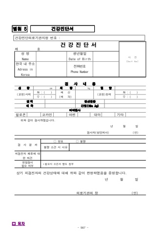 - 567 -%ubcc4%ucca8 5%uac74%uac15%uc9c4%ub2e8%uc11c%uac74%uac15%uc9c4%ub2e8%uc758%ub8cc%uae30%uad00%uc9c0%uc815 %ubc88%ud638 : %uac74 %uac15 %uc9c4 %ub2e8 %uc11c%uc81c %ud638%uc0ac %uc9c4(3%u339d%u00d7 4%u339d)%uc131 %uba85Name%uc0dd%ub144%uc6d4%uc77cDate of Birth%ud55c%uad6d %ub0b4 %uc8fc%uc18cAdress in Korea%uc804%ud654%ubc88%ud638Phone Number%uac80 %uc0ac %ub0b4 %uc6a9%uc2e0 %uc7a5%u339d%uccb4 %uc911%u338f%ud608 %uc555(%uad50%uc815)%uc2dc%ub825%uc88c : ( )%uc0c9 %uc2e0(%uc0c9 %uac01)(%uad50%uc815)%uccad%ub825%uc88c : ( )%uc6b0 : ( )%uc6b0 : ( )%uacb0 %ud575 %uc815%uc2e0%uc9c8%ud658%ub9e4 %ub3c5 %uac04%uc5fc(HBs Ag) %ub9c8%uc57d%uac80%uc0ac%ud544%ub85c%ud3f0%ucf54%uce74%uc778%uc544%ud3b8%ub300%ub9c8%uae30%ud0c0%uc704%uc640 %uac19%uc774 %uac80%uc0ac%ud558%uc600%uc2b5%ub2c8%ub2e4%ub144 %uc6d4 %uc77c%uac80%uc0ac%uc790(%ub2f4%ub2f9%uc758%uc0ac) (%uc778)%uac80 %uc0ac %uacb0 %uacfc%u25a1 %uc591%ud638 %u25a1 %ubd88%ub7c9 %ubd88%ub7c9 %uc18c%uacac %uc2dc %uc0ac%uc720 %ud53c%uac80%uc9c4%uc790 %uccb4%ub958%uc5d0 %ub300%ud55c %uc758%uacac%uc815%ubc00%uac80%uc0ac%ud544%uc694 %uc5ec%ubd80%uff0a%ud544%uc694%uc2dc %uc18c%uacac%uc11c %ubcc4%ub3c4 %ucca8%ubd80%uc0c1%uae30 %ud53c%uac80%uc9c4%uc790%uc758 %uac74%uac15%uc0c1%ud0dc%uc5d0 %ub300%ud574 %uc704%uc640 %uac19%uc774 %ud310%uc815%ud558%uc600%uc74c%uc744 %uc99d%uba85%ud569%ub2c8%ub2e4.%ub144 %uc6d4 %uc77c%uc758%ub8cc%uae30%uad00%uc758 %uc7a5 (%uc778)%uf000%ubaa9%ucc28