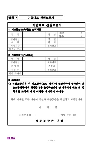 - 571 -%ubcc4%ucca8 7%uae30%uc5c5%ub300%ud45c %uc2e0%uc6d0%ubcf4%uc99d%uc11c%uae30%uc5c5%ub300%ud45c%uc2e0%uc6d0%ubcf4%uc99d%uc11c1.%ud53c%ubcf4%uc99d%uc778(%uc18c%uc18d%uc9c1%uc6d0)%uc778%uc801%uc0ac%ud56d%uad6d %uc801%uc131 %uba85%uc601%ubb38( )%ud55c%uc790( )%uc0dd%ub144%uc6d4%uc77c%uc131 %ubcc4%uc9c1 %uc704%ud559 %ub825%uc7ac%uc9c1%uae30%uac04%uc804%ud654%ubc88%ud638%uac70%uc8fc%uad6d %uc8fc%uc18c2.%uc2e0%uc6d0%ubcf4%uc99d%uc778(%uae30%uc5c5%ub300%ud45c)%uad6d %uc801%uc131 %uba85%uc0dd%ub144%uc6d4%uc77c%uccb4%ub958%uc790%uaca9%ud68c %uc0ac %uba85%uc790%ubcf8%uae08%uc9c1%uc6d0 %uc218%uc804%ud654%ubc88%ud638%ud68c%uc0ac %uc18c%uc7ac%uc9c03.%ubcf4%uc99d%ub0b4%uc6a9%u25cb %uc2e0%uc6d0%ubcf4%uc99d%uc778%uc740 %uc704 %ud53c%ubcf4%uc99d%uc778(%uc18c%uc18d %uc9c1%uc6d0)%uc774%ub300%ud55c%ubbfc%uad6d%uc5d0 %uc785%uad6d%ud558%uc5ec %ub2e8%uc21c%ub178%ubb34%uc5c5%uc885%uc5d0%uc11c %ucde8%uc5c5%ud560 %uacbd%uc6b0 %ucd9c%uc785%uad6d%uad00%ub9ac%ubc95 %uc0c1 %uccb4%ub958%ud5c8%uac00 %ucde8%uc18c %ubc0f %uc785%uad6d%uc81c%ud55c %uc870%uce58%uc5d0 %ub300%ud574 %uc774%uc758%ub97c %uc81c%uae30%ud558%uc9c0 %uc544%ub2c8%ud568%uc704%uc5d0 %uae30%uc7ac%ub41c %ubaa8%ub4e0 %ub0b4%uc6a9%uc774 %uc0ac%uc2e4%uacfc %ub2e4%ub984%uc5c6%uc74c%uc744 %ud655%uc778%ud558%uace0%ubcf4%uc99d%ud569%ub2c8%ub2e4.%ub144 %uc6d4 %uc77c%uc2e0%uc6d0%ubcf4%uc99d%uc778 : (%uc11c%uba85 %ub610%ub294 %uc778)%ubc95%ubb34 %ubd80 %uc7a5 %uad00%uadc0 %ud558%uf000%ubaa9%ucc28