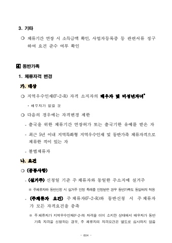- 604 -3. %uae30%ud0c0%u274d %uccb4%ub958%uae30%uac04 %uc5f0%uc7a5 %uc2dc %uc18c%ub4dd%uae08%uc561 %ud655%uc778,%uc0ac%uc5c5%uc790%ub4f1%ub85d%uc99d %ub4f1 %uad00%ub828%uc11c%ub958 %uc9d5%uad6c%ud558%uc5ec %uc694%uac74 %uc900%uc218 %uc5ec%ubd80 %ud655%uc778%uf000 %ub3d9%ubc18%uac00%uc8711. %uccb4%ub958%uc790%uaca9 %ubcc0%uacbd%uac00. %ub300%uc0c1%u274d %uc9c0%uc5ed%uc6b0%uc218%uc778%uc7ac(F-2-R) %uc790%uaca9 %uc18c%uc9c0%uc790%uc758 %ubc30%uc6b0%uc790 %ubc0f %ubbf8%uc131%ub144%uc790%ub140**%ubc30%uc6b0%uc790%uac00%uc5c6%uc744%uac83%u274d %ub2e4%uc74c%uc758 %uacbd%uc6b0%uc5d0%ub294 %uc790%uaca9%ubcc0%uacbd %uc81c%ud55c %ucd9c%uad6d%uc744 %uc704%ud55c %uccb4%ub958%uae30%uac04 %uc5f0%uc7a5%ud5c8%uac00 %ub610%ub294 %ucd9c%uad6d%uae30%ud55c %uc720%uc608%ub97c %ubc1b%uc740 %uc790-%ucd5c%uadfc 5%ub144 %uc774%ub0b4 %uc9c0%uc5ed%ud2b9%ud654%ud615 %uc9c0%uc5ed%uc6b0%uc218%uc778%uc7ac %ubc0f %ub3d9%ubc18%uac00%uc871 %uccb4%ub958%uc790%uaca9%uc73c%ub85c%uccb4%ub958%ud55c %uc801%uc774 %uc788%ub294 %uc790-%ubd88%ubc95%uccb4%ub958%uc790%ub098. %uc694%uac74%u274d (%uacf5%ud1b5%uc0ac%ud56d)-(%uc2e4%uac70%uc8fc)%uc2e0%uccad%uc77c %uae30%uc900 %uc8fc%uccb4%ub958%uc790%uc640 %ub3d9%uc77c%ud55c %uc8fc%uc18c%uc9c0%uc5d0 %uc2e4%uac70%uc8fc%u203b%uc8fc%uccb4%ub958%uc790%uc640%ub3d9%ubc18%uc2e0%uccad%uc2dc%uc2e4%uac70%uc8fc%uc778%uc815%ud2b9%ub840%ub97c%uc778%uc815%ubc1b%uc740%uacbd%uc6b0%ub3d9%ubc18%uac00%uc871%ub3c4%ub3d9%uc77c%ud558%uac8c%uc801%uc6a9-(%uc8fc%uccb4%ub958%uc790 %uc694%uac74)%uc8fc%uccb4%ub958%uc790(F-2-R)%uc640 %ub3d9%ubc18%uc2e0%uccad %uc2dc %uc8fc%uccb4%ub958%uc790%uac00 %ubaa8%ub4e0 %uc790%uaca9%uc694%uac74%uc744 %ucda9%uc871%u203b%uc8fc%uccb4%ub958%uc790%uac00%uc9c0%uc5ed%uc6b0%uc218%uc778%uc7ac(F-2-R)%uc790%uaca9%uc744%uc774%ubbf8%uc18c%uc9c0%ud55c%uc0c1%ud0dc%uc5d0%uc11c%ubc30%uc6b0%uc790%uac00%ub3d9%ubc18%uac00%uc871%uc790%uaca9%uc744%uc2e0%uccad%ud558%ub294%uacbd%uc6b0,%uc8fc%uccb4%ub958%uc790%uc758%uc790%uaca9%uc694%uac74%uc740%ubcc4%ub3c4%ub85c%uc2ec%uc0ac%ud558%uc9c0%uc54a%uc74c