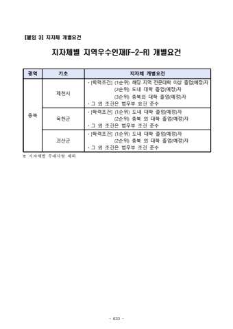 - 633 -%u3010%ubd99%uc784 3%u3011%uc9c0%uc790%uccb4 %uac1c%ubcc4%uc694%uac74%uc9c0%uc790%uccb4%ubcc4 %uc9c0%uc5ed%uc6b0%uc218%uc778%uc7ac(F-2-R) %uac1c%ubcc4%uc694%uac74%u203b %uc9c0%uc790%uccb4%ubcc4 %uc6b0%ub300%uc0ac%ud56d %uc81c%uc678%uad11%uc5ed%uae30%ucd08%uc9c0%uc790%uccb4 %uac1c%ubcc4%uc694%uac74%ucda9%ubd81%uc81c%ucc9c%uc2dc%u22c5[%ud559%ub825%uc870%uac74] (1%uc21c%uc704) %ud574%ub2f9 %uc9c0%uc5ed %uc804%ubb38%ub300%ud559 %uc774%uc0c1 %uc878%uc5c5(%uc608%uc815)%uc790(2%uc21c%uc704) %ub3c4%ub0b4 %ub300%ud559 %uc878%uc5c5(%uc608%uc815)%uc790(3%uc21c%uc704) %ucda9%ubd81%uc678 %ub300%ud559 %uc878%uc5c5(%uc608%uc815)%uc790%u22c5%uadf8 %uc678 %uc870%uac74%uc740 %ubc95%ubb34%ubd80 %uc694%uac74 %uc900%uc218%uc625%ucc9c%uad70%u22c5[%ud559%ub825%uc870%uac74] (1%uc21c%uc704) %ub3c4%ub0b4 %ub300%ud559 %uc878%uc5c5(%uc608%uc815)%uc790(2%uc21c%uc704) %ucda9%ubd81 %uc678 %ub300%ud559 %uc878%uc5c5(%uc608%uc815)%uc790%u22c5%uadf8 %uc678 %uc870%uac74%uc740 %ubc95%ubb34%ubd80 %uc870%uac74 %uc900%uc218%uad34%uc0b0%uad70%u22c5[%ud559%ub825%uc870%uac74] (1%uc21c%uc704) %ub3c4%ub0b4 %ub300%ud559 %uc878%uc5c5(%uc608%uc815)%uc790(2%uc21c%uc704) %ucda9%ubd81 %uc678 %ub300%ud559 %uc878%uc5c5(%uc608%uc815)%uc790%u22c5%uadf8 %uc678 %uc870%uac74%uc740 %ubc95%ubb34%ubd80 %uc870%uac74 %uc900%uc218