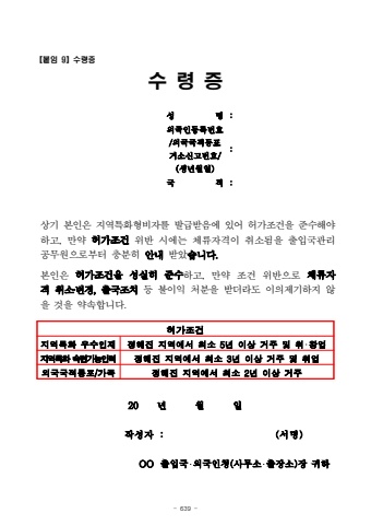- 639 -%u3010%ubd99%uc784 9%u3011%uc218%ub839%uc99d%uc218 %ub839 %uc99d%uc131 %uba85:%uc678%uad6d%uc778%ub4f1%ub85d%ubc88%ud638/%uc678%uad6d%uad6d%uc801%ub3d9%ud3ec%uac70%uc18c%uc2e0%uace0%ubc88%ud638/(%uc0dd%ub144%uc6d4%uc77c):%uad6d %uc801:%uc0c1%uae30 %ubcf8%uc778%uc740 %uc9c0%uc5ed%ud2b9%ud654%ud615%ube44%uc790%ub97c %ubc1c%uae09%ubc1b%uc74c%uc5d0 %uc788%uc5b4 %ud5c8%uac00%uc870%uac74%uc744 %uc900%uc218%ud574%uc57c%ud558%uace0, %ub9cc%uc57d %ud5c8%uac00%uc870%uac74%uc704%ubc18 %uc2dc%uc5d0%ub294 %uccb4%ub958%uc790%uaca9%uc774 %ucde8%uc18c%ub428%uc744 %ucd9c%uc785%uad6d%uad00%ub9ac%uacf5%ubb34%uc6d0%uc73c%ub85c%ubd80%ud130 %ucda9%ubd84%ud788 %uc548%ub0b4%ubc1b%uc558%uc2b5%ub2c8%ub2e4.%ubcf8%uc778%uc740 %ud5c8%uac00%uc870%uac74%uc744 %uc131%uc2e4%ud788 %uc900%uc218%ud558%uace0, %ub9cc%uc57d %uc870%uac74 %uc704%ubc18%uc73c%ub85c %uccb4%ub958%uc790%uaca9 %ucde8%uc18c%u2027%ubcc0%uacbd, %ucd9c%uad6d%uc870%uce58 %ub4f1 %ubd88%uc774%uc775 %ucc98%ubd84%uc744 %ubc1b%ub354%ub77c%ub3c4 %uc774%uc758%uc81c%uae30%ud558%uc9c0 %uc54a%uc744 %uac83%uc744%uc57d%uc18d%ud569%ub2c8%ub2e4.%ud5c8%uac00%uc870%uac74%uc9c0%uc5ed%ud2b9%ud654%uc6b0%uc218%uc778%uc7ac%uc815%ud574%uc9c4%uc9c0%uc5ed%uc5d0%uc11c%ucd5c%uc18c5%ub144%uc774%uc0c1%uac70%uc8fc%ubc0f%ucde8%u2027%ucc3d%uc5c5%uc9c0%uc5ed%ud2b9%ud654%uc219%ub828%uae30%ub2a5%uc778%ub825%uc815%ud574%uc9c4%uc9c0%uc5ed%uc5d0%uc11c%ucd5c%uc18c3%ub144%uc774%uc0c1%uac70%uc8fc%ubc0f%ucde8%uc5c5%uc678%uad6d%uad6d%uc801%ub3d9%ud3ec/%uac00%uc871%uc815%ud574%uc9c4%uc9c0%uc5ed%uc5d0%uc11c%ucd5c%uc18c2%ub144%uc774%uc0c1%uac70%uc8fc20%ub144%uc6d4%uc77c%uc791%uc131%uc790:(%uc11c%uba85)OO%ucd9c%uc785%uad6d%u2027%uc678%uad6d%uc778%uccad(%uc0ac%ubb34%uc18c%u2027%ucd9c%uc7a5%uc18c)%uc7a5%uadc0%ud558