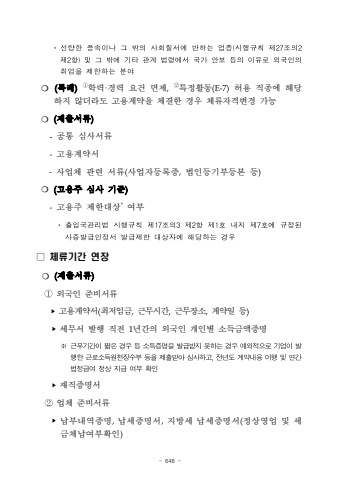 - 646 *%uc120%ub7c9%ud55c%ud48d%uc18d%uc774%ub098%uadf8%ubc16%uc758%uc0ac%ud68c%uc9c8%uc11c%uc5d0%ubc18%ud558%ub294%uc5c5%uc885(%uc2dc%ud589%uaddc%uce59%uc81c27%uc870%uc7582%uc81c2%ud56d)%ubc0f%uadf8%ubc16%uc5d0%uae30%ud0c0%uad00%uacc4%ubc95%ub839%uc5d0%uc11c%uad6d%uac00%uc548%ubcf4%ub4f1%uc758%uc774%uc720%ub85c%uc678%uad6d%uc778%uc758%ucde8%uc5c5%uc744%uc81c%ud55c%ud558%ub294%ubd84%uc57c%u274d (%ud2b9%ub840)%u2460%ud559%ub825%u00b7%uacbd%ub825 %uc694%uac74 %uba74%uc81c,%u2461%ud2b9%uc815%ud65c%ub3d9(E-7)%ud5c8%uc6a9 %uc9c1%uc885%uc5d0 %ud574%ub2f9%ud558%uc9c0 %uc54a%ub354%ub77c%ub3c4 %uace0%uc6a9%uacc4%uc57d%uc744 %uccb4%uacb0%ud55c %uacbd%uc6b0 %uccb4%ub958%uc790%uaca9%ubcc0%uacbd %uac00%ub2a5%u274d (%uc81c%ucd9c%uc11c%ub958)-%uacf5%ud1b5 %uc2ec%uc0ac%uc11c%ub958-%uace0%uc6a9%uacc4%uc57d%uc11c-%uc0ac%uc5c5%uccb4 %uad00%ub828 %uc11c%ub958(%uc0ac%uc5c5%uc790%ub4f1%ub85d%uc99d,%ubc95%uc778%ub4f1%uae30%ubd80%ub4f1%ubcf8 %ub4f1)%u274d (%uace0%uc6a9%uc8fc %uc2ec%uc0ac %uae30%uc900)-%uace0%uc6a9%uc8fc %uc81c%ud55c%ub300%uc0c1*%uc5ec%ubd80*%ucd9c%uc785%uad6d%uad00%ub9ac%ubc95%uc2dc%ud589%uaddc%uce59%uc81c17%uc870%uc7583%uc81c2%ud56d%uc81c1%ud638%ub0b4%uc9c0%uc81c7%ud638%uc5d0%uaddc%uc815%ub41c%uc0ac%uc99d%ubc1c%uae09%uc778%uc815%uc11c%ubc1c%uae09%uc81c%ud55c%ub300%uc0c1%uc790%uc5d0%ud574%ub2f9%ud558%ub294%uacbd%uc6b0%u25a1 %uccb4%ub958%uae30%uac04 %uc5f0%uc7a5%u274d (%uc81c%ucd9c%uc11c%ub958)%u2460%uc678%uad6d%uc778 %uc900%ube44%uc11c%ub958%u2023%uace0%uc6a9%uacc4%uc57d%uc11c(%ucd5c%uc800%uc784%uae08,%uadfc%ubb34%uc2dc%uac04,%uadfc%ubb34%uc7a5%uc18c,%uacc4%uc57d%uc77c %ub4f1)%u2023%uc138%ubb34%uc11c %ubc1c%ud589 %uc9c1%uc804 1%ub144%uac04%uc758 %uc678%uad6d%uc778 %uac1c%uc778%ubcc4 %uc18c%ub4dd%uae08%uc561%uc99d%uba85%u203b%uadfc%ubb34%uae30%uac04%uc774%uc9e7%uc740%uacbd%uc6b0%ub4f1%uc18c%ub4dd%uc99d%uba85%uc744%ubc1c%uae09%ubc1b%uc9c0%ubabb%ud558%ub294%uacbd%uc6b0%uc608%uc678%uc801%uc73c%ub85c%uae30%uc5c5%uc774%ubc1c%ud589%ud55c%uadfc%ub85c%uc18c%ub4dd%uc6d0%ucc9c%uc9d5%uc218%ubd80%ub4f1%uc744%uc81c%ucd9c%ubc1b%uc544%uc2ec%uc0ac%ud558%uace0,%uc804%ub144%ub3c4%uacc4%uc57d%ub0b4%uc6a9%uc774%ud589%ubc0f%uc5f0%uac04%ubc95%uc815%uae09%uc5ec%uc815%uc0c1%uc9c0%uae09%uc5ec%ubd80%ud655%uc778%u2023%uc7ac%uc9c1%uc99d%uba85%uc11c%u2461%uc5c5%uccb4 %uc900%ube44%uc11c%ub958%u2023%ub0a9%ubd80%ub0b4%uc5ed%uc99d%uba85,%ub0a9%uc138%uc99d%uba85%uc11c,%uc9c0%ubc29%uc138 %ub0a9%uc138%uc99d%uba85%uc11c(%uc815%uc0c1%uc601%uc5c5 %ubc0f %uc138%uae08%uccb4%ub0a9%uc5ec%ubd80%ud655%uc778)