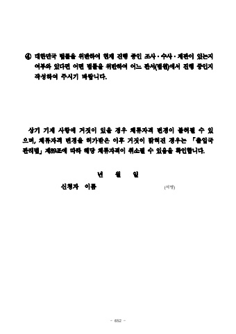 - 652 %u2463%ub300%ud55c%ubbfc%uad6d %ubc95%ub960%uc744 %uc704%ubc18%ud558%uc5ec %ud604%uc7ac %uc9c4%ud589 %uc911%uc778 %uc870%uc0ac%u2024%uc218%uc0ac%u2024%uc7ac%ud310%uc774 %uc788%ub294%uc9c0%uc5ec%ubd80%uc640 %uc788%ub2e4%uba74 %uc5b4%ub5a4 %ubc95%ub960%uc744 %uc704%ubc18%ud558%uc5ec %uc5b4%ub290 %uad00%uc11c(%ubc95%uc6d0)%uc5d0%uc11c %uc9c4%ud589 %uc911%uc778%uc9c0%uc791%uc131%ud558%uc5ec %uc8fc%uc2dc%uae30 %ubc14%ub78d%ub2c8%ub2e4.%uc0c1%uae30 %uae30%uc7ac %uc0ac%ud56d%uc5d0 %uac70%uc9d3%uc774 %uc788%uc744 %uacbd%uc6b0 %uccb4%ub958%uc790%uaca9 %ubcc0%uacbd%uc774 %ubd88%ud5c8%ub420 %uc218 %uc788%uc73c%uba70,%uccb4%ub958%uc790%uaca9 %ubcc0%uacbd%uc744 %ud5c8%uac00%ubc1b%uc740 %uc774%ud6c4 %uac70%uc9d3%uc774 %ubc1d%ud600%uc9c4 %uacbd%uc6b0%ub294 %u300c%ucd9c%uc785%uad6d%uad00%ub9ac%ubc95%u300d%uc81c89%uc870%uc5d0 %ub530%ub77c %ud574%ub2f9 %uccb4%ub958%uc790%uaca9%uc774 %ucde8%uc18c%ub420 %uc218 %uc788%uc74c%uc744 %ud655%uc778%ud569%ub2c8%ub2e4.%ub144 %uc6d4 %uc77c%uc2e0%uccad%uc790 %uc774%ub984 (%uc11c%uba85)