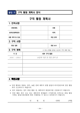 - 654 %ubd99%uc784 3%uad6c%uc9c1 %ud65c%ub3d9 %uacc4%ud68d%uc11c %uc591%uc2dd%uad6c%uc9c1 %ud65c%ub3d9 %uacc4%ud68d%uc11c1. %uc778%uc801%uc0ac%ud56d%uc131%uba85(%uc601%ubb38)%uc131%ubcc4%uc678%uad6d%uc778%ub4f1%ub85d%ubc88%ud638%uad6d%uc801%ucd5c%uc885 %ud559%ub825 %ubc0f %uc804%uacf5%ucde8%uc5c5 %uacbd%ub8252. %uad6c%uc9c1 %uc0ac%ud56d %ud76c%ub9dd %uc5c5%uc885%ud76c%ub9dd %ubcf4%uc2183. %uad6c%uc9c1 %uacc4%ud68d %u203b%ucd5c%uc18c2%uac1c%uc6d4%ub2e8%uc704%ub85c1%ub144%uac04%uc758%uad6c%uc9c1%uacc4%ud68d%uc791%uc131%uae30 %uac04%uc138%ubd80 %uad6c%uc9c1 %ud65c%ub3d9 2026.1. ~2026.2.00%uc5c5%uccb4 %uc9c0%uc6d0 %ubc0f %uba74%uc811 %ucc38%uc5ec %ub4f14. %ud655%uc778%uc0ac%ud56d%u2022%uc778%ud134 %ud65c%ub3d9%uc744 %uc6d0%ud558%ub294 %uacbd%uc6b0%uc77c %uc804%uc5d0 %uccb4%ub958%uc9c0 %uad00%ud560 %ucd9c%uc785%uad6d%u00b7%uc678%uad6d%uc778%uad00%uc11c%uc5d0 %uc778%ud134 %ud65c%ub3d9%uac1c%uc2dc %uc2e0%uace0%ud558%uc2dc%uae30 %ubc14%ub78d%ub2c8%ub2e4.%u2022%uc815%uc2dd %ucc44%uc6a9%ub418%ub294 %uacbd%uc6b0 %ucde8%uc5c5 %ud65c%ub3d9 %uc804,%uccb4%ub958%uc790%uaca9 %ubcc0%uacbd%ud5c8%uac00%ub97c %uc2e0%uccad%ud558%uc2dc%uae30 %ubc14%ub78d%ub2c8%ub2e4.%u2022%uc778%ud134 %ud65c%ub3d9 %uac1c%uc2dc %uc2e0%uace0 %ub610%ub294 %uccb4%ub958%uc790%uaca9 %ubcc0%uacbd%uc5c6%uc774 %uad6c%uc9c1(D-10)%uc790%uaca9%uc73c%ub85c %ucde8%uc5c5 %ud65c%ub3d9 %uc2dc%uc5d0%ub294 %ucd9c%uc785%uad6d%uad00%ub9ac%ubc95%uc5d0 %ub530%ub77c %ucc98%ubc8c%ubc1b%uc744 %uc218 %uc788%uc73c%ub2c8 %uc720%uc758%ud558%uc2dc%uae30 %ubc14%ub78d%ub2c8%ub2e4.%ub144 %uc6d4 %uc77c %uc2e0%uccad%uc778 (%uc11c%uba85)