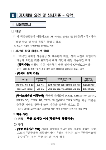 - 676 %u25a1 %ub300%uc0c1%u25cb%uc2dc %ud575%uc2ec%uc0b0%uc5c5%ubd84%uc57c %uc774%uacf5%uacc4(%ub85c%ubd07,AI,%ubc14%uc774%uc624,%ud540%ud14c%ud06c %ub4f1)(%uc804%ubb38)%ud559%u2024%uc11d%u2024%ubc15%uc0ac-%ub300%uc0c1 %ud559%uad50 %ubc0f %ud559%uacfc %ubaa9%ub85d%uc740 %ubd99%uc784 3%ucc38%uc870%u203b %ubcf8%uad50%uac00 %uc11c%uc6b8%uc778 %uc9c0%uc5ed%ucea0%ud37c%uc2a4 %uc720%ud559%uc0dd%ub3c4 %ud5c8%uc6a9%u25a1 %uc2dc%uac04%uc81c %ucde8%uc5c5 %ud5c8%uc6a9%uc2dc%uac04 %ud655%ub300%u25cb%u300c%uc678%uad6d%uc778 %uc720%ud559%uc0dd %uc0ac%uc99d%ubc1c%uae09 %ubc0f %uccb4%ub958%uad00%ub9ac %uc9c0%uce68%u300d%uc0c1%uc758 %uc2dc%uac04%uc81c %ucde8%uc5c5%ud5c8%uac00%ub300%uc0c1%uc790 %uc694%uac74%uc744 %uac16%ucd98 %uc720%ud559%uc0dd%uc5d0 %ub300%ud574 %uc2dc%uac04%uc81c %ucde8%uc5c5 %ud5c8%uc6a9%uc2dc%uac04 %ud655%ub300-(%uc131%uc801%uae30%uc900)%uc2e0%uccad%uc77c %uae30%uc900 %uc9c1%uc804%ud559%uae30 %ud3c9%uade0 %uc131%uc801%uc774 C%ud559%uc810(2.0)%uc774%uc0c1%u203b %ub2e8, %uc785%ud559 %ud6c4 %ucd5c%ucd08 1%ud559%uae30 %uc218%uac15 %uc911%uc778 %uc790%ub85c %uc131%uc801%ud45c%uac00 %ubbf8%ubc1c%uae09%ub41c %uacbd%uc6b0%ub294 %uc81c%uc678-(%ud55c%uad6d%uc5b4 %ub2a5%ub825 %uae30%uc900)%uad6c %ubd84%ud55c%uad6d%uc5b4%ub2a5%ub825%uc2dc%ud5d8(TOPIK)%uc0ac%ud68c%ud1b5%ud569%ud504%ub85c%uadf8%ub7a8(KIIP)%uc138%uc885%ud559%ub2f9%ud55c%uad6d%uc5b4%uacfc%uc815%uc804%ubb38%ud559%uc0ac , %ud559%uc0ac 1~2%ub1443%uae09 %uc774%uc0c13%ub2e8%uacc4 %uc774%uc0c1 %uc774%uc218 %ub610%ub294 %uc0ac%uc804%ud3c9%uac00 61%uc810 %uc774%uc0c1%uc911%uae091 %uacfc%uc815 %uc774%uc0c1%ud559%uc0ac 3~4%ub144, %uc11d%u00b7%ubc15%uc0ac4%uae09 %uc774%uc0c14%ub2e8%uacc4 %uc774%uc0c1 %uc774%uc218 %ub610%ub294 %uc0ac%uc804%ud3c9%uac00 81%uc810 %uc774%uc0c1%uc911%uae092 %uacfc%uc815 %uc774%uc0c1-(%uc601%uc5b4%ud2b8%ub799%uacfc%uc815 %uc5b4%ud559%ub2a5%ub825)%ud559%ub144%uc5d0 %uad00%uacc4%uc5c6%uc774 TOEFL530(CBT197,iBT71),IELTS5.5,CEFRB2,TEPS601%uc810(NEWTEPS327%uc810)%uc774%uc0c1 %uae30%uc900%uc744 %ucda9%uc871%ud55c %uc0ac%ub78c%uc740 %ud55c%uad6d%uc5b4 %ub2a5%ub825 %uae30%uc900%uc744 %ucda9%uc871%ud55c %uac83%uc73c%ub85c %ubd04%u203b %ub2e8, %uc601%uc5b4%ub97c %ubaa8%uad6d%uc5b4 %ub610%ub294 %uacf5%uc6a9%uc5b4%ub85c %ud558%ub294 %uad6d%uac00 %uc720%ud559%uc0dd%uc740 %uc99d%ube59%uc11c%ub958 %uc81c%ucd9c %uba74%uc81c%u25cb%ud5c8%uc6a9 %uc2dc%uac041) %uc6d0%uce59-%uc8fc%uc911 30%uc2dc%uac04 %uc774%ub0b4(%ud559%uc704%uacfc%uc815 %ud1b5%ud569%uc801%uc6a9)2) %uc6b0%ub300-(%uc8fc%uc911 %ud5c8%uc6a9%uc2dc%uac04 %uc6b0%ub300)%uc2dc%uac04%uc81c %ucde8%uc5c5%ud5c8%uac00%ud55c%uad6d%uc5b4%ub2a5%ub825 %uae30%uc900%uc744 %ucda9%uc871%ud55c%uc0ac%ub78c%uc73c%ub85c%uc11c%u2460%uc778%uc99d%ub300%ud559 %uc7ac%ud559%uc0dd%uc774%uac70%ub098,%u2461%uc131%uc801 %uc6b0%uc218%uc790*%ub610%ub294 %u2462%ud55c%uad6d%uc5b4%ub2a5%ub825 %uc6b0%uc218%uc790**%uc778 %uacbd%uc6b0 %uc8fc%uc911 5%uc2dc%uac04 %ucd94%uac00 %ud5c8%uc6a9%u2161%uc9c0%uc790%uccb4%ubcc4 %uc694%uac74 %ubc0f %uc2ec%uc0ac%uae30%uc900 - %uc720%ud559 1. %uc11c%uc6b8%ud2b9%ubcc4%uc2dc