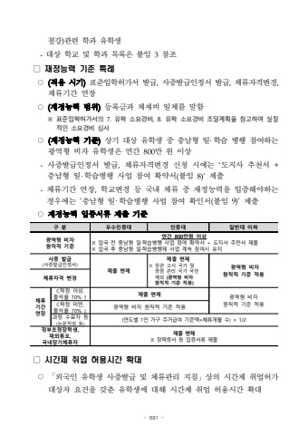 - 691 %ucca0%uac15)%uad00%ub828 %ud559%uacfc %uc720%ud559%uc0dd-%ub300%uc0c1 %ud559%uad50 %ubc0f %ud559%uacfc %ubaa9%ub85d%uc740 %ubd99%uc784 3%ucc38%uc870%u25a1 %uc7ac%uc815%ub2a5%ub825 %uae30%uc900 %ud2b9%ub840%u25cb(%uc801%uc6a9 %uc2dc%uae30)%ud45c%uc900%uc785%ud559%ud5c8%uac00%uc11c %ubc1c%uae09,%uc0ac%uc99d%ubc1c%uae09%uc778%uc815%uc11c %ubc1c%uae09,%uccb4%ub958%uc790%uaca9%ubcc0%uacbd,%uccb4%ub958%uae30%uac04 %uc5f0%uc7a5%u25cb(%uc7ac%uc815%ub2a5%ub825 %ubc94%uc704)%ub4f1%ub85d%uae08%uacfc %uccb4%uc7ac%ube44 %uc77c%uccb4%ub97c %ub9d0%ud568%u203b %ud45c%uc900%uc785%ud559%ud5c8%uac00%uc11c%uc758 7. %uc720%ud559 %uc18c%uc694%uacbd%ube44, 8. %uc720%ud559 %uc18c%uc694%uacbd%ube44 %uc870%ub2ec%uacc4%ud68d%uc744 %ucc38%uace0%ud558%uc5ec %uc2e4%uc9c8%uc801%uc778 %uc18c%uc694%uacbd%ube44 %uc2ec%uc0ac%u25cb(%uc7ac%uc815%ub2a5%ub825 %uae30%uc900)%uc0c1%uae30 %ub300%uc0c1 %uc720%ud559%uc0dd %uc911 %ucda9%ub0a8%ud615 %uc77c%u2027%ud559%uc2b5 %ubcd1%ud589 %ucc38%uc5ec%ud558%ub294%uad11%uc5ed%ud615 %ube44%uc790 %uc720%ud559%uc0dd%uc740 %uc5f0%uac04 800%ub9cc %uc6d0 %uc774%uc0c1-%uc0ac%uc99d%ubc1c%uae09%uc778%uc815%uc11c %ubc1c%uae09,%uccb4%ub958%uc790%uaca9%ubcc0%uacbd %uc2e0%uccad %uc2dc%uc5d0%ub294 %u2018%ub3c4%uc9c0%uc0ac %ucd94%ucc9c%uc11c +%ucda9%ub0a8%ud615 %uc77c%u2027%ud559%uc2b5%ubcd1%ud589 %uc0ac%uc5c5 %ucc38%uc5ec %ud655%uc57d%uc11c(%ubd99%uc784 8)%u2019%uc81c%ucd9c-%uccb4%ub958%uae30%uac04 %uc5f0%uc7a5,%ud559%uad50%ubcc0%uacbd %ub4f1 %uad6d%ub0b4 %uccb4%ub958 %uc911 %uc7ac%uc815%ub2a5%ub825%uc744 %uc785%uc99d%ud574%uc57c%ud558%ub294 %uacbd%uc6b0%uc5d0%ub294 %u2018%ucda9%ub0a8%ud615 %uc77c%u2027%ud559%uc2b5%ubcd1%ud589 %uc0ac%uc5c5 %ucc38%uc5ec %ud655%uc778%uc11c(%ubd99%uc784 9)%u2019%uc81c%ucd9c%u25cb%uc7ac%uc815%ub2a5%ub825 %uc785%uc99d%uc11c%ub958 %uc81c%ucd9c %uae30%uc900%uad6c %ubd84%uc6b0%uc218%uc778%uc99d%ub300%uc778%uc99d%ub300%uc77c%ubc18%ub300 %uc774%ud558%uad11%uc5ed%ud615 %ube44%uc790%uc6d0%uce59%uc801 %uae30%uc900%uc5f0%uac04 800%ub9cc%uc6d0 %uc774%uc0c1%u203b%uc785%uad6d %uc804 %ucda9%ub0a8%ud615 %uc77c%u00b7%ud559%uc2b5%ubcd1%ud589 %uc0ac%uc5c5 %ucc38%uc5ec %ud655%uc57d%uc11c + %ub3c4%uc9c0%uc0ac %ucd94%ucc9c%uc11c %uc81c%ucd9c%u203b%uc785%uad6d %ud6c4 %ucda9%ub0a8%ud615 %uc77c%u00b7%ud559%uc2b5%ubcd1%ud589%uc81c %uc0ac%uc5c5 %uacc4%uc18d %ucc38%uc5ec%uc2dc %uc720%uc9c0%uc0ac%uc99d %ubc1c%uae09(%uc0ac%uc99d%ubc1c%uae09%uc778%uc815%uc11c)%uc81c%ucd9c %uba74%uc81c%uc81c%ucd9c %uba74%uc81c%u203b %uc7a5%uad00 %uace0%uc2dc %uad6d%uac00 %ubc0f %uc911%uc810 %uad00%ub9ac %uad6d%uac00 %uad6d%ubbfc %uc81c%uc678 (%uad11%uc5ed%ud615 %ube44%uc790 %uc6d0%uce59%uc801 %uae30%uc900 %uc801%uc6a9)%uad11%uc5ed%ud615 %ube44%uc790 %uc6d0%uce59%uc801 %uae30%uc900 %uc801%uc6a9%uccb4%ub958%uc790%uaca9 %ubcc0%uacbd%uccb4%ub958%uae30%uac04%uc5f0%uc7a5C%ud559%uc810 %uc774%uc0c1,%ucd9c%uc11d%uc728 70%%u2191 %uc81c%ucd9c %uba74%uc81c%uad11%uc5ed%ud615 %ube44%uc790C%ud559%uc810 %ubbf8%ub9cc,%uc6d0%uce59%uc801 %uae30%uc900 %uc801%uc6a9%ucd9c%uc11d%uc728 70%%u2193%uad11%uc5ed%ud615 %ube44%uc790 %uc6d0%uce59%uc801 %uae30%uc900 %uc801%uc6a9%uacfc%uc815 %uc218%ub8cc%uc790 %ub4f1(%ub17c%ubb38%uc791%uc131 %ub4f1)(%uc5f0%ub3c4%ubcc4 1%uc778 %uac00%uad6c %uc8fc%uac70%uae09%uc5ec %uae30%uc900%uc561%u00d7%uccb4%ub958%uac1c%uc6d4 %uc218)%u00d7 1/2%uc815%ubd80%ucd08%uccad%uc7a5%ud559%uc0dd, %uc7ac%uc678%ub3d9%ud3ec, %uad6d%ub0b4%uc7a5%uae30%uccb4%ub958%uc790%uc81c%ucd9c %uba74%uc81c%u203b %uc7a5%ud559%uc99d%uc11c %ub4f1 %uc785%uc99d%uc11c%ub958 %uc81c%ucd9c%u25a1 %uc2dc%uac04%uc81c %ucde8%uc5c5 %ud5c8%uc6a9%uc2dc%uac04 %ud655%ub300%u25cb%u300c%uc678%uad6d%uc778 %uc720%ud559%uc0dd %uc0ac%uc99d%ubc1c%uae09 %ubc0f %uccb4%ub958%uad00%ub9ac %uc9c0%uce68%u300d%uc0c1%uc758 %uc2dc%uac04%uc81c %ucde8%uc5c5%ud5c8%uac00%ub300%uc0c1%uc790 %uc694%uac74%uc744 %uac16%ucd98 %uc720%ud559%uc0dd%uc5d0 %ub300%ud574 %uc2dc%uac04%uc81c %ucde8%uc5c5 %ud5c8%uc6a9%uc2dc%uac04 %ud655%ub300