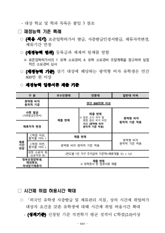 - 694 -%ub300%uc0c1 %ud559%uad50 %ubc0f %ud559%uacfc %ubaa9%ub85d%uc740 %ubd99%uc784 3%ucc38%uc870%u25a1 %uc7ac%uc815%ub2a5%ub825 %uae30%uc900 %ud2b9%ub840%u25cb(%uc801%uc6a9 %uc2dc%uae30)%ud45c%uc900%uc785%ud559%ud5c8%uac00%uc11c %ubc1c%uae09,%uc0ac%uc99d%ubc1c%uae09%uc778%uc815%uc11c%ubc1c%uae09,%uccb4%ub958%uc790%uaca9%ubcc0%uacbd,%uccb4%ub958%uae30%uac04 %uc5f0%uc7a5%u25cb(%uc7ac%uc815%ub2a5%ub825 %ubc94%uc704)%ub4f1%ub85d%uae08%uacfc %uccb4%uc7ac%ube44 %uc77c%uccb4%ub97c %ub9d0%ud568%u203b %ud45c%uc900%uc785%ud559%ud5c8%uac00%uc11c%uc758 7. %uc720%ud559 %uc18c%uc694%uacbd%ube44, 8. %uc720%ud559 %uc18c%uc694%uacbd%ube44 %uc870%ub2ec%uacc4%ud68d%uc744 %ucc38%uace0%ud558%uc5ec %uc2e4%uc9c8%uc801%uc778 %uc18c%uc694%uacbd%ube44 %uc2ec%uc0ac%u25cb(%uc7ac%uc815%ub2a5%ub825 %uae30%uc900)%uc0c1%uae30 %ub300%uc0c1%uc5d0 %ud574%ub2f9%ud558%ub294 %uad11%uc5ed%ud615 %ube44%uc790 %uc720%ud559%uc0dd%uc740 %uc5f0%uac04 800%ub9cc %uc6d0 %uc774%uc0c1%u25cb%uc7ac%uc815%ub2a5%ub825 %uc785%uc99d%uc11c%ub958 %uc81c%ucd9c %uae30%uc900%uad6c %ubd84%uc6b0%uc218%uc778%uc99d%ub300%uc778%uc99d%ub300%uc77c%ubc18%ub300 %uc774%ud558%uad11%uc5ed%ud615 %ube44%uc790%uc6d0%uce59%uc801 %uae30%uc900%uc5f0%uac04 800%ub9cc%uc6d0 %uc774%uc0c1%uc0ac%uc99d %ubc1c%uae09(%uc0ac%uc99d%ubc1c%uae09%uc778%uc815%uc11c)%uc81c%ucd9c %uba74%uc81c%uc81c%ucd9c %uba74%uc81c%u203b %uc7a5%uad00 %uace0%uc2dc %uad6d%uac00 %ubc0f %uc911%uc810 %uad00%ub9ac %uad6d%uac00 %uad6d%ubbfc %uc81c%uc678 (%uad11%uc5ed%ud615 %ube44%uc790 %uc6d0%uce59%uc801 %uae30%uc900 %uc801%uc6a9)%uad11%uc5ed%ud615 %ube44%uc790 %uc6d0%uce59%uc801 %uae30%uc900 %uc801%uc6a9%uccb4%ub958%uc790%uaca9 %ubcc0%uacbd%uccb4%ub958%uae30%uac04%uc5f0%uc7a5C%ud559%uc810 %uc774%uc0c1,%ucd9c%uc11d%uc728 70%%u2191 %uc81c%ucd9c %uba74%uc81c%uad11%uc5ed%ud615 %ube44%uc790C%ud559%uc810 %ubbf8%ub9cc,%uc6d0%uce59%uc801 %uae30%uc900 %uc801%uc6a9%ucd9c%uc11d%uc728 70%%u2193%uad11%uc5ed%ud615 %ube44%uc790 %uc6d0%uce59%uc801 %uae30%uc900 %uc801%uc6a9%uacfc%uc815 %uc218%ub8cc%uc790 %ub4f1(%ub17c%ubb38%uc791%uc131 %ub4f1)(%uc5f0%ub3c4%ubcc4 1%uc778 %uac00%uad6c %uc8fc%uac70%uae09%uc5ec %uae30%uc900%uc561%u00d7%uccb4%ub958%uac1c%uc6d4 %uc218)%u00d7 1/2%uc815%ubd80%ucd08%uccad%uc7a5%ud559%uc0dd, %uc7ac%uc678%ub3d9%ud3ec, %uad6d%ub0b4%uc7a5%uae30%uccb4%ub958%uc790%uc81c%ucd9c %uba74%uc81c%u203b %uc7a5%ud559%uc99d%uc11c %ub4f1 %uc785%uc99d%uc11c%ub958 %uc81c%ucd9c%u25a1 %uc2dc%uac04%uc81c %ucde8%uc5c5 %ud5c8%uc6a9%uc2dc%uac04 %ud655%ub300%u25cb%u300c%uc678%uad6d%uc778 %uc720%ud559%uc0dd %uc0ac%uc99d%ubc1c%uae09 %ubc0f %uccb4%ub958%uad00%ub9ac %uc9c0%uce68%u300d%uc0c1%uc758 %uc2dc%uac04%uc81c %ucde8%uc5c5%ud5c8%uac00%ub300%uc0c1%uc790 %uc694%uac74%uc744 %uac16%ucd98 %uc720%ud559%uc0dd%uc5d0 %ub300%ud574 %uc2dc%uac04%uc81c %ucde8%uc5c5 %ud5c8%uc6a9%uc2dc%uac04 %ud655%ub300-(%uc131%uc801%uae30%uc900)%uc2e0%uccad%uc77c %uae30%uc900 %uc9c1%uc804%ud559%uae30 %ud3c9%uade0 %uc131%uc801%uc774 C%ud559%uc810(2.0)%uc774%uc0c1