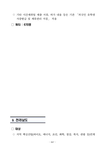 - 697 %u25cb%uae30%ud0c0 %uc2dc%uac04%uc81c%ucde8%uc5c5 %uc81c%ucd9c %uc11c%ub958,%ud5c8%uac00 %ub0b4%uc6a9 %ub4f1%uc740 %uae30%uc874%u300c%uc678%uad6d%uc778 %uc720%ud559%uc0dd %uc0ac%uc99d%ubc1c%uae09 %ubc0f %uccb4%ub958%uad00%ub9ac %uc9c0%uce68%u300d%uc801%uc6a9%u25a1 %ucffc%ud130 : 670%uba85%u25a1 %ub300%uc0c1%u25cb%uc9c0%uc5ed %ud575%uc2ec%uc0b0%uc5c5(%ubc14%uc774%uc624,%uc5d0%ub108%uc9c0,%uc870%uc120,%ud654%ud559,%ucca0%uac15,%ubcf5%uc9c0,%uad00%uad11 %ub4f1)%uc5f0%uacc4 9. %uc804%ub77c%ub0a8%ub3c4