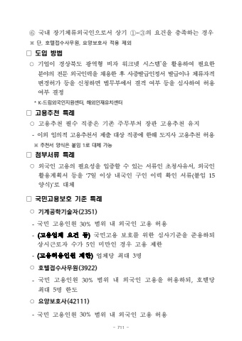 - 711 %u2465%uad6d%ub0b4 %uc7a5%uae30%uccb4%ub958%uc678%uad6d%uc778%uc73c%ub85c%uc11c %uc0c1%uae30 %u2460~%u2462%uc758 %uc694%uac74%uc744 %ucda9%uc871%ud558%ub294 %uacbd%uc6b0%u203b %ub2e8, %ud638%ud154%uc811%uc218%uc0ac%ubb34%uc6d0, %uc694%uc591%ubcf4%ud638%uc0ac %uc801%uc6a9 %uc81c%uc678%u25a1 %ub3c4%uc785 %ubc29%ubc95%u25cb%uae30%uc5c5%uc774 %uacbd%uc0c1%ubd81%ub3c4 %uad11%uc5ed%ud615 %ube44%uc790 %uc6cc%ud06c%ub137 %uc2dc%uc2a4%ud15c*%uc744 %ud65c%uc6a9%ud558%uc5ec %ud544%uc694%ud55c %ubd84%uc57c%uc758 %uc804%ubb38 %uc678%uad6d%uc778%ub825%uc744 %ucc44%uc6a9%ud55c %ud6c4 %uc0ac%uc99d%ubc1c%uae09%uc778%uc815%uc11c %ubc1c%uae09%uc774%ub098%uccb4%ub958%uc790%uaca9%ubcc0%uacbd%ud5c8%uac00 %ub4f1%uc744 %uc2e0%uccad%ud558%uba74 %ubc95%ubb34%ubd80%uc5d0%uc11c %uacb0%uaca9 %uc5ec%ubd80 %ub4f1%uc744 %uc2ec%uc0ac%ud558%uc5ec %ud5c8%uc6a9%uc5ec%ubd80 %uacb0%uc815* K-%ub4dc%ub9bc%uc678%uad6d%uc778%uc9c0%uc6d0%uc13c%ud130, %ud574%uc678%uc778%uc7ac%uc720%uce58%uc13c%ud130%u25a1 %uace0%uc6a9%ucd94%ucc9c %ud2b9%ub840%u25cb%uace0%uc6a9%ucd94%ucc9c %ud544%uc218 %uc9c1%uc885%uc740 %uae30%uc874 %uc8fc%ubb34%ubd80%ucc98 %uc7a5%uad00 %uace0%uc6a9%ucd94%ucc9c %uc720%uc9c0-%uc774%uc678 %uc784%uc758%uc801 %uace0%uc6a9%ucd94%ucc9c%uc11c %uc81c%ucd9c %ub300%uc0c1 %uc9c1%uc885%uc5d0 %ud55c%ud574 %ub3c4%uc9c0%uc0ac %uace0%uc6a9%ucd94%ucc9c%ud5c8%uc6a9%u203b %ucd94%ucc9c%uc11c %uc591%uc2dd%uc740 %ubd99%uc784 1%ub85c %ub300%uccb4 %uac00%ub2a5%u25a1 %ucca8%ubd80%uc11c%ub958 %ud2b9%ub840%u25cb%uc678%uad6d%uc778 %uace0%uc6a9%uc758 %ud544%uc694%uc131%uc744 %uc785%uc99d%ud560 %uc218 %uc788%ub294 %uc11c%ub958%uc778 %ucd08%uccad%uc0ac%uc720%uc11c,%uc678%uad6d%uc778%ud65c%uc6a9%uacc4%ud68d%uc11c %ub4f1%uc744 %uc77c %uc774%uc0c1 %ub0b4%uad6d%uc778 %uad6c%uc778 %uc774%ub825 %ud655%uc778 %uc11c%ub958%ubd99%uc784 %uc591%uc2dd)%u2019%ub85c %ub300%uccb4%u25a1 %uad6d%ubbfc%uace0%uc6a9%ubcf4%ud638 %uae30%uc900 %ud2b9%ub840%u25cb%uae30%uacc4%uacf5%ud559%uae30%uc220%uc790(2351)-%uad6d%ubbfc %uace0%uc6a9%uc778%uc6d0 30%%ubc94%uc704 %ub0b4 %uc678%uad6d%uc778 %uace0%uc6a9 %ud5c8%uc6a9-(%uace0%uc6a9%uc5c5%uccb4 %uc694%uac74 %ub4f1)%uad6d%ubbfc%uace0%uc6a9 %ubcf4%ud638%ub97c %uc704%ud55c %uc2ec%uc0ac%uae30%uc900%uc744 %uc900%uc6a9%ud558%ub418%uc0c1%uc2dc%uadfc%ub85c%uc790 %uc218%uac00 5%uc778 %ubbf8%ub9cc%uc778 %uacbd%uc6b0 %uace0%uc6a9 %uc81c%ud55c-(%uace0%uc6a9%ud5c8%uc6a9%uc778%uc6d0 %uc81c%ud55c)%uc5c5%uccb4%ub2f9 %ucd5c%ub300 3%uba85%u25cb%ud638%ud154%uc811%uc218%uc0ac%ubb34%uc6d0(3922)-%uad6d%ubbfc %uace0%uc6a9%uc778%uc6d0 30%%ubc94%uc704 %ub0b4 %uc678%uad6d%uc778 %uace0%uc6a9%uc744 %ud5c8%uc6a9%ud558%ub418,%ud638%ud154%ub2f9 %ucd5c%ub300 5%uba85 %ud55c%ub3c4%u25cb%uc694%uc591%ubcf4%ud638%uc0ac(42111)-%uad6d%ubbfc %uace0%uc6a9%uc778%uc6d0 30%%ubc94%uc704 %ub0b4 %uc678%uad6d%uc778 %uace0%uc6a9 %ud5c8%uc6a9
