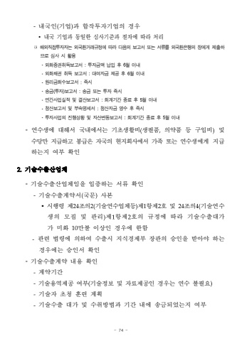 - 74 --%ub0b4%uad6d%uc778(%uae30%uc5c5)%uacfc %ud569%uc791%ud22c%uc790%uae30%uc5c5%uc758 %uacbd%uc6b0%u2022 %ub0b4%uad6d %uae30%uc5c5%uacfc %ub3d9%uc77c%ud55c %uc2ec%uc0ac%uae30%uc900%uacfc %uc808%ucc28%uc5d0 %ub530%ub77c %ucc98%ub9ac%u203b%ud574%uc678%uc9c1%uc811%ud22c%uc790%uc790%ub294 %uc678%uad6d%ud658%uac70%ub798%uaddc%uc815%uc5d0 %ub530%ub77c %ub2e4%uc74c%uc758 %ubcf4%uace0%uc11c %ub610%ub294 %uc11c%ub958%ub97c %uc678%uad6d%ud658%uc740%ud589%uc758 %uc7a5%uc5d0%uac8c %uc81c%ucd9c%ud558%ubbc0%ub85c %uc2ec%uc0ac %uc2dc %ud65c%uc6a9-%uc678%ud654%uc99d%uad8c%ucde8%ub4dd%ubcf4%uace0%uc11c :%ud22c%uc790%uae08%uc561 %ub0a9%uc785 %ud6c4 6%uc6d4 %uc774%ub0b4-%uc678%ud654%ucc44%uad8c %ucde8%ub4dd %ubcf4%uace0%uc11c :%ub300%uc5ec%uc790%uae08 %uc81c%uacf5 %ud6c4 6%uc6d4 %uc774%ub0b4-%uc6d0%ub9ac%uae08%ud68c%uc218%ubcf4%uace0%uc11c :%uc989%uc2dc-%uc1a1%uae08(%ud22c%uc790)%ubcf4%uace0%uc11c :%uc1a1%uae08 %ub610%ub294 %ud22c%uc790 %uc989%uc2dc-%uc5f0%uac04%uc0ac%uc5c5%uc2e4%uc801 %ubc0f %uacb0%uc0b0%ubcf4%uace0%uc11c :%ud68c%uacc4%uae30%uac04 %uc885%ub8cc %ud6c4 5%uc6d4 %uc774%ub0b4-%uccad%uc0b0%ubcf4%uace0%uc11c %ubc0f %ubd80%uc18d%uba85%uc138%uc11c :%uccad%uc0b0%uc790%uae08 %uc601%uc218 %ud6c4 %uc989%uc2dc-%ud22c%uc790%uc0ac%uc5c5%uc758 %uc9c4%ud589%uc0c1%ud669 %ubc0f %uc790%uc0b0%ubcc0%ub3d9%ubcf4%uace0%uc11c :%ud68c%uacc4%uae30%uac04 %uc885%ub8cc %ud6c4 5%uc6d4 %uc774%ub0b4%u25e6 %uc5f0%uc218%uc0dd%uc5d0 %ub300%ud574%uc11c %uad6d%ub0b4%uc5d0%uc11c%ub294 %uae30%ucd08%uc0dd%ud65c%ube44(%uc0dd%ud544%ud488,%uc758%uc57d%ud488 %ub4f1 %uad6c%uc785%ube44)%ubc0f %uc218%ub2f9%ub9cc %uc9c0%uae09%ud558%uace0 %ubd09%uae09%uc740 %uc790%uad6d%uc758 %ud604%uc9c0%ud68c%uc0ac%uc5d0%uc11c %uac00%uc871 %ub610%ub294 %uc5f0%uc218%uc0dd%uc5d0%uac8c%uc9c0%uae09%ud558%ub294%uc9c0 %uc5ec%ubd80 %ud655%uc7782.%uae30%uc220%uc218%ucd9c%uc0b0%uc5c5%uccb4%u25e6 %uae30%uc220%uc218%ucd9c%uc0b0%uc5c5%uccb4%uc784%uc744 %uc785%uc99d%ud558%ub294 %uc11c%ub958 %ud655%uc778-%uae30%uc220%uc218%ucd9c%uacc4%uc57d%uc11c(%uad6d%ubb38)%uc0ac%ubcf8%u25aa %uc2dc%ud589%ub839 %uc81c24%uc870%uc7582(%uae30%uc220%uc5f0%uc218%uc5c5%uccb4%ub4f1)%uc81c1%ud56d%uc81c2%ud638 %ubc0f 24%uc870%uc7584(%uae30%uc220%uc5f0%uc218%uc0dd%uc758 %ubaa8%uc9d1 %ubc0f %uad00%ub9ac)%uc81c1%ud56d%uc81c2%ud638%uc758 %uaddc%uc815%uc5d0 %ub530%ub77c %uae30%uc220%uc218%ucd9c%ub300%uac00%uac00 %ubbf8%ud654 10%ub9cc%ubd88 %uc774%uc0c1%uc778 %uacbd%uc6b0%uc5d0 %ud55c%ud568-%uad00%ub828 %ubc95%ub839%uc5d0 %uc758%ud558%uc5ec %uc218%ucd9c%uc2dc %uc9c0%uc2dd%uacbd%uc81c%ubd80 %uc7a5%uad00%uc758 %uc2b9%uc778%uc744 %ubc1b%uc544%uc57c%ud558%ub294 %uacbd%uc6b0%uc5d0%ub294 %uc2b9%uc778%uc11c %ud655%uc778%u25e6 %uae30%uc220%uc218%ucd9c%uacc4%uc57d %ub0b4%uc6a9 %ud655%uc778-%uacc4%uc57d%uae30%uac04 -%uae30%uc220%uc6a9%uc5ed%uc81c%uacf5 %uc5ec%ubd80(%uae30%uc220%uc815%ubcf4 %ubc0f %uc790%ub8cc%uc81c%uacf5%uc778 %uacbd%uc6b0%ub294 %uc5f0%uc218 %ubd88%ud544%uc694)-%uae30%uc220%uc790 %ucd08%uccad %ud6c8%ub828 %uacc4%ud68d -%uae30%uc220%uc218%ucd9c %ub300%uac00 %ubc0f %uc218%ucde8%ubc29%ubc95%uacfc %uae30%uac04 %ub0b4%uc5d0 %uc1a1%uae08%ub418%uc5c8%ub294%uc9c0 %uc5ec%ubd80