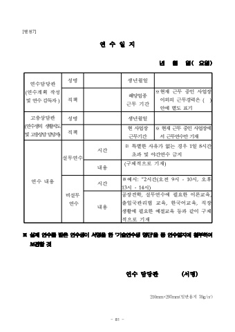- 81 [%ubcc4%ucca87]%uc5f0%uc218%uc77c%uc9c0%ub144%uc6d4%uc77c(%uc694%uc77c)%uc5f0%uc218%ub2f4%ub2f9%uad00(%uc5f0%uc218%uacc4%ud68d %uc791%uc131 %ubc0f %uc5f0%uc218 %uac10%ub3c5%uc790 )%uc131%uba85%uc0dd%ub144%uc6d4%uc77c%uc9c1%ucc45%ud574%ub2f9%uc5c5%uc885%uadfc%ubb34 %uae30%uac04%u203b%ud604%uc7ac %uadfc%ubb34 %uc911%uc778 %uc0ac%uc5c5%uc7a5 %uc774%uc678%uc758 %uadfc%ubb34%uacbd%ub825%uc740 ()%uc548%uc5d0 %ubcc4%ub3c4 %ud45c%uae30 %uace0%ucda9%uc0c1%ub2f4%uad00(%uc5f0%uc218%uc0dd%uc758 %uc0dd%ud65c%uc9c0%ub3c4 %ubc0f%uace0%ucda9%uc0c1%ub2f4 %ub2f4%ub2f9%uc790)%uc131%uba85%uc0dd%ub144%uc6d4%uc77c%uc9c1%ucc45%ud604 %uc0ac%uc5c5%uc7a5%uadfc%ubb34%uae30%uac04%u203b%ud604%uc7ac %uadfc%ubb34 %uc911%uc778 %uc0ac%uc5c5%uc7a5%uc5d0%uc11c %uadfc%ubb34%uc5f0%uc218%ub9cc %uae30%uc7ac%uc5f0%uc218 %ub0b4%uc6a9%uc2e4%ubb34%uc5f0%uc218%uc2dc%uac04%u203b%ud2b9%ubcc4%ud55c %uc0ac%uc720%uac00 %uc5c6%ub294 %uacbd%uc6b0 1%uc77c 8%uc2dc%uac04 %ucd08%uacfc %ubc0f %uc57c%uac04%uc5f0%uc218 %uae08%uc9c0%ub0b4%uc6a9(%uad6c%uccb4%uc801%uc73c%ub85c %uae30%uc7ac)%ube44%uc2e4%ubb34%uc5f0%uc218%uc2dc%uac04%u203b%uc608%uc2dc:%u201c2%uc2dc%uac04(%uc624%uc804 9%uc2dc %uc2dc%uc624%ud6c4 13%uc2dc -14%uc2dc)%ub0b4%uc6a9%uacf5%uc7a5%uacac%ud559,%uc2e4%ubb34%uc5f0%uc218%uc5d0 %ud544%uc694%ud55c %uc774%ub860%uad50%uc721,%ucd9c%uc785%uad6d%uad00%ub9ac%ubc95 %uad50%uc721,%ud55c%uad6d%uc5b4%uad50%uc721,%uc9c1%uc7a5%uc0dd%ud65c%uc5d0 %ud544%uc694%ud55c %uc608%uc808%uad50%uc721%ub4f1%uacfc %uac19%uc774 %uad6c%uccb4%uc801%uc73c%ub85c %uae30%uc7ac %u203b%uc2e4%uc81c %uc5f0%uc218%ub97c %ubc1b%uc740 %uc5f0%uc218%uc0dd%uc774 %uc11c%uba85%uc744 %ud55c %uae30%uc220%uc5f0%uc218%uc0dd %uba85%ub2e8%u2019%uc744 %ub3d9 %uc5f0%uc218%uc77c%uc9c0%uc5d0 %ucca8%ubd80%ud558%uc5ec %ubcf4%uad00%ud560 %uac83 %uc5f0%uc218 %ub2f4%ub2f9%uad00 (%uc11c%uba85) 210mm%u00d7297mm(%uc77c%ubc18%uc6a9%uc9c070g/%u33a1)