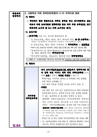 - 84 %uccb4%ub958%uc790%uaca9%ubcc0%uacbd%ud5c8%uac00%uf000%ubaa9%ucc283. %uace0%ub4f1%ud559%uad50 %uc774%ud558 %uc678%uad6d%uc778%uc720%ud559%uc0dd(D-4-3) %uc790%uaca9%uc73c%ub85c %ubcc0%uacbd%uac00.%ud574%ub2f9%uc790%u274d%uad6d%ub0b4%uc5d0%uc11c %ud604%uc7ac %ud569%ubc95%uc801%uc73c%ub85c %uc678%uad6d%uc778 %ub4f1%ub85d%uc744 %ud558%uace0 %uc7a5%uae30%uccb4%ub958%ud558%uace0 %uc788%ub294%uc790%ub85c%uc11c %uc544%ub798 %uad50%uc721%uae30%uad00%uc758 %uc785%ud559%ud5c8%uac00%ub97c%ubc1b%uc740 %uc790%ube44 %ubd80%ub2f4 %uc720%ud559%uc0dd(%ub2e8,%ub2e8%uae30%uccb4%ub958%uc790%uaca9 %uc18c%uc9c0%uc790 %ubc0f G-1%uc790%uaca9 %uc18c%uc9c0%uc790%ub294 %ubd88%uac00)%ub098.%uad50%uc721%uae30%uad00%u274d (%uad50%uc721%uae30%uad00)%ub2e4%uc74c %uc5b4%ub290 %ud558%ub098%uc5d0 %ud574%ub2f9%ud558%uc5ec%uc57c %ud568-%uff62%ucd08%u2027%uc911%ub4f1%uad50%uc721%ubc95%uff63%uc81c2%uc870%uc81c1%ud638 %ub0b4%uc9c0 %uc81c3%ud638%uc5d0 %ub530%ub978 %ucd08%u00b7%uc911%u00b7%uace0%ub4f1%ud559%uad50(%uacf5%ubbfc%ud559%uad50,%uace0%ub4f1%uacf5%ubbfc%ud559%uad50,%ubc29%uc1a1%ud1b5%uc2e0%uc911%u00b7%uace0%ub4f1%ud559%uad50,%uace0%ub4f1%uae30%uc220%ud559%uad50%ub294 %uc81c%uc678)-%uff62%ucd08%u2027%uc911%ub4f1%uad50%uc721%ubc95%uff63%uc81c2%uc870 %uc81c5%ud638 %uac01%uc885%ud559%uad50 %uc911 %uc678%uad6d%uc778%ud559%uad50%ubc0f %ub300%uc548%ud559%uad50**%ud559%ube44%uac00 %uc5f0%uac04 500%ub9cc%uc6d0 %uc774%uc0c1%uc774%uba70, %uad50%uc721%uac10 %uc124%ub9bd %uc778%uac00%ub97c %ubc1b%uc740 %ud559%ub825 %uc778%uc815 %uae30%uad00%uc73c%ub85c %uc81c%ud55c-%uff62%uacbd%uc81c%uc790%uc720%uad6c%uc5ed %ubc0f %uc81c%uc8fc%uad6d%uc81c%uc790%uc720%ub3c4%uc2dc %uc678%uad6d%uad50%uc721%uae30%uad00 %uc124%ub9bd%u2027%uc6b4%uc601%uc5d0 %uad00%ud55c %ud2b9%ubcc4%ubc95%uff63%uc81c2%uc870 %uc81c2%ud638%uc5d0%ub530%ub978 %uc678%uad6d%uad50%uc721%uae30%uad00-%uff62%ud55c%uad6d%uacfc%ud559%uae30%uc220%uc6d0%ubc95%uff63%uc81c14%uc870%uc7583%uc81c1%ud56d%uc5d0 %ub530%ub978 %uacfc%ud559%uc601%uc7ac%ud559%uad50%u203b (%uc8fc%uc758) %ub2e8, %uff62%ucd08%u2027%uc911%ub4f1%uad50%uc721%ubc95%uff63 %uc81c10%uc870%uc7582, %uc81c12%uc870%uc5d0 %ub530%ub978 %uc758%ubb34(%ubb34%uc0c1) %uad50%uc721%uae30%uad00%uc778 %uacbd%uc6b0%uc5d0%ub294 %uc81c%uc678%ub2e4.%ud574%ub2f9%uc790%uc790%ube44%ubd80%ub2f4 %uc678%uad6d%uc778%uc720%ud559%uc0dd%uc0c1%uae30 %uad50%uc721%uae30%uad00%ubb34%uc0c1%uad50%uc721%uae30%uad00 %uc81c%uc678%uc5d0%uc11c %uc785%ud559%ud5c8%uac00%ub97c %ubc1b%uc544 %uc785%ud559 %uc608%uc815 %uc774%uac70%ub098 %uc7ac%ud559 %uc911%uc778 %uc678%uad6d%uc778%uc720%ud559%uc0dd%uc73c%ub85c%uc11c,%uc544%ub798%uc694%uac74%uc744 %uac16%ucd94%uace0 %uc9c0%uc815%ub41c %ud6c4%uacac%uc778%uc774 %uc788%ub294 %uc790 %u00b7%ud559%ube44(%uc218%uc5c5%ub8cc,%uae30%uc219%uc0ac%ube44,%uc785%ud559%uae08 %ub4f1 %uc720%ud559%uad00%ub828 %ube44%uc6a9 %uc77c%uccb4)%ub97c %uc804%uc561 %uc790%ube44%ub85c %ub0a9%ubd80%ud588%uc744 %uac83%u00b7%uad6d%ub0b4 %uccb4%ub958 %ube44%uc6a9%uc744 %ubd80%ub2f4%ud560 %ub2a5%ub825%uc744 %uac16%ucd94%uace0 %uc788%uc744 %uac83%u25aa%ud6c4%uacac%uc778%u00b7%uad6d%ub0b4 %uccb4%ub958 %uc911%uc778 %uad6d%ubbfc %ub610%ub294 %ub4f1%ub85d%uc678%uad6d%uc778%uc73c%ub85c %ud574%ub2f9 %uc720%ud559%uc0dd%uacfc %uce5c%uc871%uad00%uacc4%uc5d0 %uc788%uac70%ub098,%uc720%ud559%uc0dd %ubd80%ubaa8%uc640 %uce5c%ubd84 %uad00%uacc4%ub97c %uc785%uc99d%ud560 %uc218 %uc788%ub294 %uc790(%uc720%ud559%uc6d0 %ubc0f %ud648%uc2a4%ud14c%uc774 %uad00%uacc4%uc790 %ub4f1 %ubd88%uac00)%u00b7%ubd88%ubc95%uccb4%ub958 %ub2e4%ubc1c%uad6d%uac00(21%uac1c%uad6d)*%uc678%uad6d%uc778%uc720%ud559%uc0dd%uc758 %ud6c4%uacac%uc778%uc740 %uc5f0%uac04 %uc18c%ub4dd%uc774 %uc804%ub144%ub3c4 %ud55c%uad6d%uc740%ud589 %uace0%uc2dc GNI%uc774%uc0c1%uc774%uac70%ub098,%uc790%uc0b0%uc774 %u300c%uad6d%ubbfc%uae30%ucd08%uc0dd%ud65c%ubcf4%uc7a5%ubc95%u300d%uc5d0 %ub530%ub978 %uc911%uc704 %uc218%uc900 %uc774%uc0c1%uc77c %uac83*%ubd88%ubc95%uccb4%ub958%ub2e4%ubc1c%uad6d%uac00(21%uac1c%uad6d):%uc911%uad6d,%ud544%ub9ac%ud540,%uc778%ub3c4%ub124%uc2dc%uc544,%ubc29%uae00%ub77c%ub370%uc2dc,%ubca0%ud2b8%ub0a8,%ubabd%uace8,%ud0dc%uad6d,%ud30c%ud0a4%uc2a4%ud0c4,%uc2a4%ub9ac%ub791%uce74,%uc778%ub3c4,%ubbf8%uc580%ub9c8,%ub124%ud314,%uc774%ub780,%uc6b0%uc988%ubca0%ud0a4%uc2a4%ud0c4,%uce74%uc790%ud750%uc2a4%ud0c4,%ud0a4%ub974%uae30%uc988%uc2a4%ud0c4,%uc6b0%ud06c%ub77c%uc774%ub098,%ub098%uc774%uc9c0%ub9ac%uc544,%uac00%ub098,%uc774%uc9d1%ud2b8,%ud398%ub8e8%u00b7%ud6c4%uacac%uc778 1%uc778 %ub2f9 %ud6c4%uacac %uac00%ub2a5%ud55c %uc678%uad6d%uc778%uc720%ud559%uc0dd%uc740 2%uba85 %uc774%ub0b4%ub85c %uc81c%ud55c%u261e%ub2e8,%uace0%ub4f1%ud559%uad50(%uc911%ud559%uad50 %uc774%ud558 %uc81c%uc678)%uc804%u2024%uc785%ud559%uc790%ub85c %ud574%ub2f9%ud559%uad50 %uae30%uc219%uc0ac%uc785%uc18c%uc790%ub294 %ud6c4%uacac%uc778 %uba74%uc81c(%ud559%uad50%uc7a5 %uba85%uc758 %uc785%uc18c%ud655%uc778%uc11c %ud544%uc694)