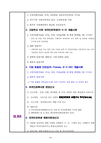 - 93 %uf000%u2460%uc2e0%uccad%uc11c(%ubcc4%uc9c034%ud638 %uc11c%uc2dd),%uc5ec%uad8c%uc6d0%ubcf8,%ud45c%uc900%uaddc%uaca9%uc0ac%uc9c41%uc7a5,%uc218%uc218%ub8cc %u2461%uc5f0%uc218%uae30%uad00 %uc0ac%uc5c5%uc790%ub4f1%ub85d%uc99d (%ub610%ub294 %uace0%uc720%ubc88%ud638%uc99d)%uc0ac%ubcf8%u2462%ubc95%ubb34%ubd80 %uc9c0%uc815%ubcd1%uc6d0%uc5d0%uc11c %ubc1c%uae09%ud55c %uac74%uac15%uc9c4%ub2e8%uc11c3. %uace0%ub4f1%ud559%uad50 %uc774%ud558 %uc678%uad6d%uc778%uc720%ud559%uc0dd(D-4-3) %uc81c%ucd9c%uc11c%ub958%u2460%uc2e0%uccad%uc11c(%ubcc4%uc9c034%ud638 %uc11c%uc2dd),%uc5ec%uad8c,%uc0ac%uc9c4(6%uac1c%uc6d4 %ub0b4 %ucd2c%uc601 %ubc18%uba85%ud568)1%uc7a5,%uc218%uc218%ub8cc**%uc815%ubd80%ub4f1%ucd08%uccad%uad6d%ube44%uc7a5%ud559%uc0dd%ub3c4%uc2dc%ud589%uaddc%uce59%uc81c74%uc870%uc5d0%uc758%uac70%ub4f1%ub85d%ubc0f%ub4f1%ub85d%uc99d(%uc7ac)%ubc1c%uae09%uc218%uc218%ub8cc%ub0a9%ubd80%ub300%uc0c1%uc790%uc784%u2461%uc7ac%ud559 %uc99d%uba85%uc11c***%uc740%ud589%uacc4%uc88c%uac1c%uc124,%uc219%uc18c%uc784%ucc28%ub4f1%uc758%uc0ac%uc720%ub85c%uc785%ud559%uc804%uc678%uad6d%uc778%ub4f1%ub85d%uc744%uc2e0%uccad%ud558%uace0%uc790%ud558%ub294%uacbd%uc6b0%ud559%uad50%uc7a5%uc758%uc9c1%uc778%uc774%ub0a0%uc778%ub41c%ud559%ube44%ub0a9%ubd80%ub0b4%uc5ed%uc11c%ub85c%ub300%uccb4%uac00%ub2a5%u2462%uc7a5%ud559%uc0dd %uc785%uc99d%uc11c%ub958 (%ud574%ub2f9%uc790,%uae30%uad00%u00b7%ub2e8%uccb4%uc758 %uacf5%ubb38)%u2463%uccb4%ub958%uc9c0 %uc785%uc99d%uc11c%ub9584. %uae30%uc5c5 %ub9de%ucda4%ud615 %uc778%ud134%uc2ed(K-Trainee, D-4-2K) %uc81c%ucd9c%uc11c%ub958%u2460%uc2e0%uccad%uc11c(%ubcc4%uc9c034%ud638 %uc11c%uc2dd),%uc5ec%uad8c,%uc0ac%uc9c4(6%uac1c%uc6d4 %ub0b4 %ucd2c%uc601 %ubc18%uba85%ud568)1%uc7a5,%uc218%uc218%ub8cc%u2461%uccb4%ub958%uc9c0 %uc785%uc99d%uc11c%ub958%u203b%uae30%uc5c5%ub9de%ucda4%ud615%uc778%ud134%uc2ed(D-4-2K)%uc790%uaca9%uc18c%uc9c0%uc790%ub294%uc544%ub798%ubd99%uc7841,2%uc548%ub0b4%ubb38%ucc38%uace05. %uc678%uad6d%uc778%ub4f1%ub85d%uc0ac%ud56d %ubcc0%uacbd%uc2e0%uace0%uac00.%uc2e0%uace0%uc0ac%ud56d :%uc131%uba85,%uc131%ubcc4,%uc0dd%ub144%uc6d4%uc77c %ubc0f %uad6d%uc801,%uc5ec%uad8c%uc758 %ubc88%ud638%u2027%ubc1c%uae09%uc77c%uc790%u2027%uc720%ud6a8%uae30%uac04%ub098.%uc2e0%uace0%ub300%uc0c1 :%uc18c%uc18d%uae30%uad00 %ub610%ub294 %ub2e8%uccb4%uc758 %ubcc0%uacbd(%uba85%uce6d%ubcc0%uacbd %ud3ec%ud568)%uc774%ub098 %ucd94%uac00(%u201810.11.16.)%ub2e4.%uc2e0%uace0%uae30%ud55c :%ubcc0%uacbd%uc77c%ub85c%ubd80%ud130 15%uc77c%uc774%ub0b4 %uc2e0%uace0%ub77c.%uc81c%ucd9c%uc11c%ub958%u2460%uc678%uad6d%uc778%ub4f1%ub85d%uc0ac%ud56d%ubcc0%uacbd%uc2e0%uace0%uc11c,%uc5ec%uad8c %ubc0f %uc678%uad6d%uc778%ub4f1%ub85d%uc99d,%uc218%uc218%ub8cc %uc5c6%uc74c %u2461%uc7ac%ud559%uc99d%uba85%uc11c %ubc0f%u524d%ud559%uad50 %uc81c%uc801%uc99d%uba85%uc11c(%ud559%uad50%ubcc0%uacbd%uc758 %uacbd%uc6b0)6. %uc678%uad6d%uc778%uc720%ud559%uc0dd %uccb4%ub958%uc9c0%ubcc0%uacbd%uc2e0%uace0%uac00.%uc804%uc785%ud55c %ub0a0%ub85c%ubd80%ud130 15%uc77c%uc774%ub0b4%uc5d0 %uc2e0%uccb4%ub958%uc9c0 %uc2dc%u2024%uad70%u2024%uad6c%uccad%uc7a5 %ub610%ub294 %uc2e0%uccb4%ub958%uc9c0 %uad00%ud560 %ucd9c%uc785%uad6d%u00b7%uc678%uad6d%uc778%uccad(%uc0ac%ubb34%uc18c%u00b7%ucd9c%uc7a5%uc18c)%uc7a5%uc5d0%uac8c %uc2e0%uace0%ub098.%ucca8%ubd80%uc11c%ub958:%uccb4%ub958%uc9c0%ubcc0%uacbd%uc2e0%uace0%uc11c,%uc5ec%uad8c %ubc0f %uc678%uad6d%uc778%ub4f1%ub85d%uc99d