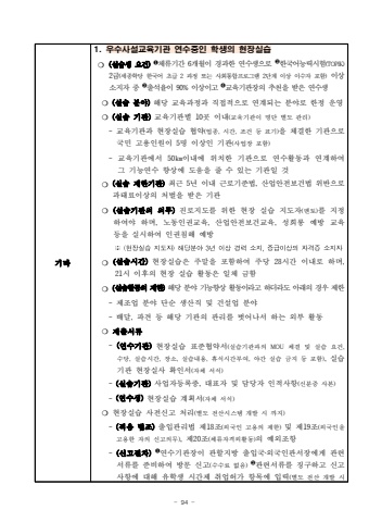 - 94 %uae30%ud0c01. %uc6b0%uc218%uc0ac%uc124%uad50%uc721%uae30%uad00 %uc5f0%uc218%uc911%uc778 %ud559%uc0dd%uc758 %ud604%uc7a5%uc2e4%uc2b5%u274d (%uc2e4%uc2b5%uc0dd %uc694%uac74)%u2776%uccb4%ub958%uae30%uac04 6%uac1c%uc6d4%uc774 %uacbd%uacfc%ud55c %uc5f0%uc218%uc0dd%uc73c%ub85c %u2777%ud55c%uad6d%uc5b4%ub2a5%ub825%uc2dc%ud5d8(TOPIK)2%uae09(%uc138%uc885%ud559%ub2f9 %ud55c%uad6d%uc5b4 %ucd08%uae09 2 %uacfc%uc815 %ub610%ub294 %uc0ac%ud68c%ud1b5%ud569%ud504%ub85c%uadf8%ub7a8 2%ub2e8%uacc4 %uc774%uc0c1 %uc774%uc218%uc790 %ud3ec%ud568)%uc774%uc0c1 %uc18c%uc9c0%uc790 %uc911 %u2778%ucd9c%uc11d%uc728%uc774 90% %uc774%uc0c1%uc774%uace0 %u2779%uad50%uc721%uae30%uad00%uc7a5%uc758 %ucd94%ucc9c%uc744 %ubc1b%uc740 %uc5f0%uc218%uc0dd%u274d(%uc2e4%uc2b5 %ubd84%uc57c)%ud574%ub2f9 %uad50%uc721%uacfc%uc815%uacfc %uc9c1%uc811%uc801%uc73c%ub85c %uc5f0%uacc4%ub418%ub294 %ubd84%uc57c%ub85c %ud55c%uc815 %uc6b4%uc601%u274d (%uc2e4%uc2b5 %uae30%uad00)%uad50%uc721%uae30%uad00%ubcc4 10%uacf3 %uc774%ub0b4(%uad50%uc721%uae30%uad00%uc774 %uba85%ub2e8 %ubcc4%ub3c4 %uad00%ub9ac)- %uad50%uc721%uae30%uad00%uacfc %ud604%uc7a5%uc2e4%uc2b5 %ud611%uc57d(%uc5c5%uc885, %uc2dc%uac04, %uc870%uac74 %ub4f1 %ud45c%uae30)%uc744 %uccb4%uacb0%ud55c %uae30%uad00%uc73c%ub85c%uad6d%ubbfc %uace0%uc6a9%uc778%uc6d0%uc774 5%uba85 %uc774%uc0c1%uc778 %uae30%uad00(%uc0ac%uc5c5%uc7a5 %ud3ec%ud568)- %uad50%uc721%uae30%uad00%uc5d0%uc11c 50%u339e%uc774%ub0b4%uc5d0 %uc704%uce58%ud55c %uae30%uad00%uc73c%ub85c %uc5f0%uc218%ud65c%ub3d9%uacfc %uc5f0%uacc4%ud558%uc5ec %uadf8 %uae30%ub2a5%uc5f0%uc218 %ud5a5%uc0c1%uc5d0 %ub3c4%uc6c0%uc744 %uc904 %uc218 %uc788%ub294 %uae30%uad00%uc77c %uac83%u274d(%uc2e4%uc2b5 %uc81c%ud55c%uae30%uad00)%ucd5c%uadfc 5%ub144 %uc774%ub0b4 %uadfc%ub85c%uae30%uc900%ubc95, %uc0b0%uc5c5%uc548%uc804%ubcf4%uac74%ubc95 %uc704%ubc18%uc73c%ub85c%uacfc%ud0dc%ub8cc%uc774%uc0c1%uc758 %ucc98%ubc8c%uc744 %ubc1b%uc740 %uae30%uad00%u274d (%uc2e4%uc2b5%uae30%uad00%uc758 %uc758%ubb34)%uc9c4%ub85c%uc9c0%ub3c4%ub97c %uc704%ud55c %ud604%uc7a5 %uc2e4%uc2b5 %uc9c0%ub3c4%uc790(%uba58%ud1a0)%ub97c %uc9c0%uc815%ud558%uc5ec%uc57c %ud558%uba70, %ub178%ub3d9%uc778%uad8c%uad50%uc721, %uc0b0%uc5c5%uc548%uc804%ubcf4%uac74%uad50%uc721, %uc131%ud76c%ub871 %uc608%ubc29 %uad50%uc721 %ub4f1%uc744 %uc2e4%uc2dc%ud558%uc5ec %uc778%uad8c%uce68%ud574 %uc608%ubc29%u203b(%ud604%uc7a5%uc2e4%uc2b5%uc9c0%ub3c4%uc790)%ud574%ub2f9%ubd84%uc57c3%ub144%uc774%uc0c1%uacbd%ub825%uc18c%uc9c0,%uc911%uae09%uc774%uc0c1%uc758%uc790%uaca9%uc99d%uc18c%uc9c0%uc790%u274d (%uc2e4%uc2b5%uc2dc%uac04)%ud604%uc7a5%uc2e4%uc2b5%uc740 %uc8fc%ub9d0%uc744 %ud3ec%ud568%ud558%uc5ec %uc8fc%ub2f9 28%uc2dc%uac04 %uc774%ub0b4%ub85c %ud558%uba70, 21%uc2dc %uc774%ud6c4%uc758 %ud604%uc7a5 %uc2e4%uc2b5 %ud65c%ub3d9%uc740 %uc77c%uccb4 %uae08%ud568%u274d (%uc2e4%uc2b5%ud65c%ub3d9%uc758 %uc81c%ud55c)%ud574%ub2f9 %ubd84%uc57c %uae30%ub2a5%ud5a5%uc0c1 %ud65c%ub3d9%uc774%ub77c%uace0 %ud558%ub354%ub77c%ub3c4 %uc544%ub798%uc758 %uacbd%uc6b0 %uc81c%ud55c- %uc81c%uc870%uc5c5 %ubd84%uc57c %ub2e8%uc21c %uc0dd%uc0b0%uc9c1 %ubc0f %uac74%uc124%uc5c5 %ubd84%uc57c- %ubc30%ub2ec, %ud30c%uacac %ub4f1 %ud574%ub2f9 %uae30%uad00%uc758 %uad00%ub9ac%ub97c %ubc97%uc5b4%ub098%uc11c %ud558%ub294 %uc678%ubd80 %ud65c%ub3d9%u274d %uc81c%ucd9c%uc11c%ub958 - (%uc5f0%uc218%uae30%uad00)%ud604%uc7a5%uc2e4%uc2b5 %ud45c%uc900%ud611%uc57d%uc11c(%uc2e4%uc2b5%uae30%uad00%uacfc%uc758 MOU %uccb4%uacb0 %ubc0f %uc2e4%uc2b5 %uc694%uac74, %uc218%ub2f9, %uc2e4%uc2b5%uc2dc%uac04, %uc7a5%uc18c, %uc2e4%uc2b5%ub0b4%uc6a9, %ud734%uc2dd%uc2dc%uac04%ubd80%uc5ec, %uc57c%uac04 %uc2e4%uc2b5 %uae08%uc9c0 %ub4f1 %ud3ec%ud568),%uc2e4%uc2b5%uae30%uad00 %ud604%uc7a5%uc2e4%uc0ac %ud655%uc778%uc11c(%uc790%uccb4 %uc11c%uc2dd)- (%uc2e4%uc2b5%uae30%uad00)%uc0ac%uc5c5%uc790%ub4f1%ub85d%uc99d, %ub300%ud45c%uc790 %ubc0f %ub2f4%ub2f9%uc790 %uc778%uc801%uc0ac%ud56d(%uc2e0%ubd84%uc99d %uc0ac%ubcf8)- (%uc5f0%uc218%uc0dd)%ud604%uc7a5%uc2e4%uc2b5 %uacc4%ud68d%uc11c(%uc790%uccb4 %uc11c%uc2dd)%u274d %ud604%uc7a5%uc2e4%uc2b5 %uc0ac%uc804%uc2e0%uace0 %ucc98%ub9ac(%ubcc4%ub3c4 %uc804%uc0b0%uc2dc%uc2a4%ud15c %uac1c%ubc1c %uc2dc %uae4c%uc9c0)- (%uc801%uc6a9 %ubc95%uc870)%ucd9c%uc785%uad00%ub9ac%ubc95 %uc81c18%uc870(%uc678%uad6d%uc778 %uace0%uc6a9%uc758 %uc81c%ud55c) %ubc0f %uc81c19%uc870(%uc678%uad6d%uc778%uc744 %uace0%uc6a9%ud55c %uc790%uc758 %uc2e0%uace0%uc758%ubb34), %uc81c20%uc870(%uccb4%ub958%uc790%uaca9%uc678%ud65c%ub3d9)%uc758 %uc608%uc678%uc870%ud56d- (%uc2e0%uace0%uc808%ucc28)%u2776%uc5f0%uc218%uae30%uad00%uc7a5%uc774 %uad00%ud560%uc9c0%ubc29 %ucd9c%uc785%uad6d%u2027%uc678%uad6d%uc778%uad00%uc11c%uc7a5%uc5d0%uac8c %uad00%ub828 %uc11c%ub958%ub97c %uc900%ube44%ud558%uc5ec %ubc29%ubb38 %uc2e0%uace0(%uc218%uc218%ub8cc %uc5c6%uc74c) %u2777%uad00%ub828%uc11c%ub958%ub97c %uc9d5%uad6c%ud558%uace0 %uc2e0%uace0%uc0ac%ud56d%uc5d0 %ub300%ud574 %uc720%ud559%uc0dd %uc2dc%uac04%uc81c %ucde8%uc5c5%ud5c8%uac00 %ud56d%ubaa9%uc5d0 %uc785%ub825(%ubcc4%ub3c4 %uc804%uc0b0 %uac1c%ubc1c %uc2dc
